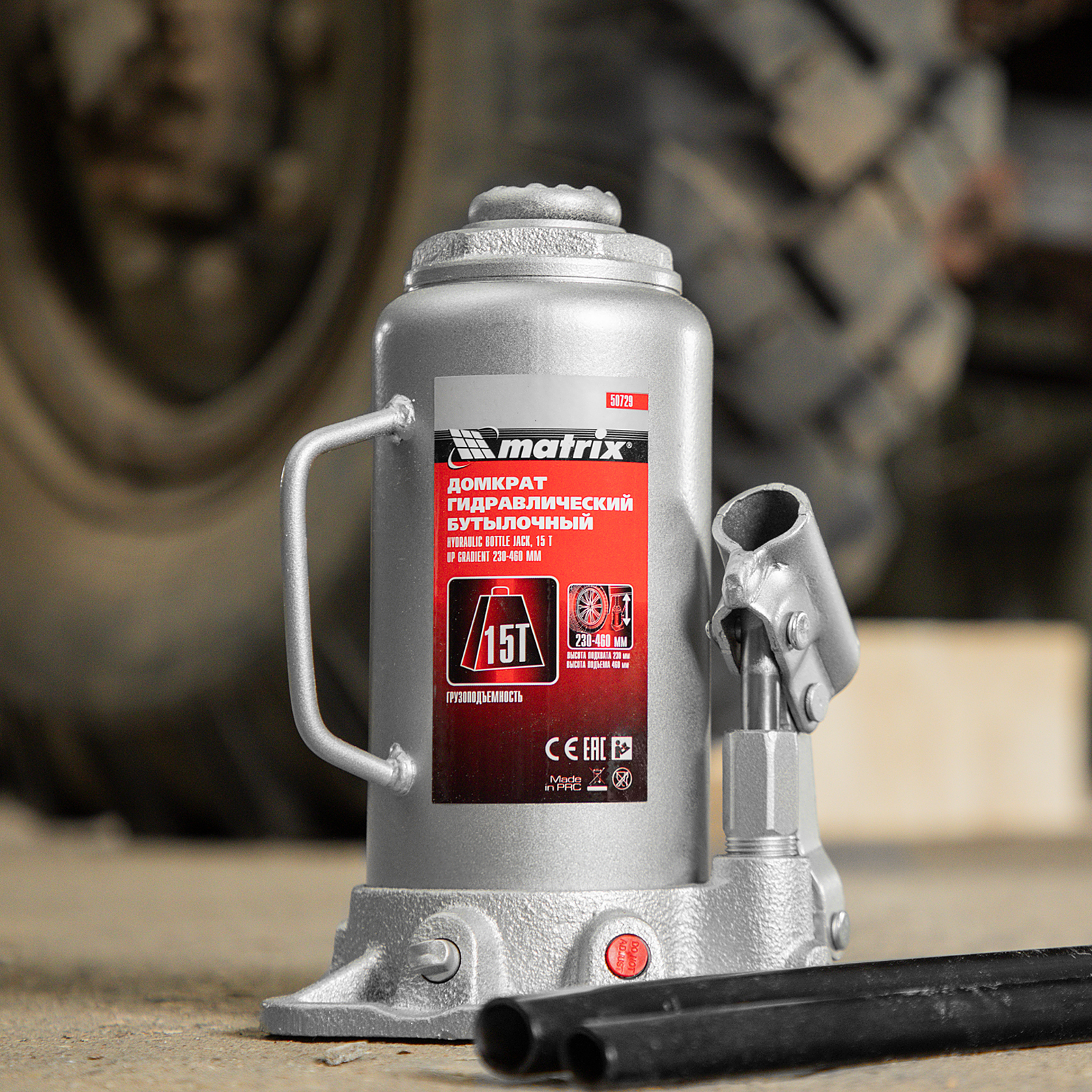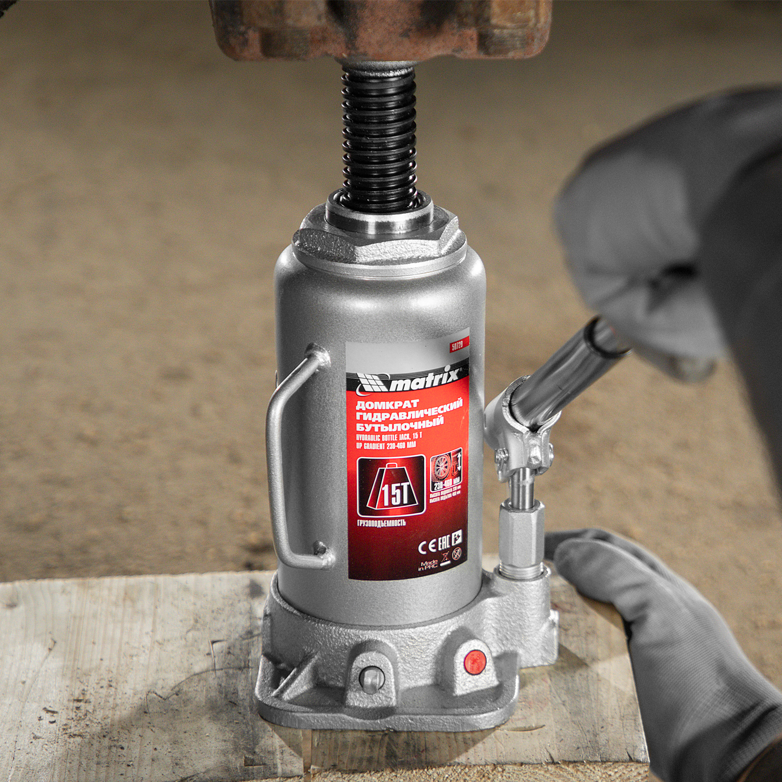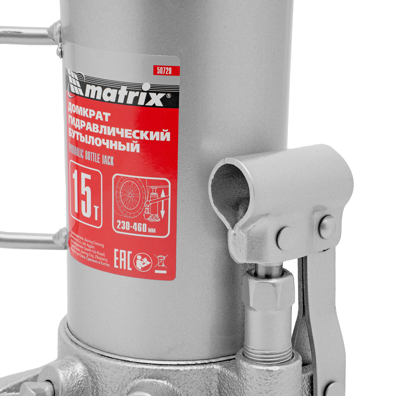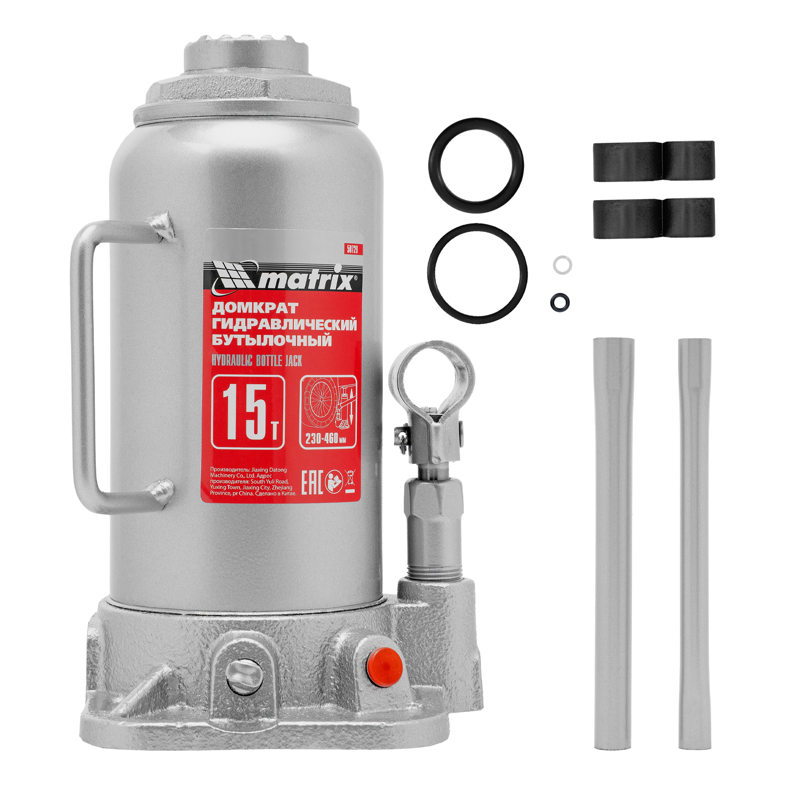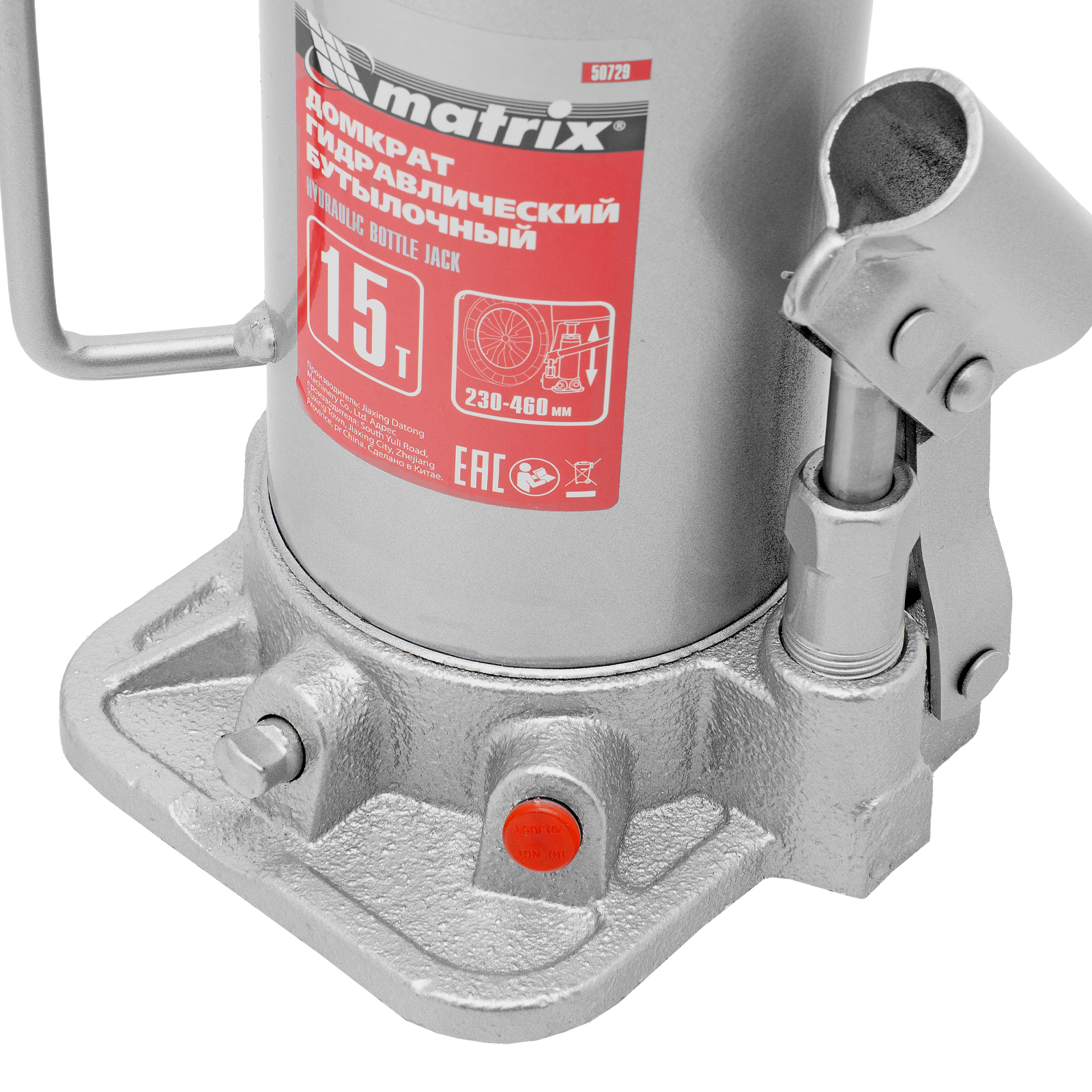 Домкрат гидравлический бутылочный, 15 т, высота подъема 230-460 мм Matrix в Краснодаре