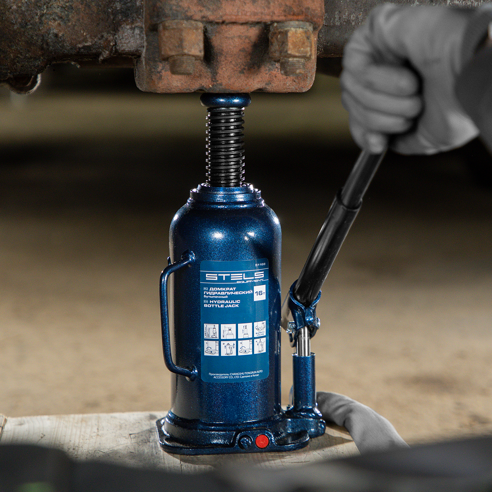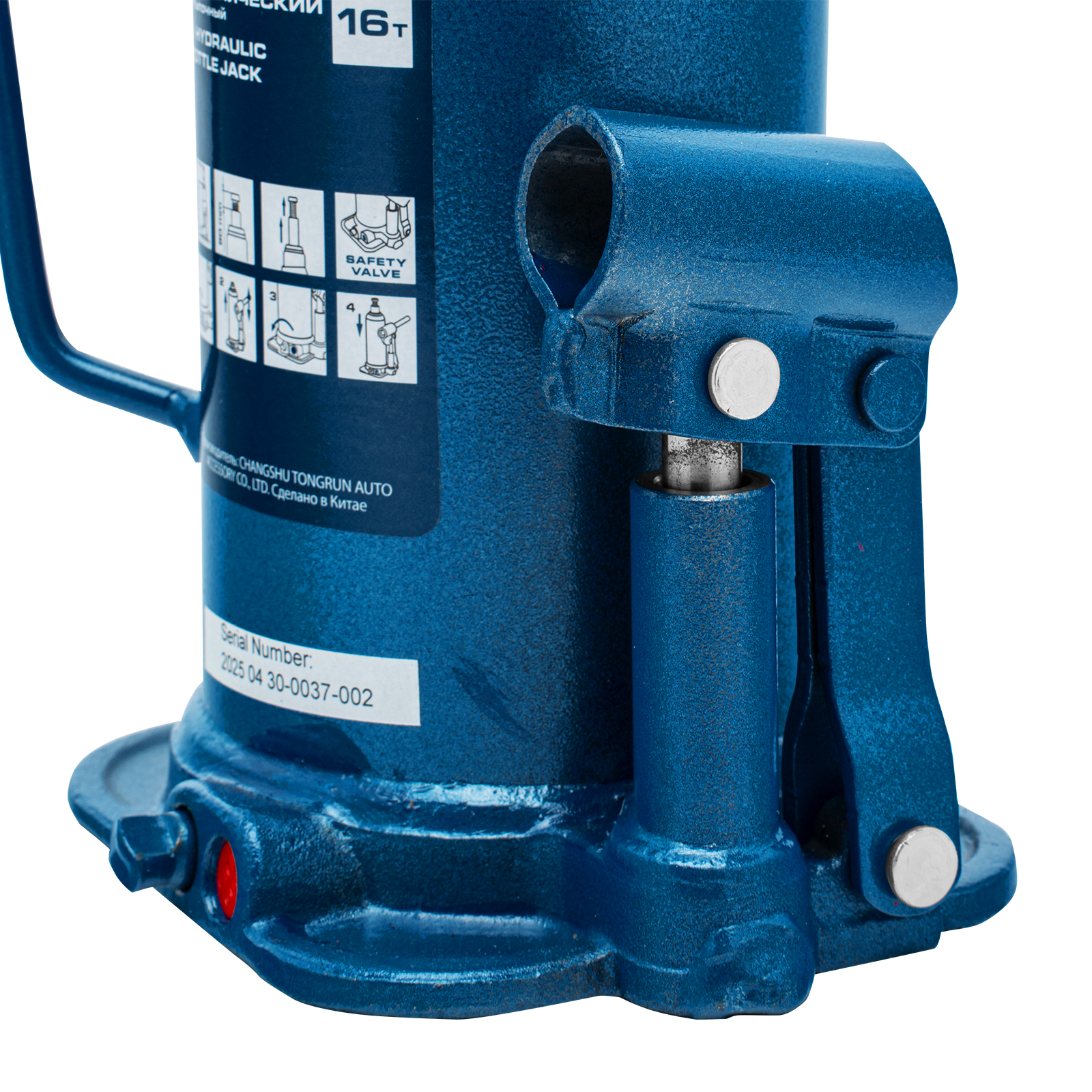 - Безопасная эксплуатация — благодаря предохранительному клапану домкрат не поднимает грузы тяжелее 16 т.