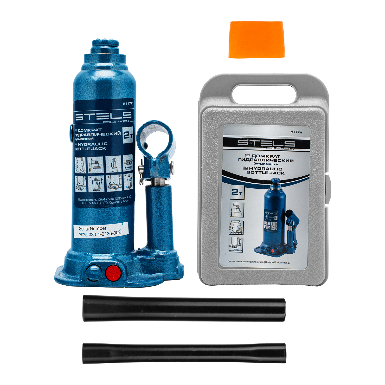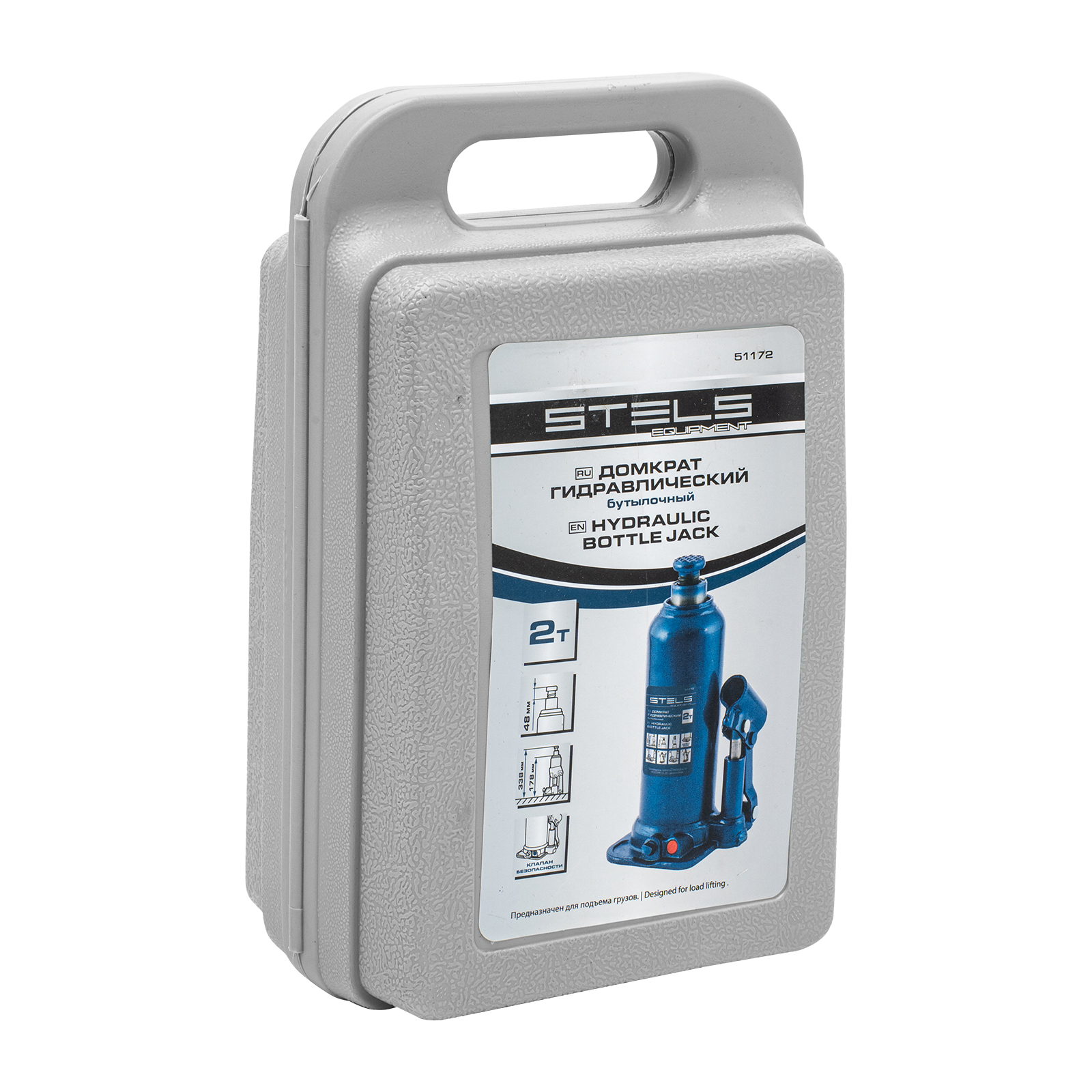 Гидравлический бутылочный домкрат Stels 51172 в пластиковом кейсе предназначен для поднятия грузов весом до 2 т на высоту 178-338 мм. Он не занимает много места и легко помещается в багажник, поэтому его можно брать с собой в дорогу или хранить в гараже. Используется для самостоятельного ремонта авто, также подходит для профессионального применения на станциях технического обслуживания.