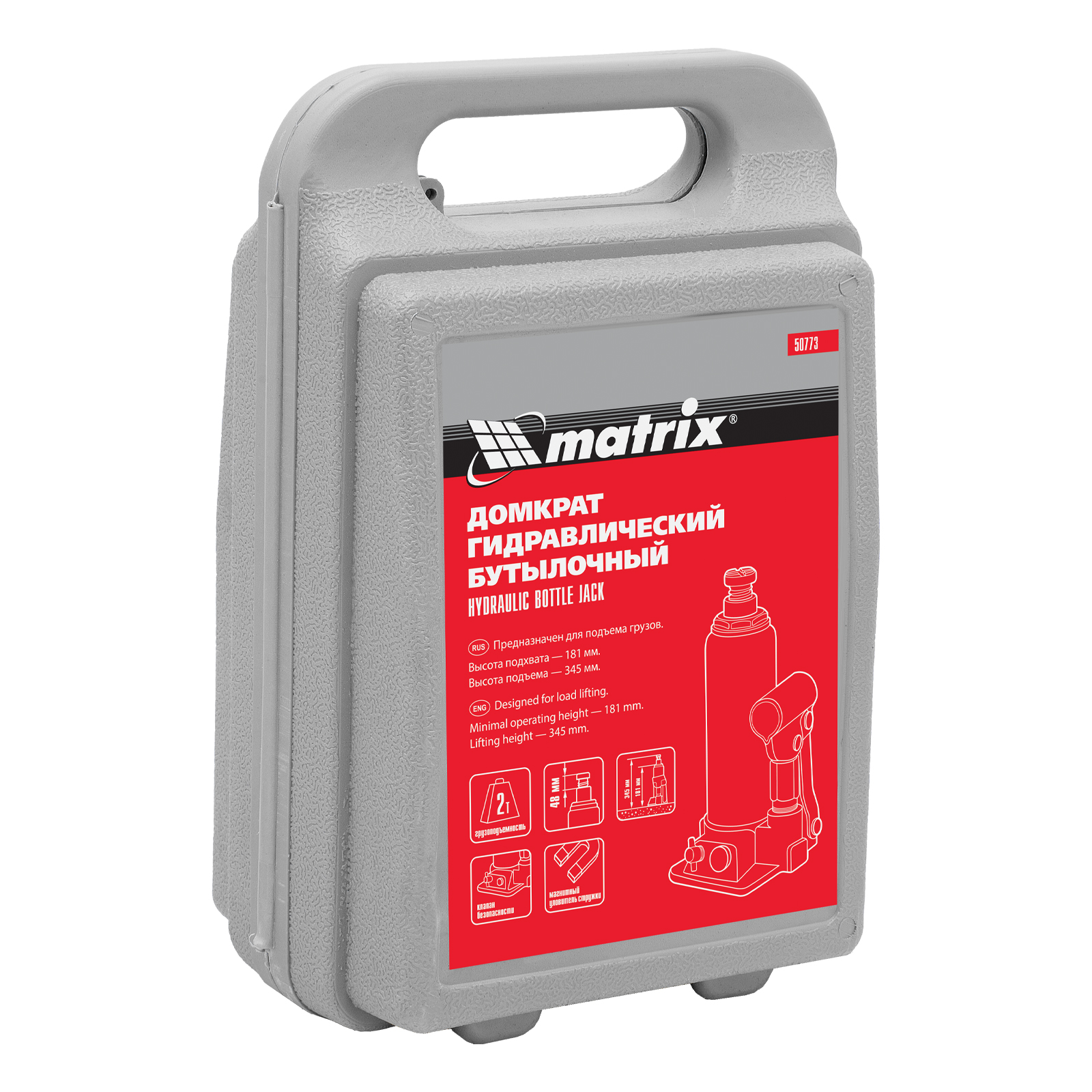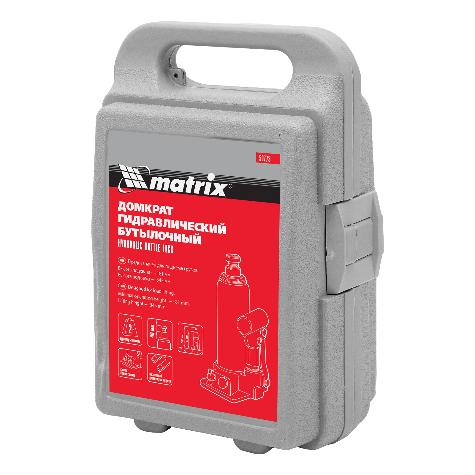 Домкрат гидравлический бутылочный, 2 т, h подъема 181-345 мм, в пластиковом кейсе Matrix в Краснодаре