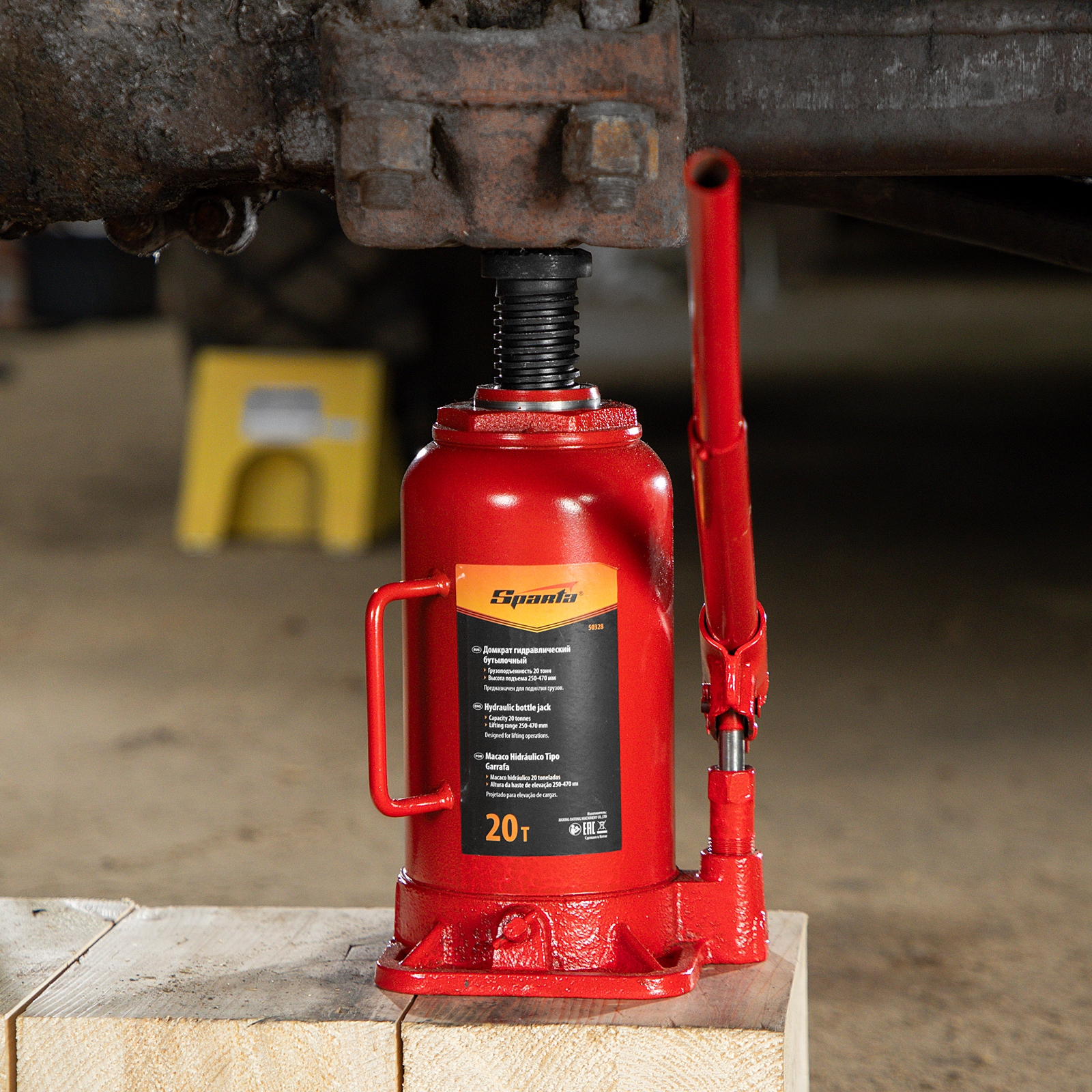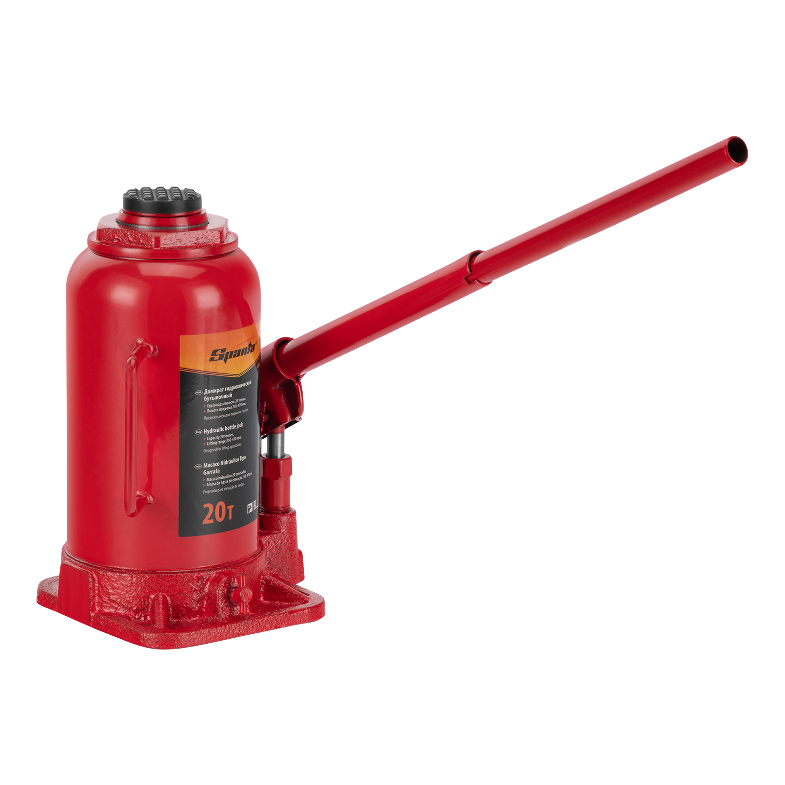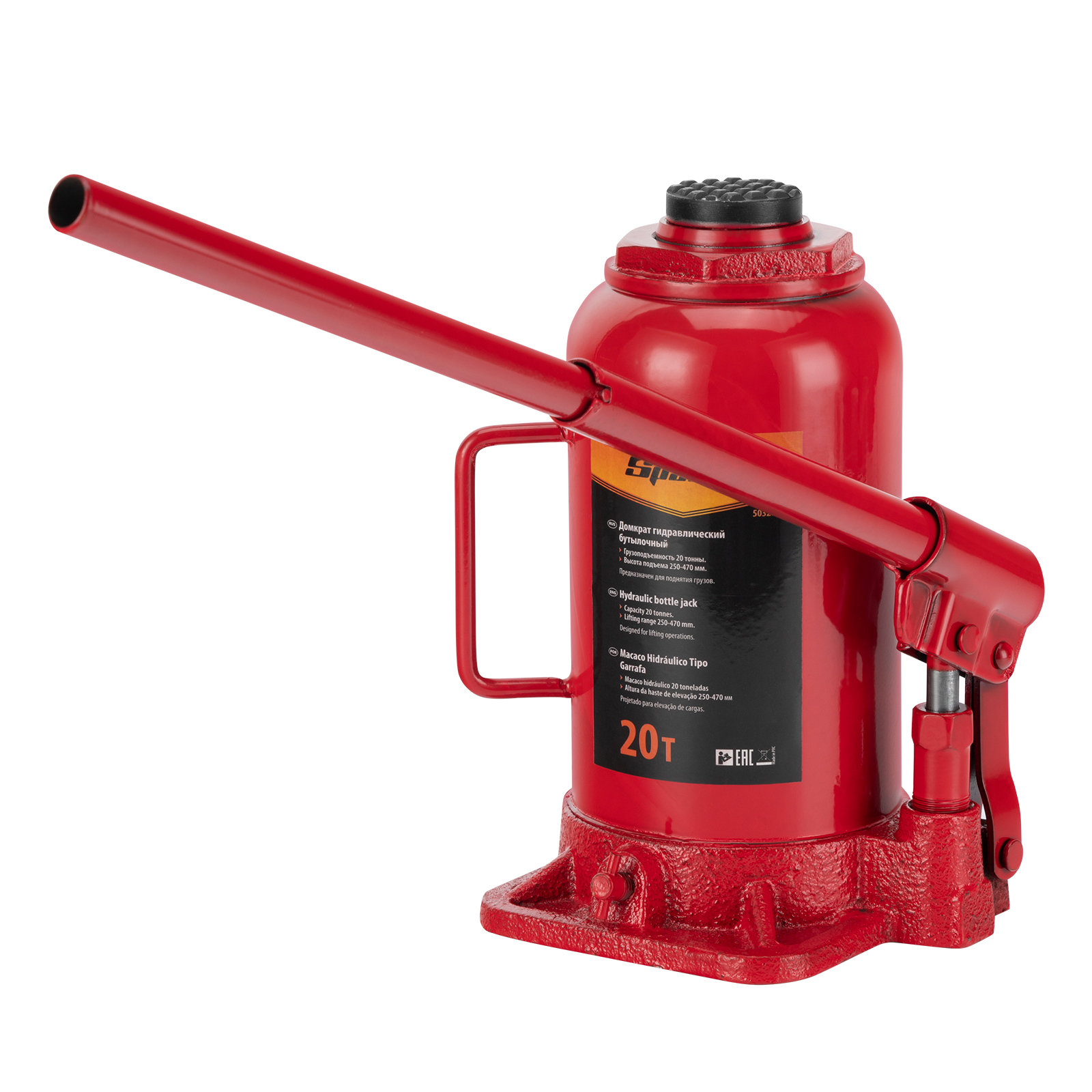 Гидравлический бутылочный домкрат Sparta 50328 рассчитан на подъем грузов весом до 20 т на высоту от 250 до 470 мм. Он пригодится как автолюбителям в гараже, так и профессиональным мастерам в автосервисах. Домкрат обеспечивает плавный подъем груза без особых усилий со стороны пользователя.