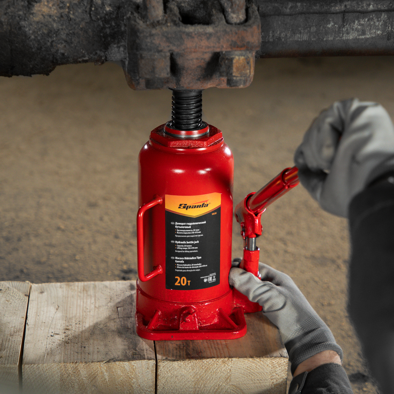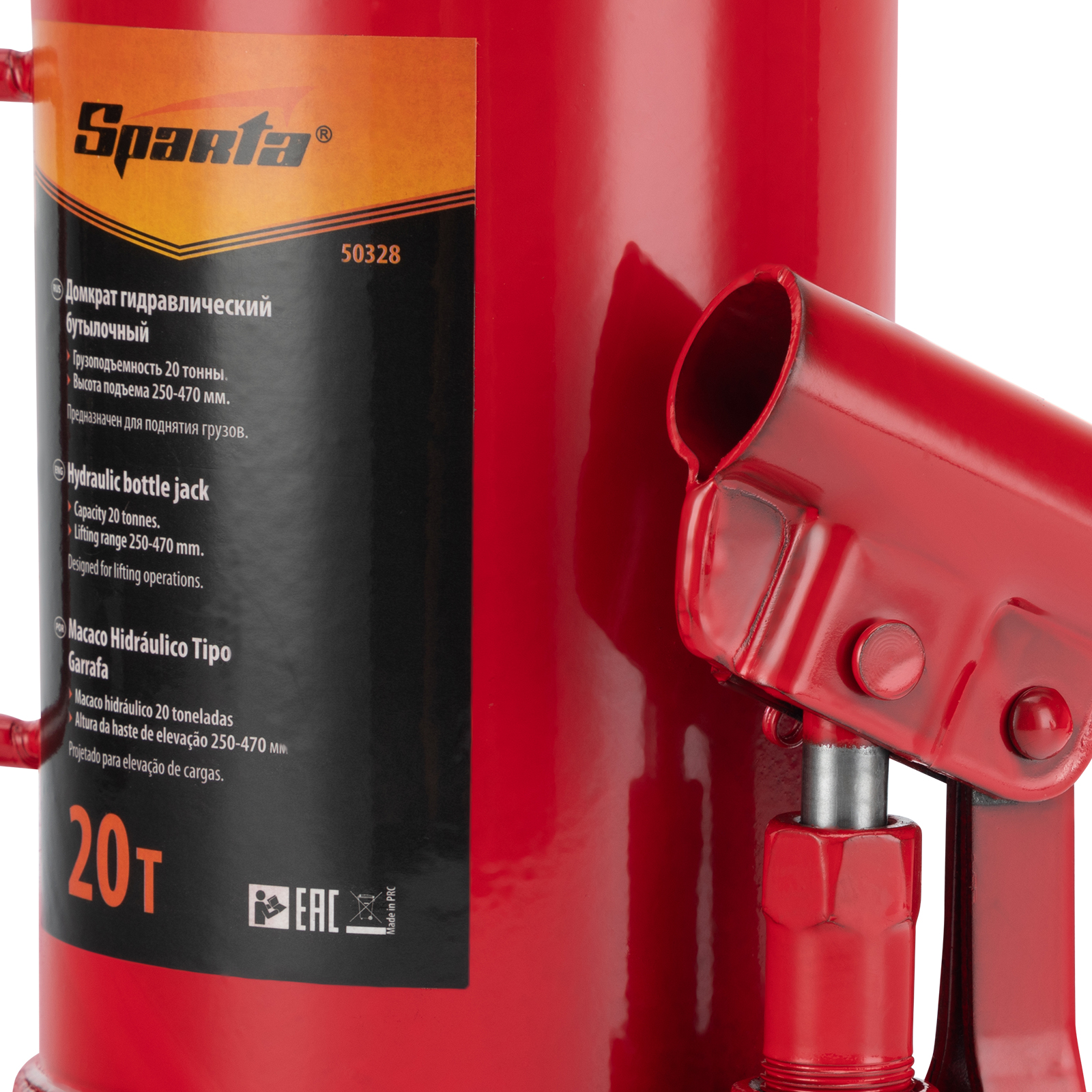 Домкрат гидравлический бутылочный, 20 т, h подъема 250-470 мм Sparta в Краснодаре