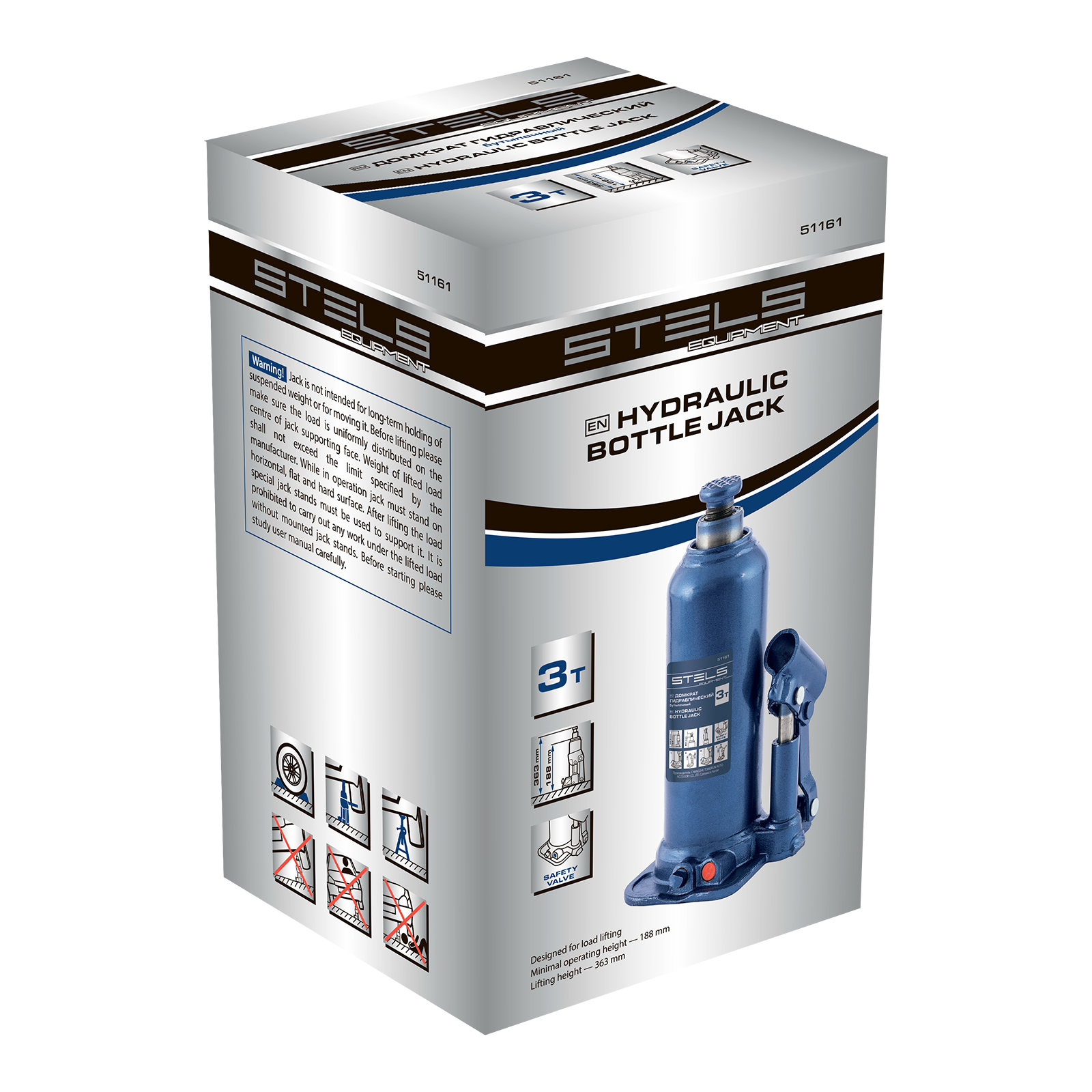 Гидравлический бутылочный домкрат Stels 51161 применяется для быстрого поднятия грузов весом до 3 т на высоту 188-363 мм. Оптимален для автомобилей с большим клиренсом. Домкрат будет полезен автолюбителям и профессионалам для ремонта транспортного средства.