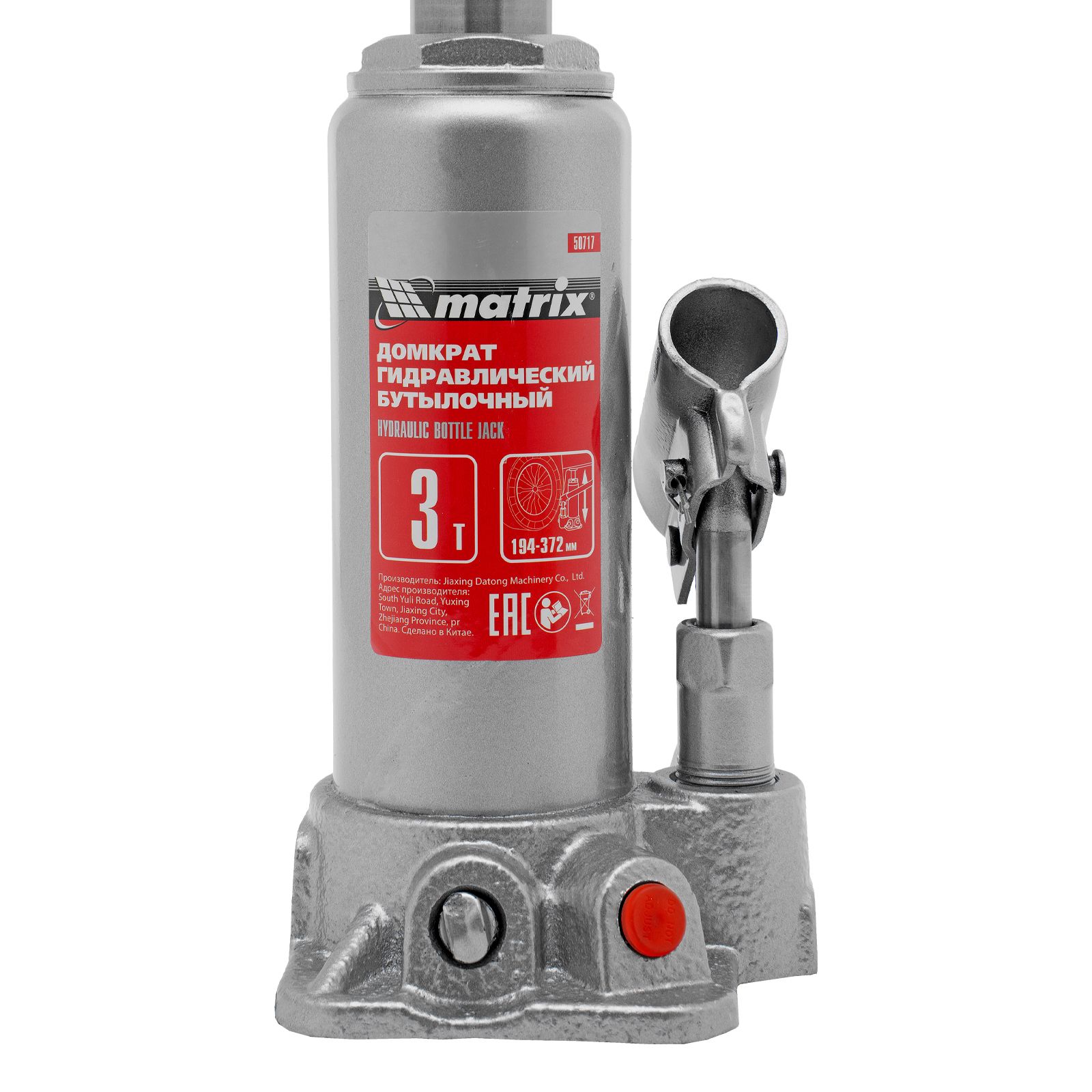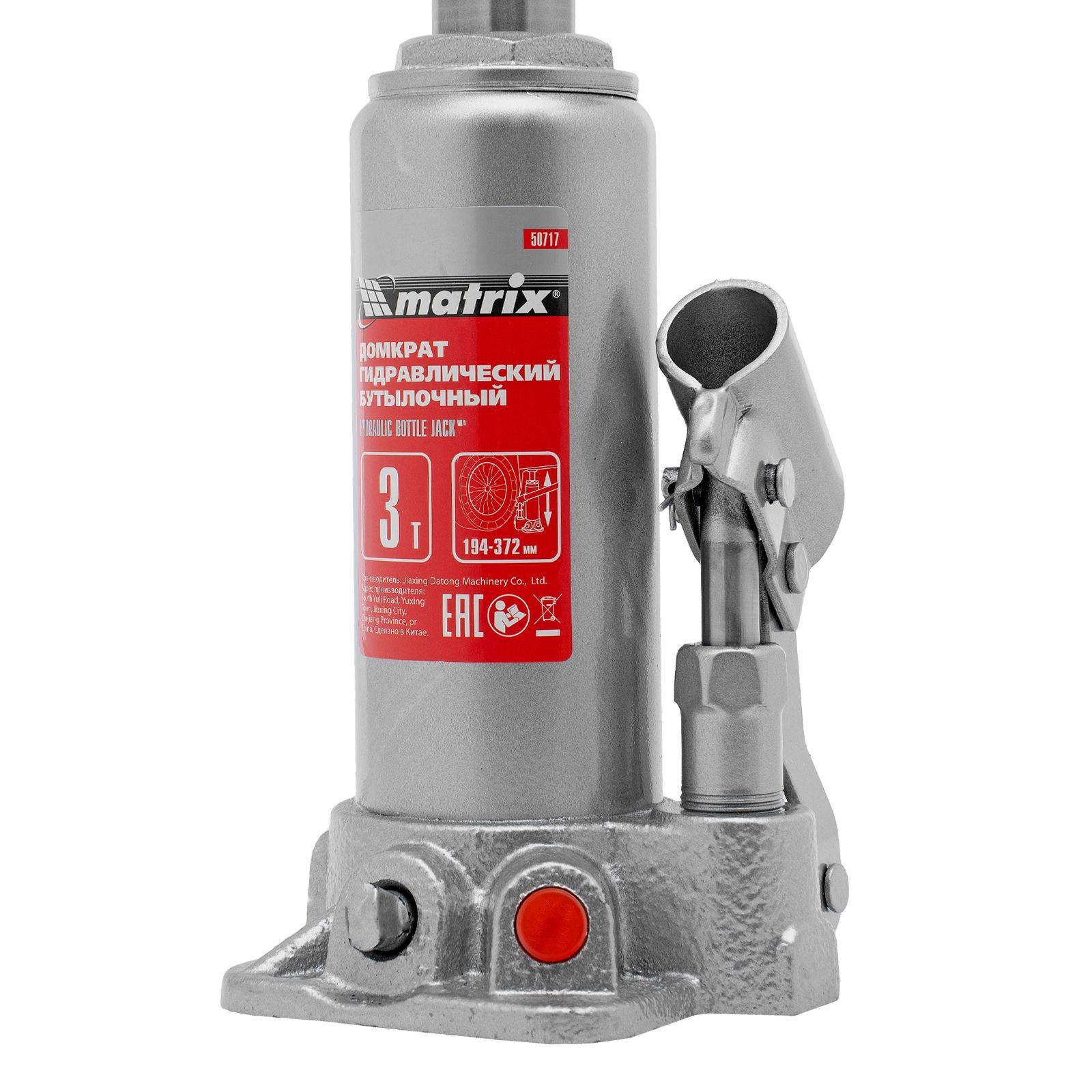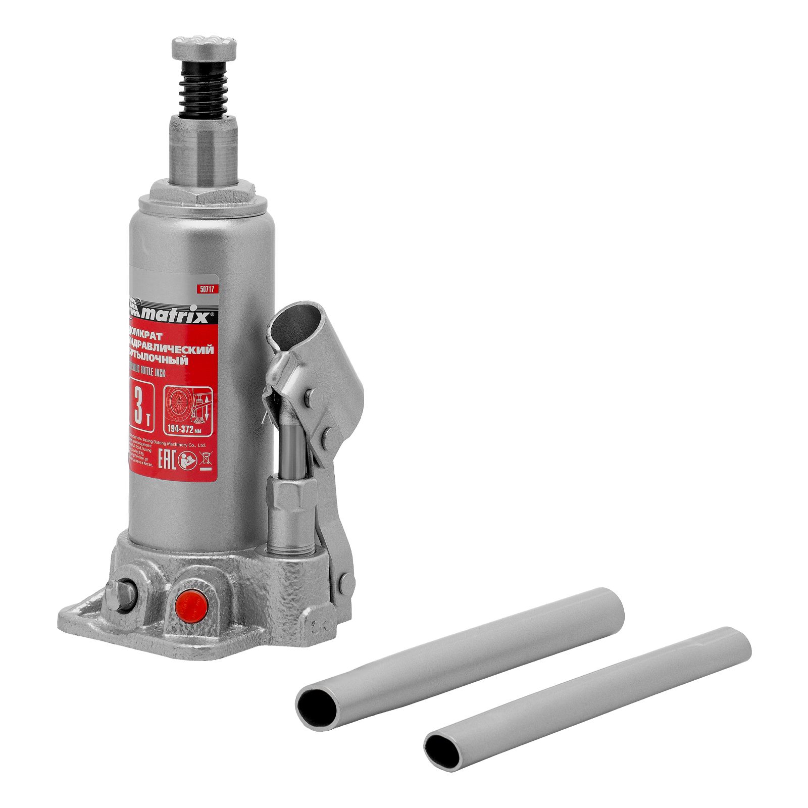Домкрат гидравлический бутылочный, 3 т, высота подъема 194-372 мм Matrix в Краснодаре