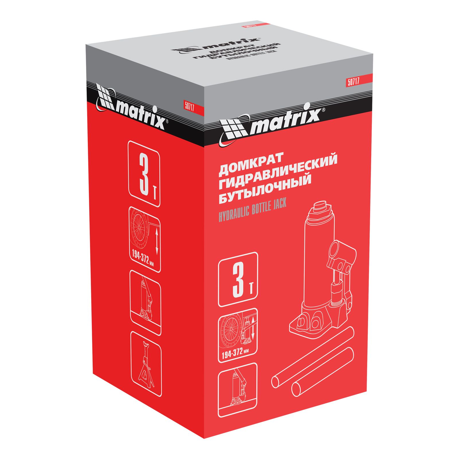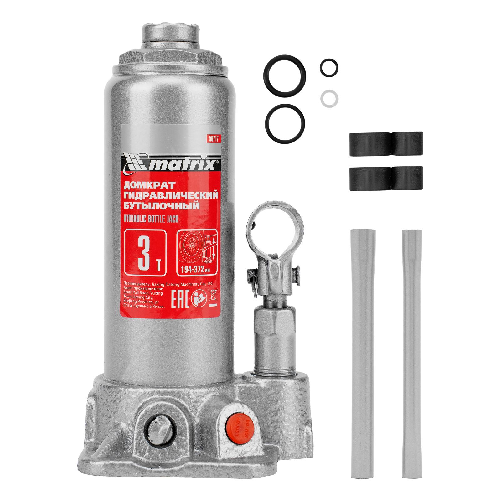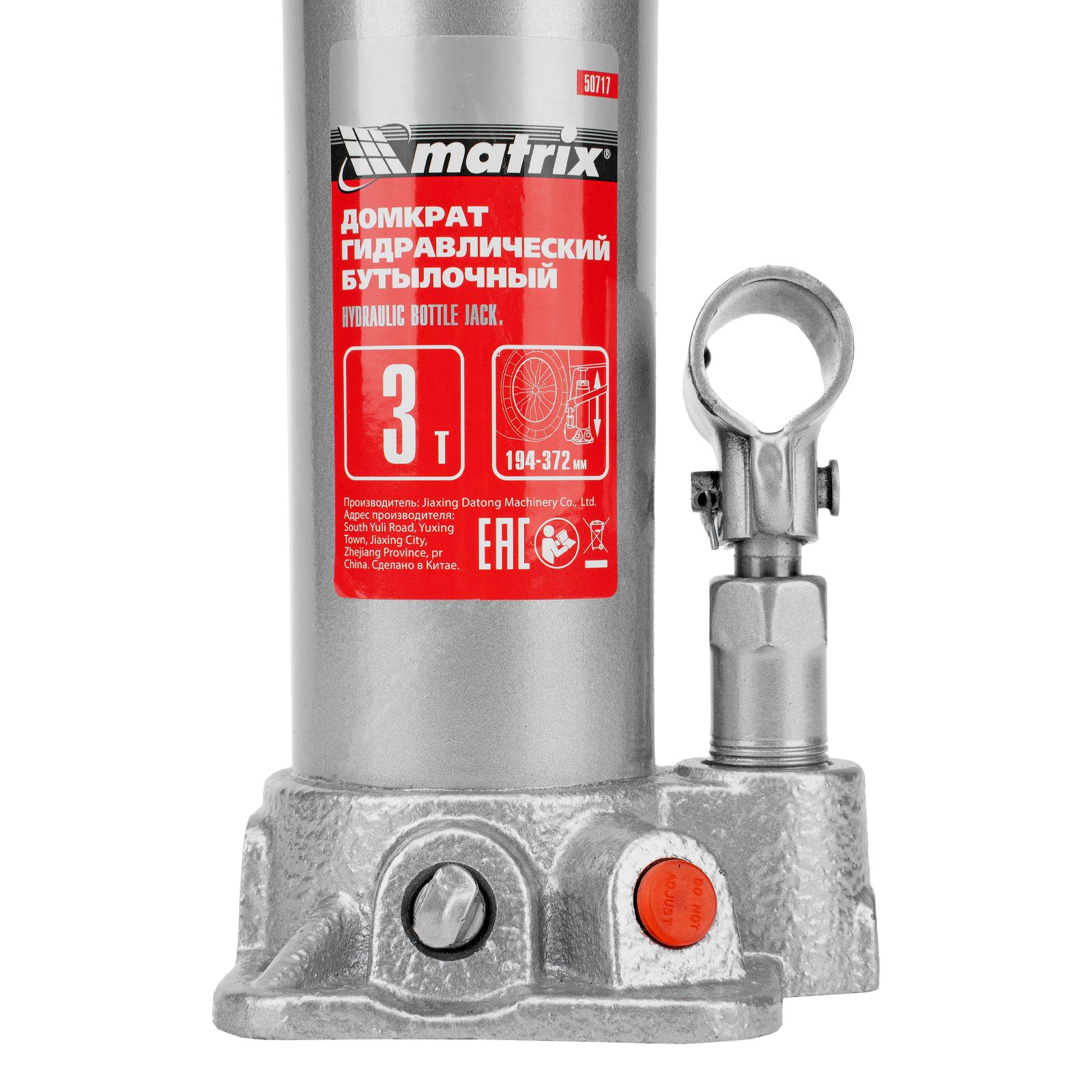 Домкрат гидравлический бутылочный, 3 т, высота подъема 194-372 мм Matrix в Краснодаре