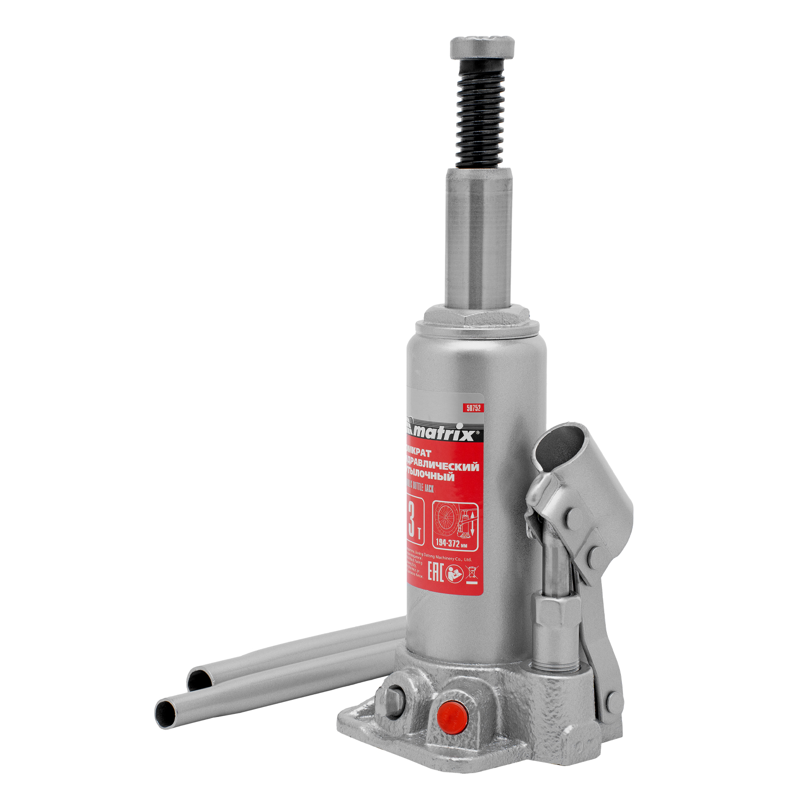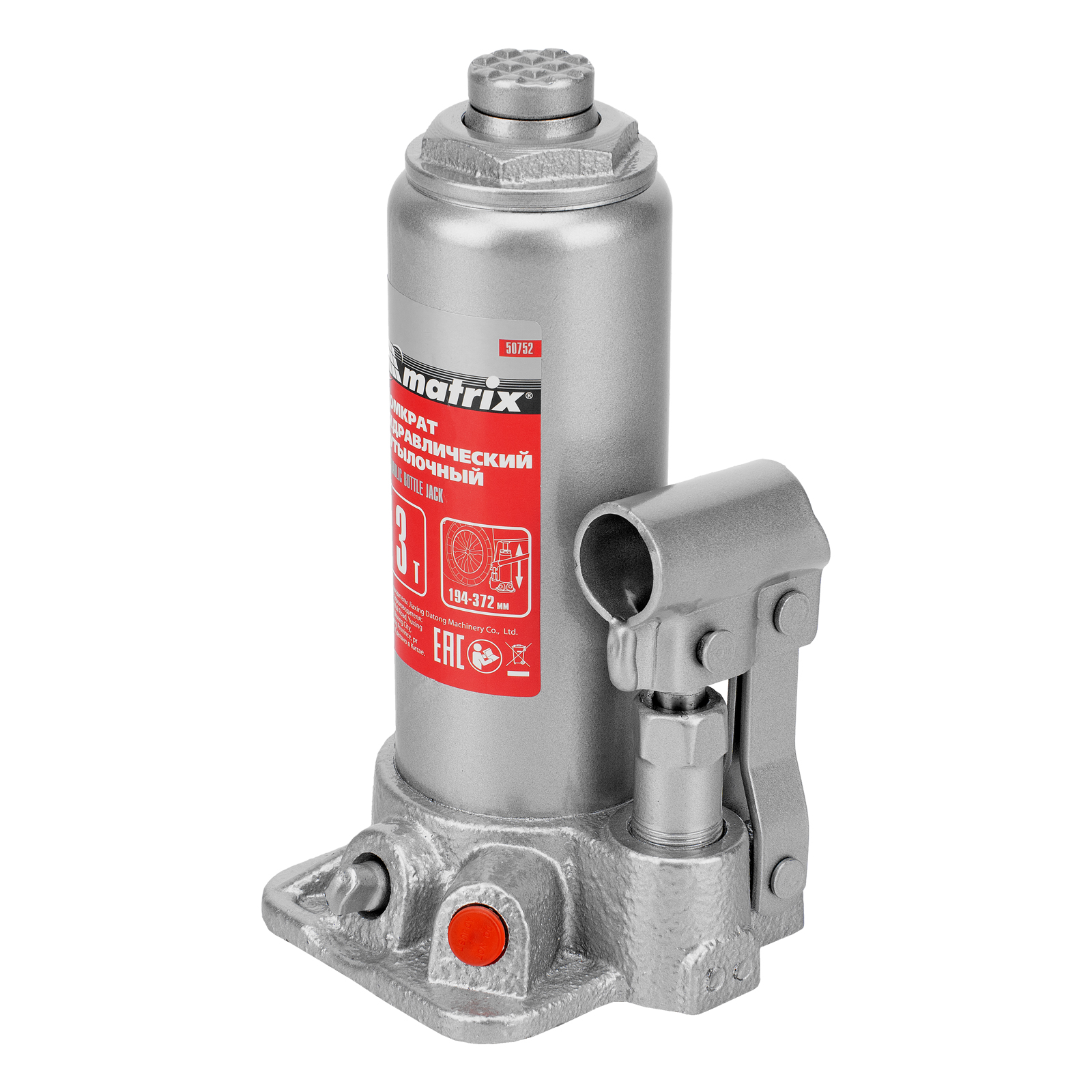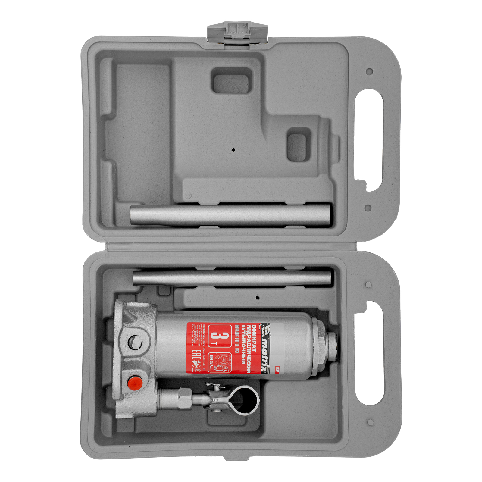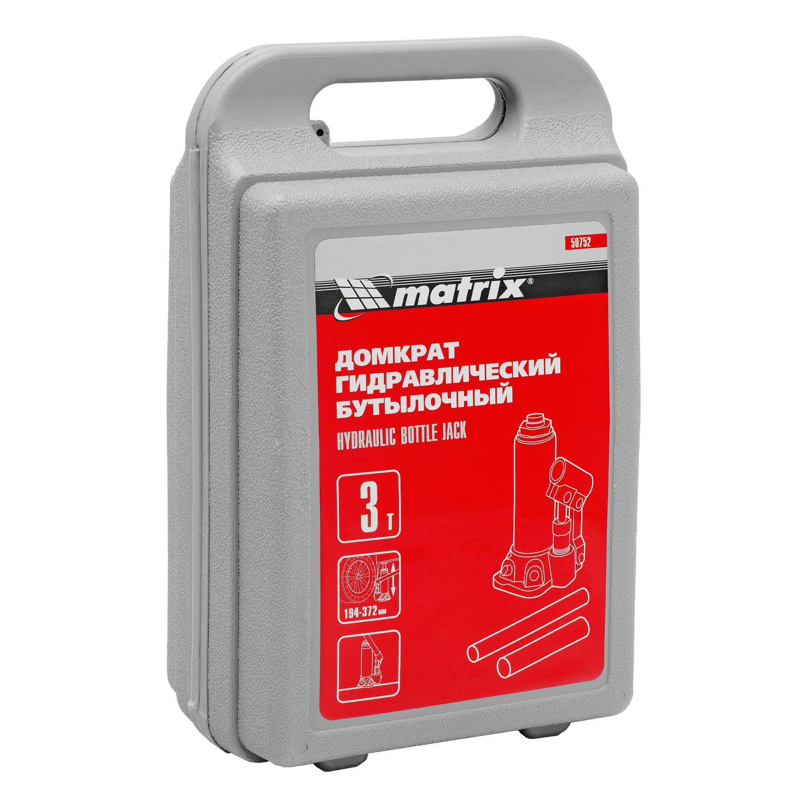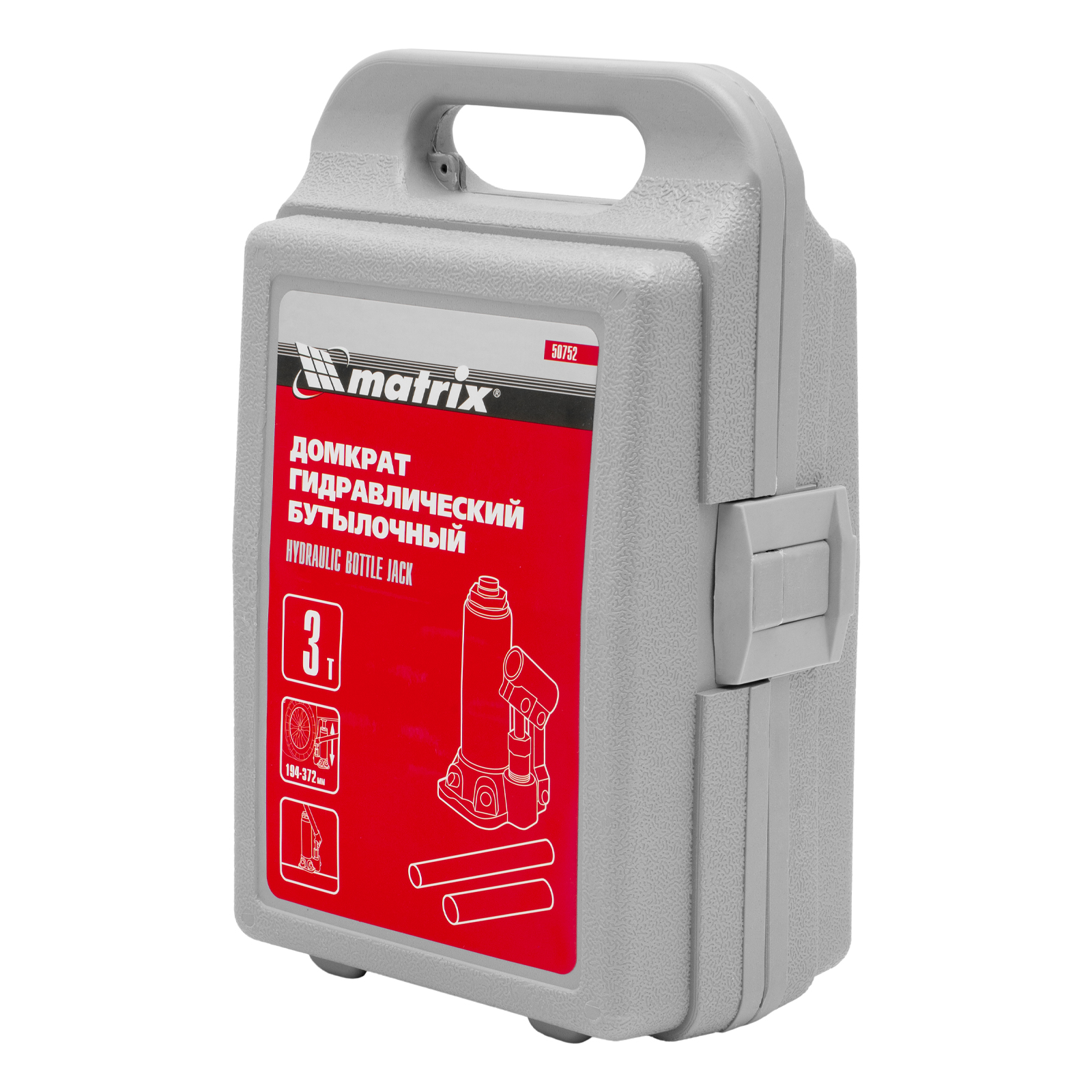 Домкрат гидравлический бутылочный, 3 т, высота подъема 194-372 мм, в пластиковый кейсе Matrix в Краснодаре