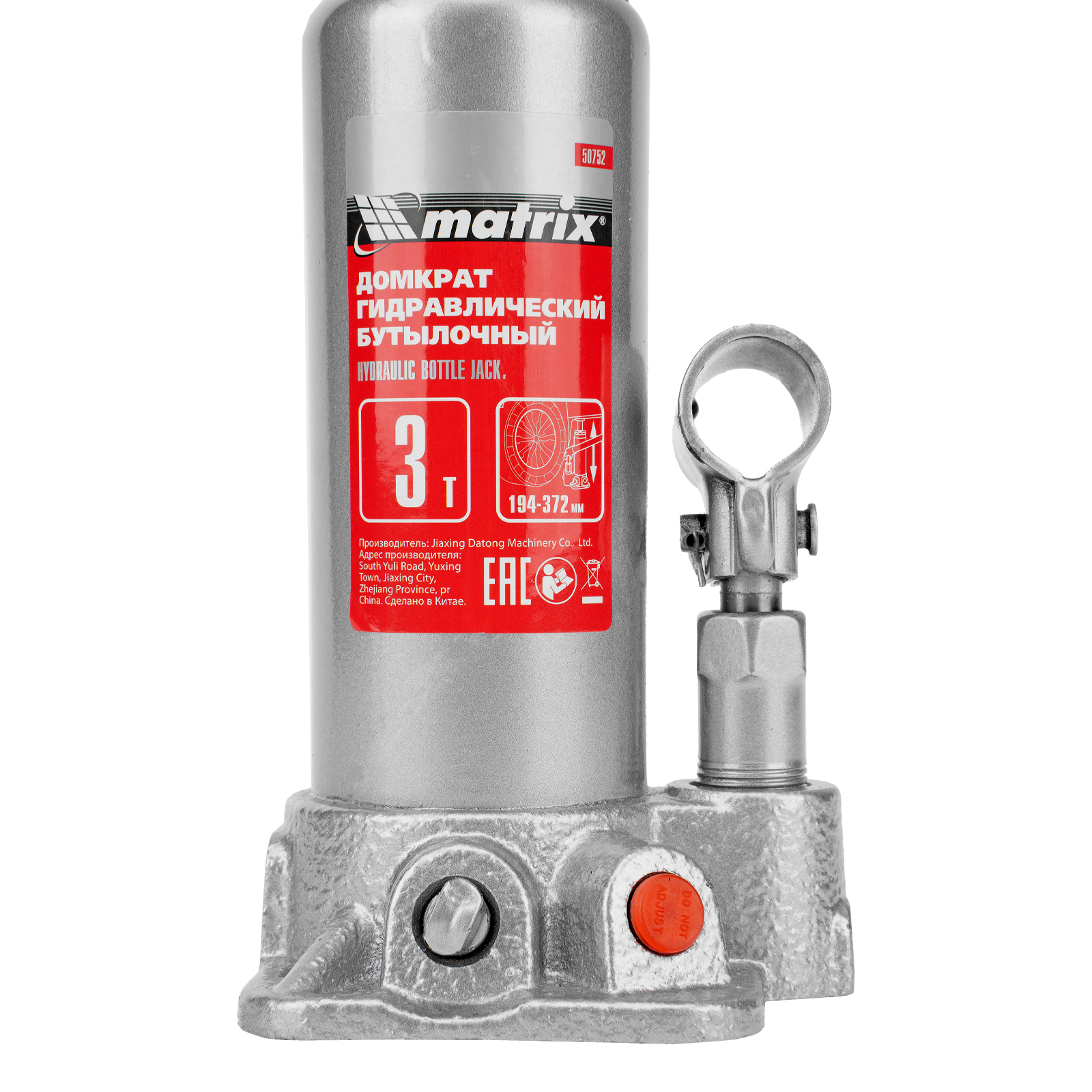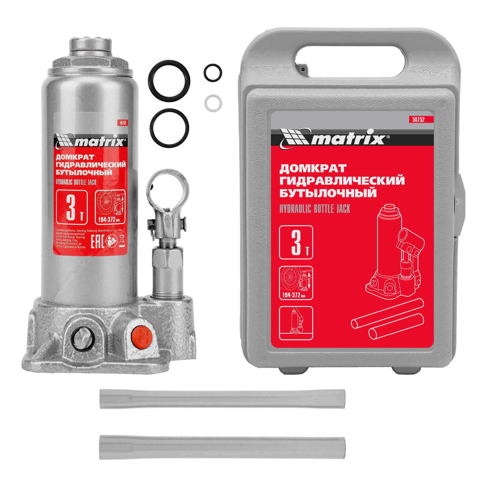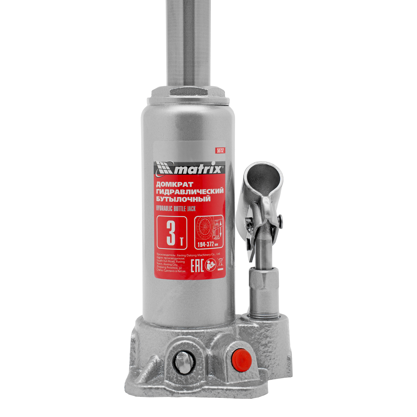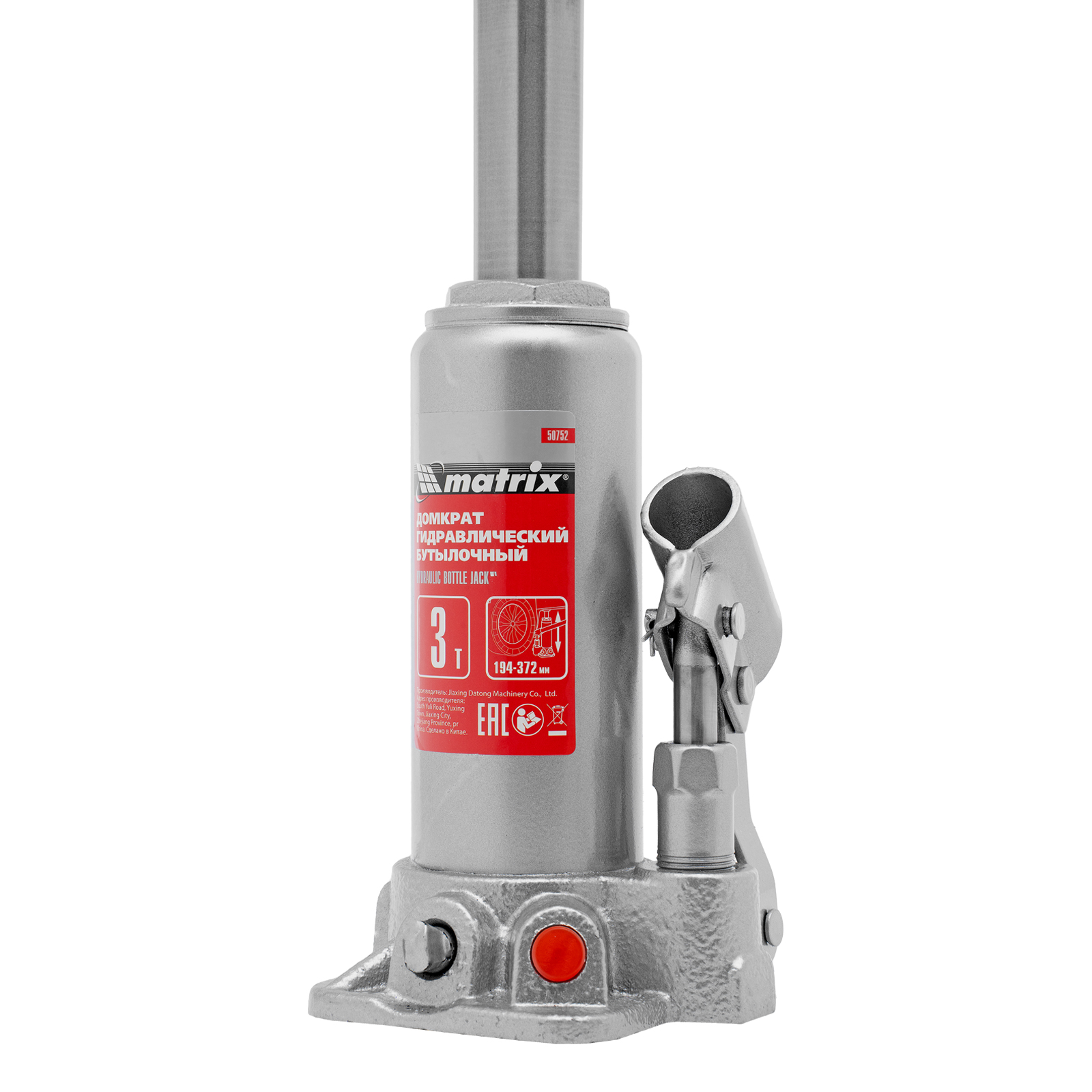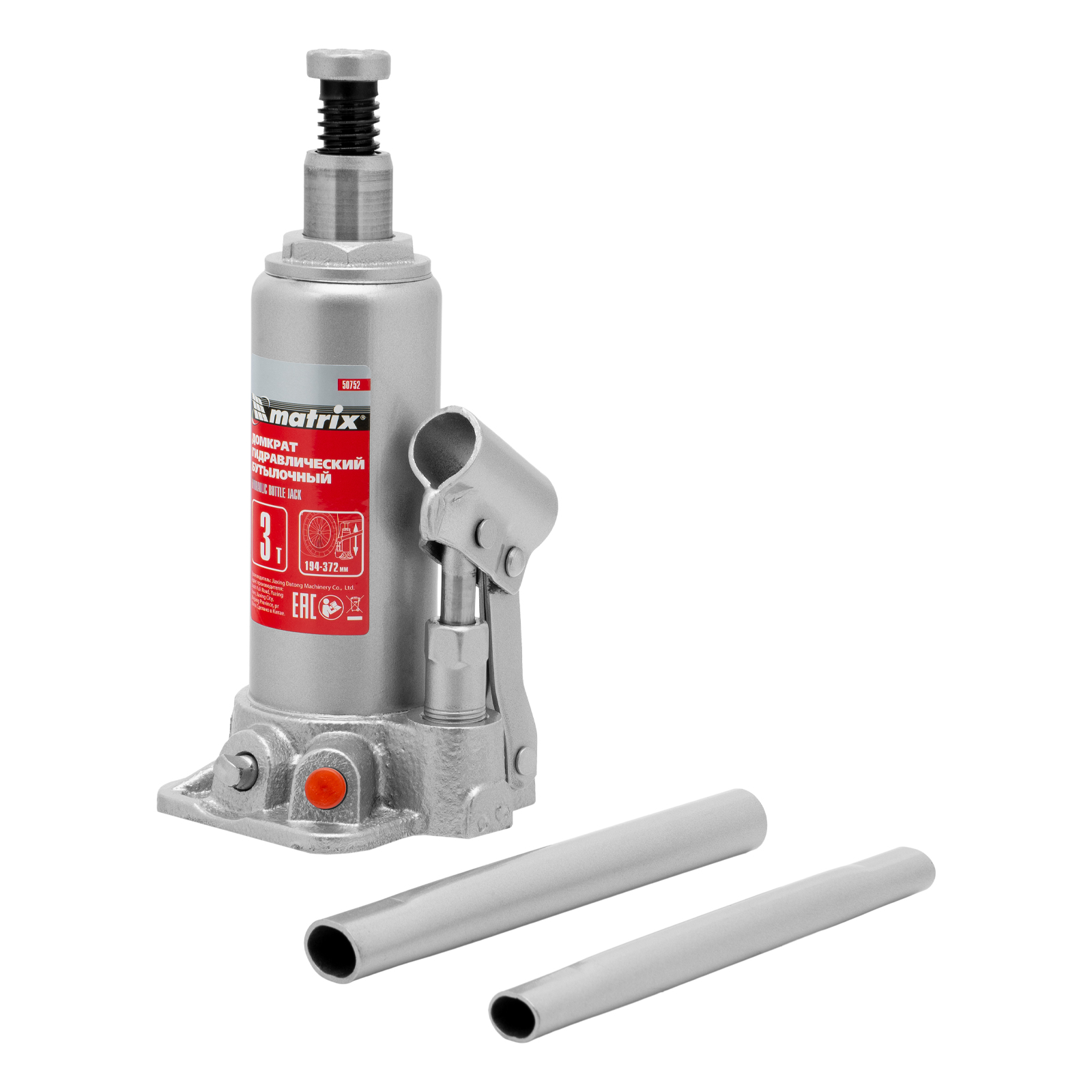 Домкрат гидравлический бутылочный, 3 т, высота подъема 194-372 мм, в пластиковый кейсе Matrix в Краснодаре