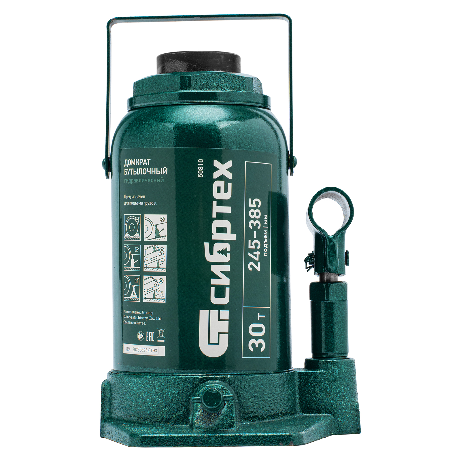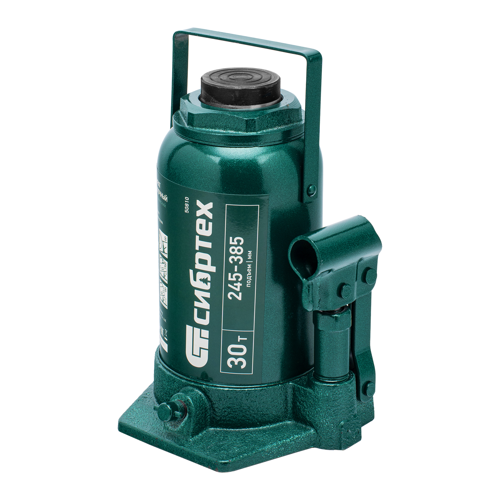Домкрат гидравлический бутылочный Сибртех 50810 предназначен для подъема грузов массой до 30 т на высоту от 245 до 385 мм. Будет полезен при проведении техобслуживания машины в автосервисе или гараже.