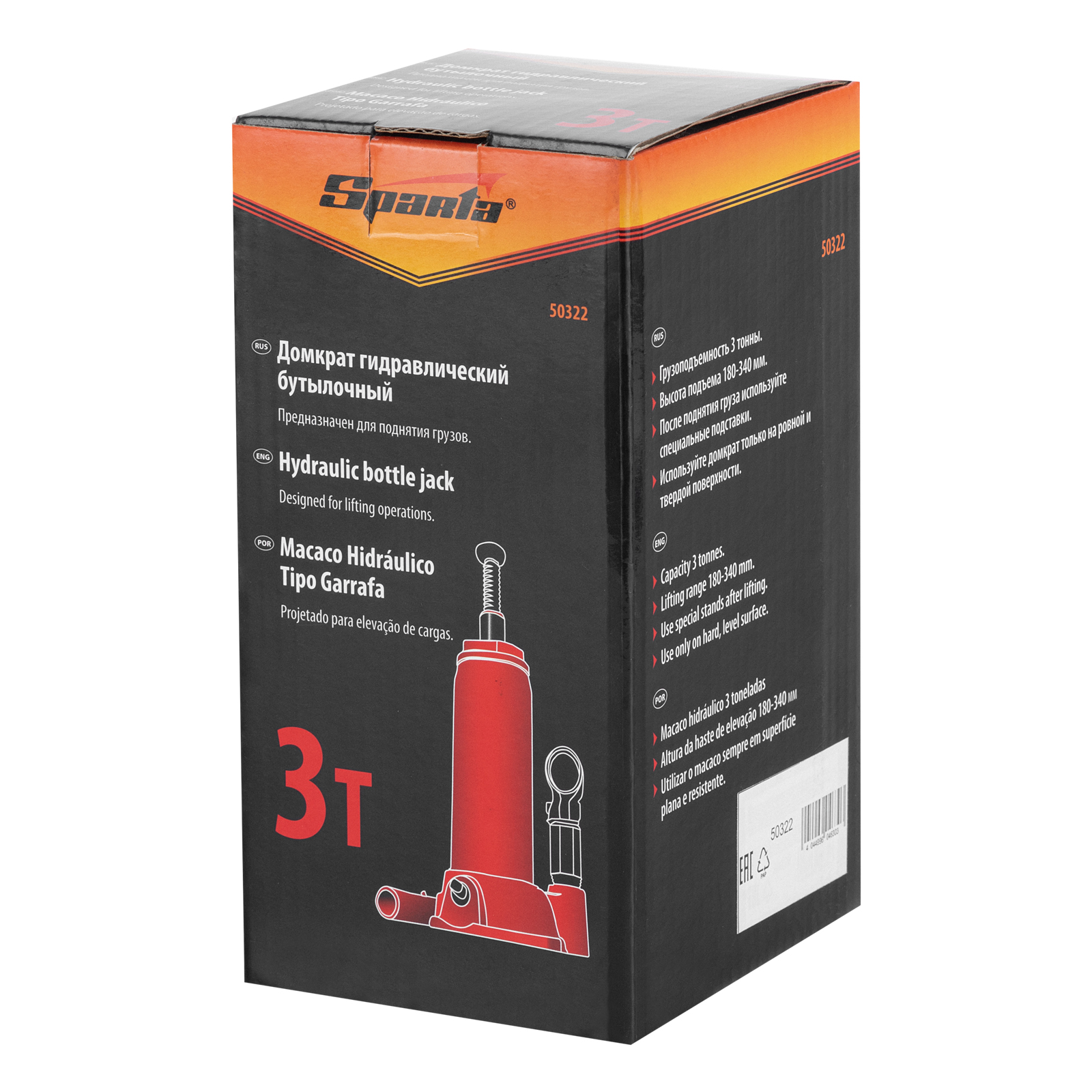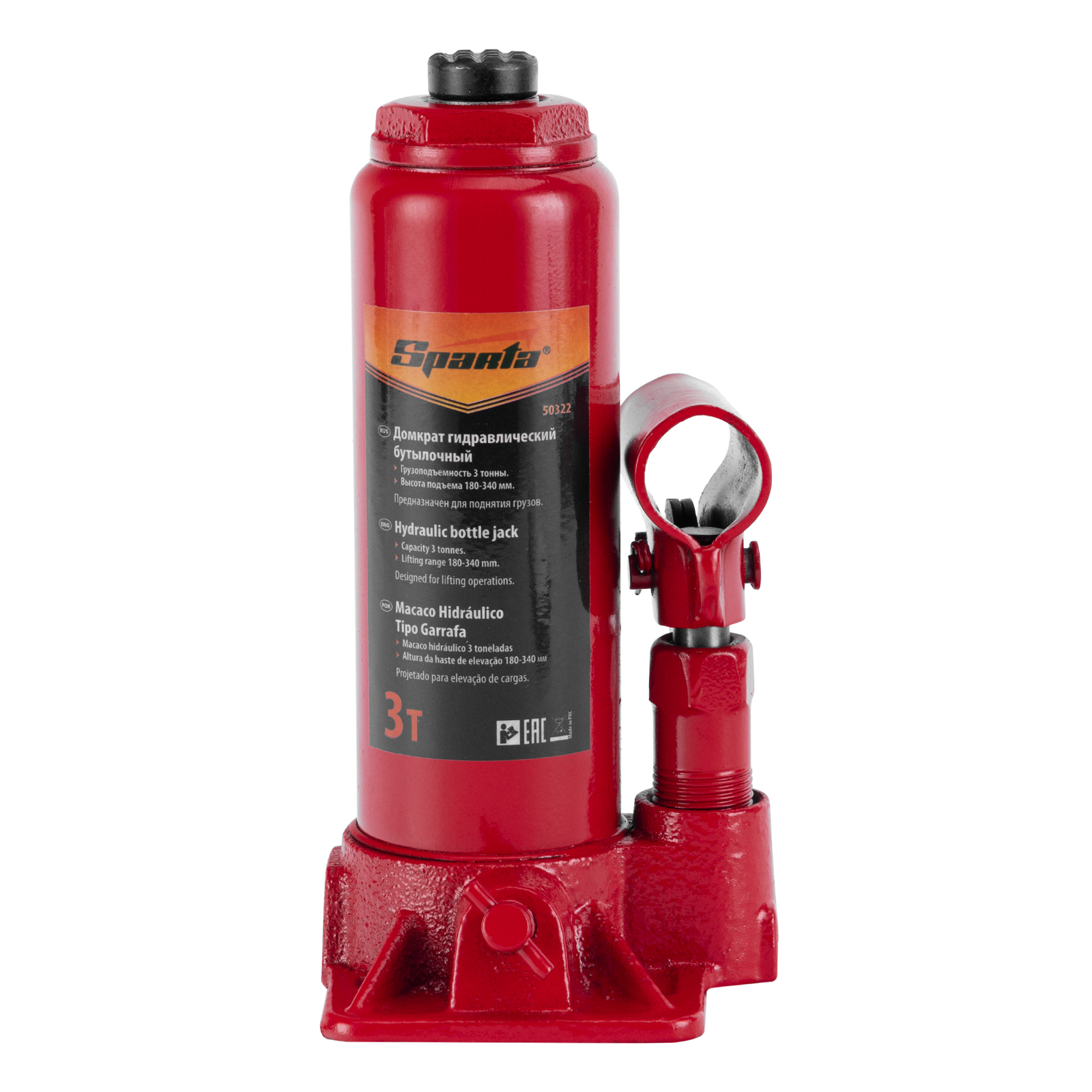 Домкрат гидравлический бутылочный, 3т, h подъема 180-340 мм Sparta в Краснодаре