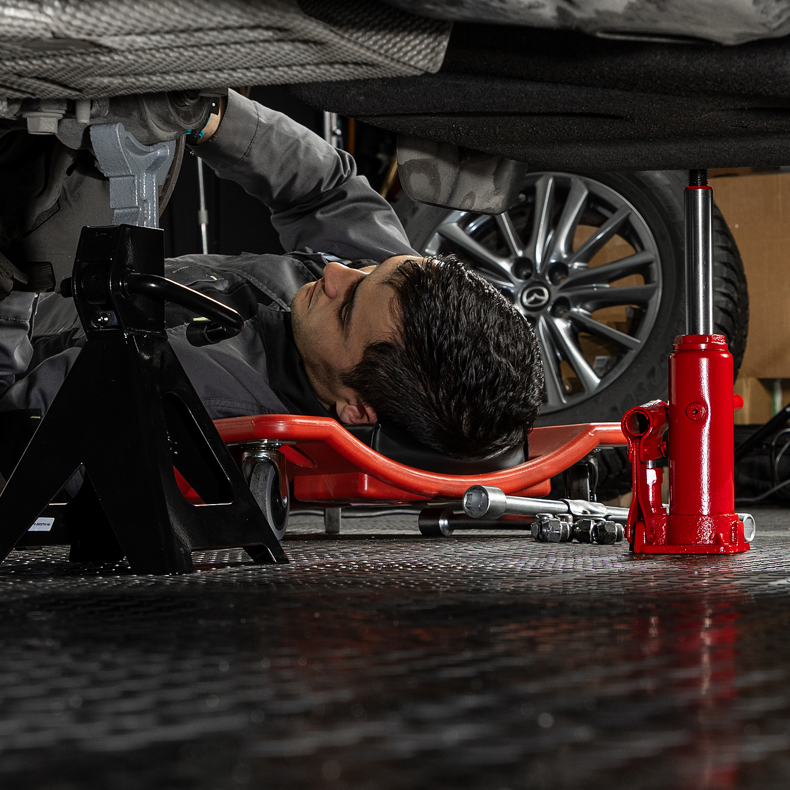 - Удобное хранение и транспортировка — домкрат оборудован съемным рычагом и весит 2,33 кг.