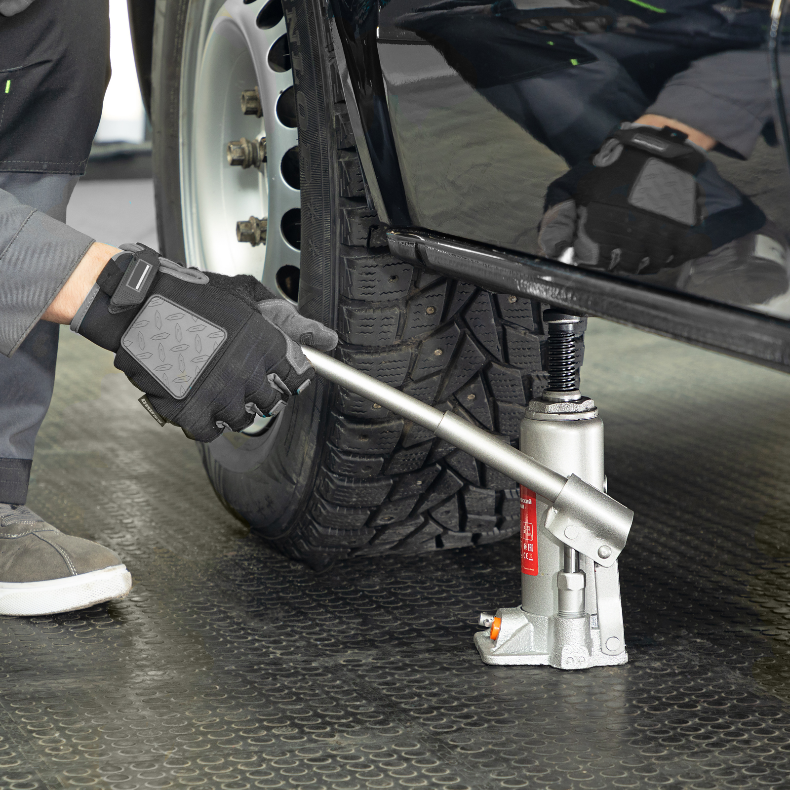 - Удобная транспортировка — домкрат весом 3,25 кг легко помещается в багажник авто.