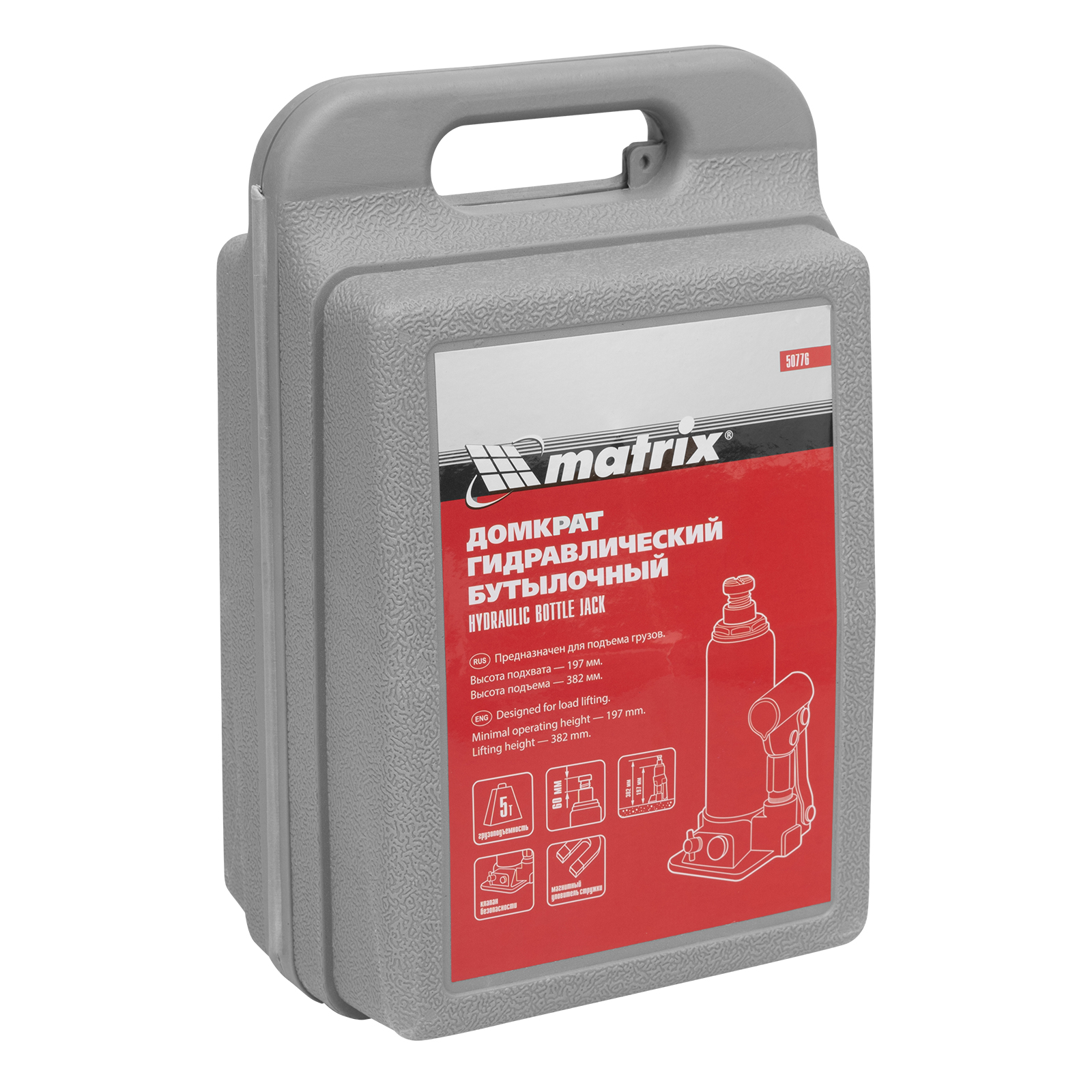 Домкрат гидравлический бутылочный, 5 т, h подъема 197-382 мм, в пластиковом кейсе Matrix в Краснодаре
