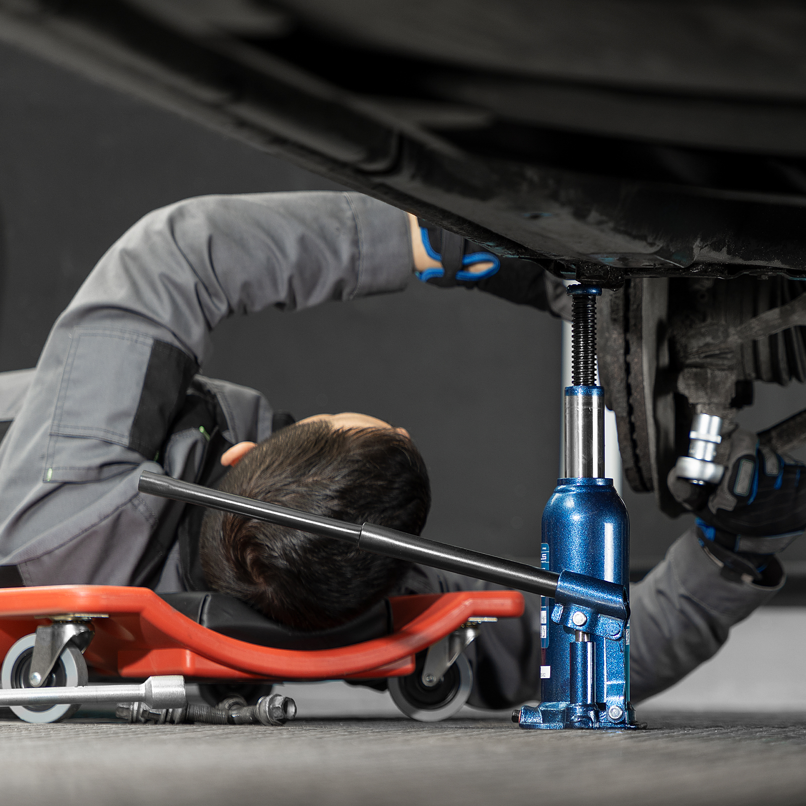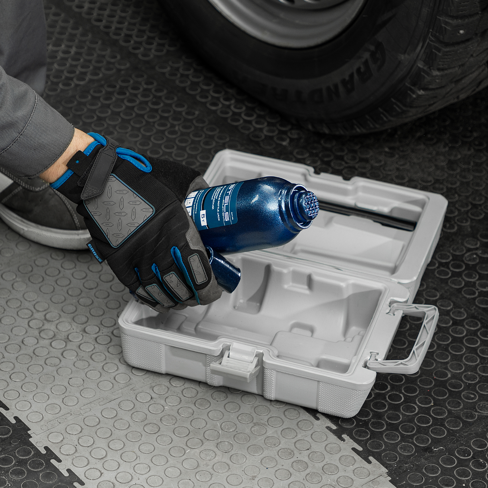 - Удобное хранение и транспортировка — домкрат поставляется в пластиковом кейсе.