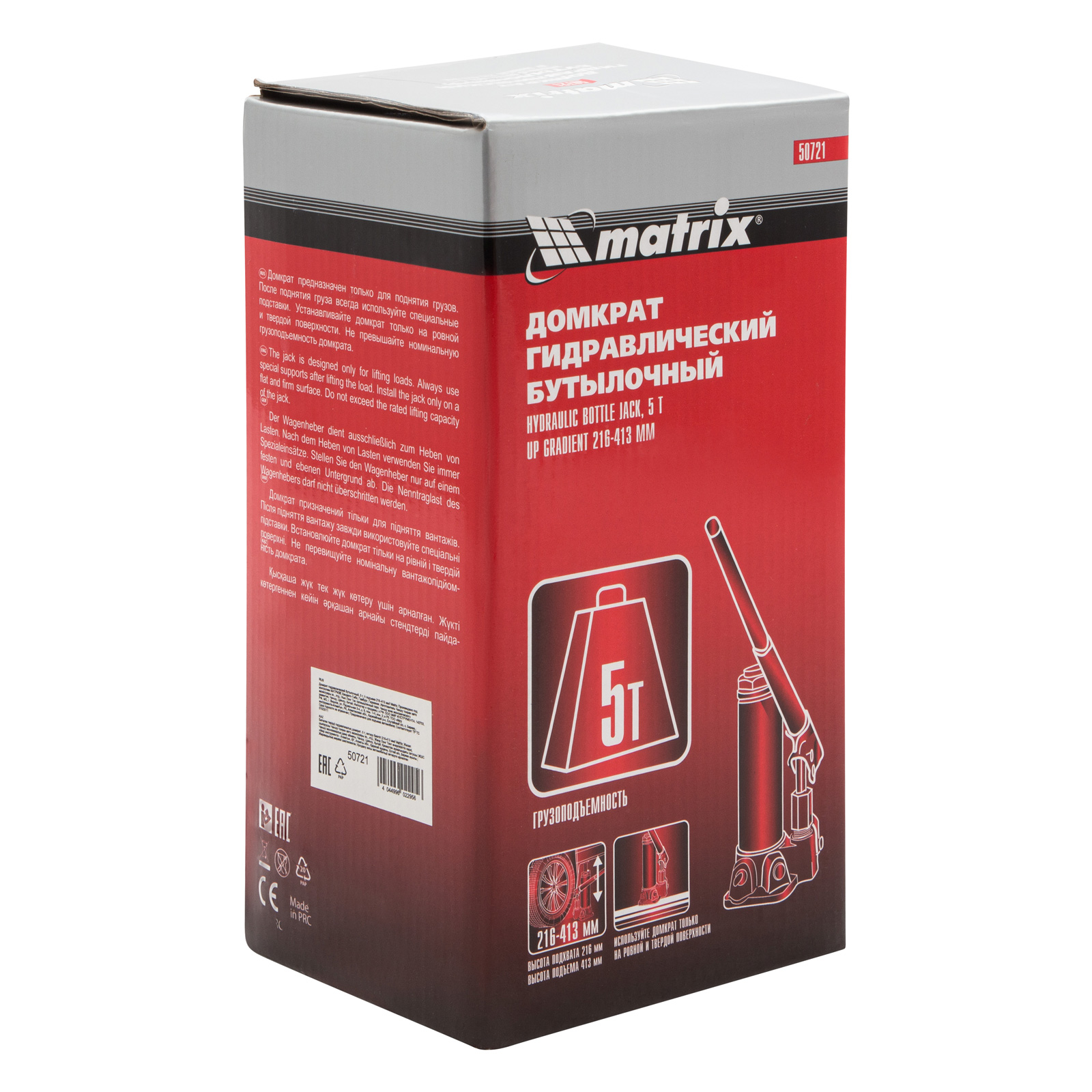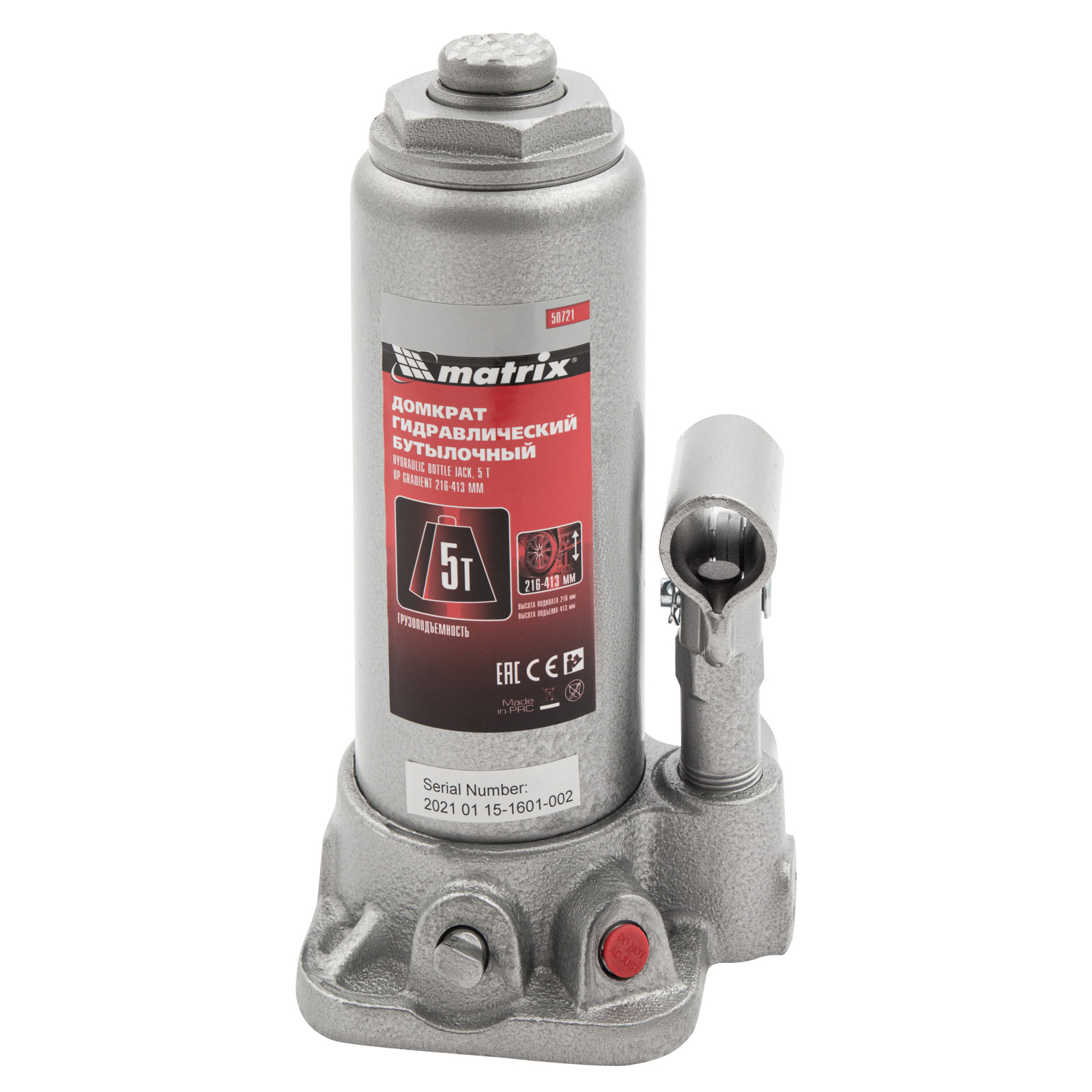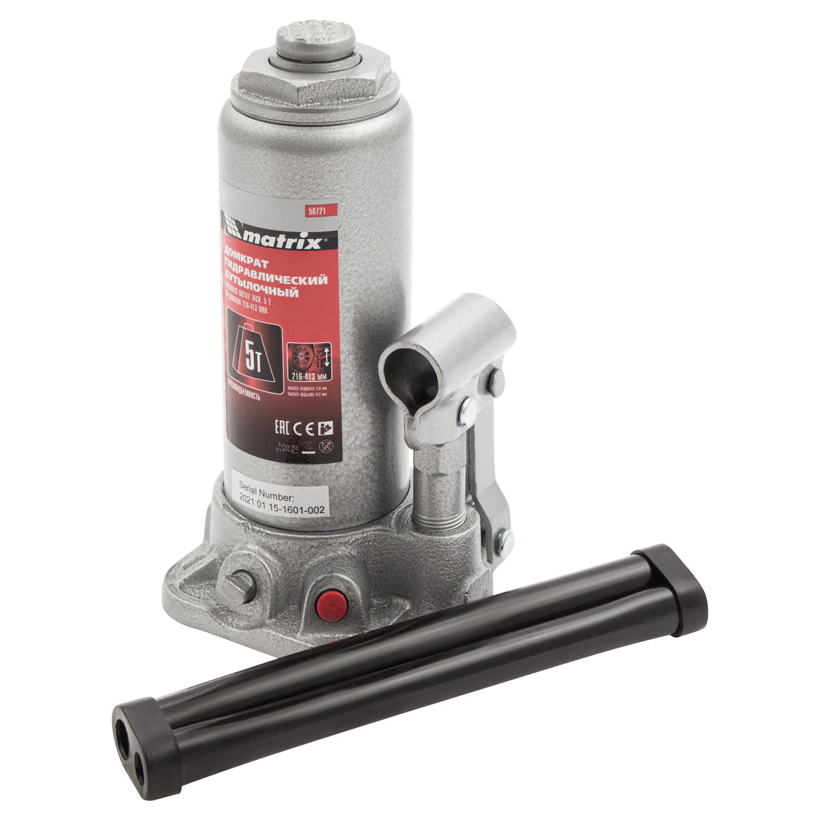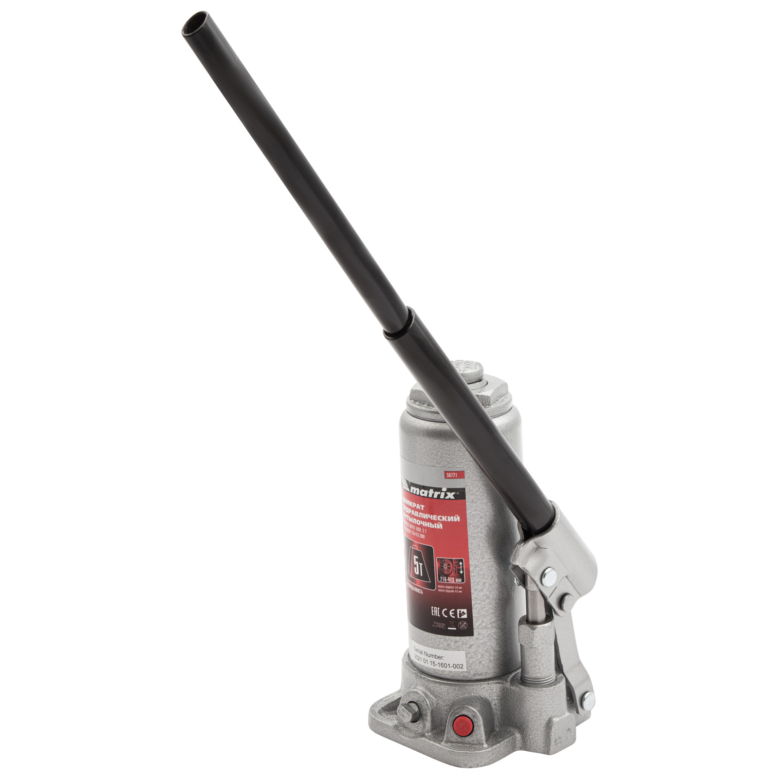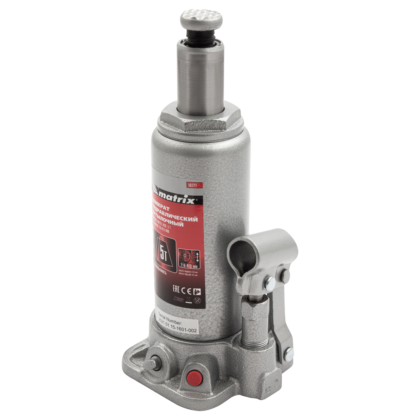 Домкрат гидравлический бутылочный, 5 т, высота подъема 216-413 мм Matrix в Краснодаре