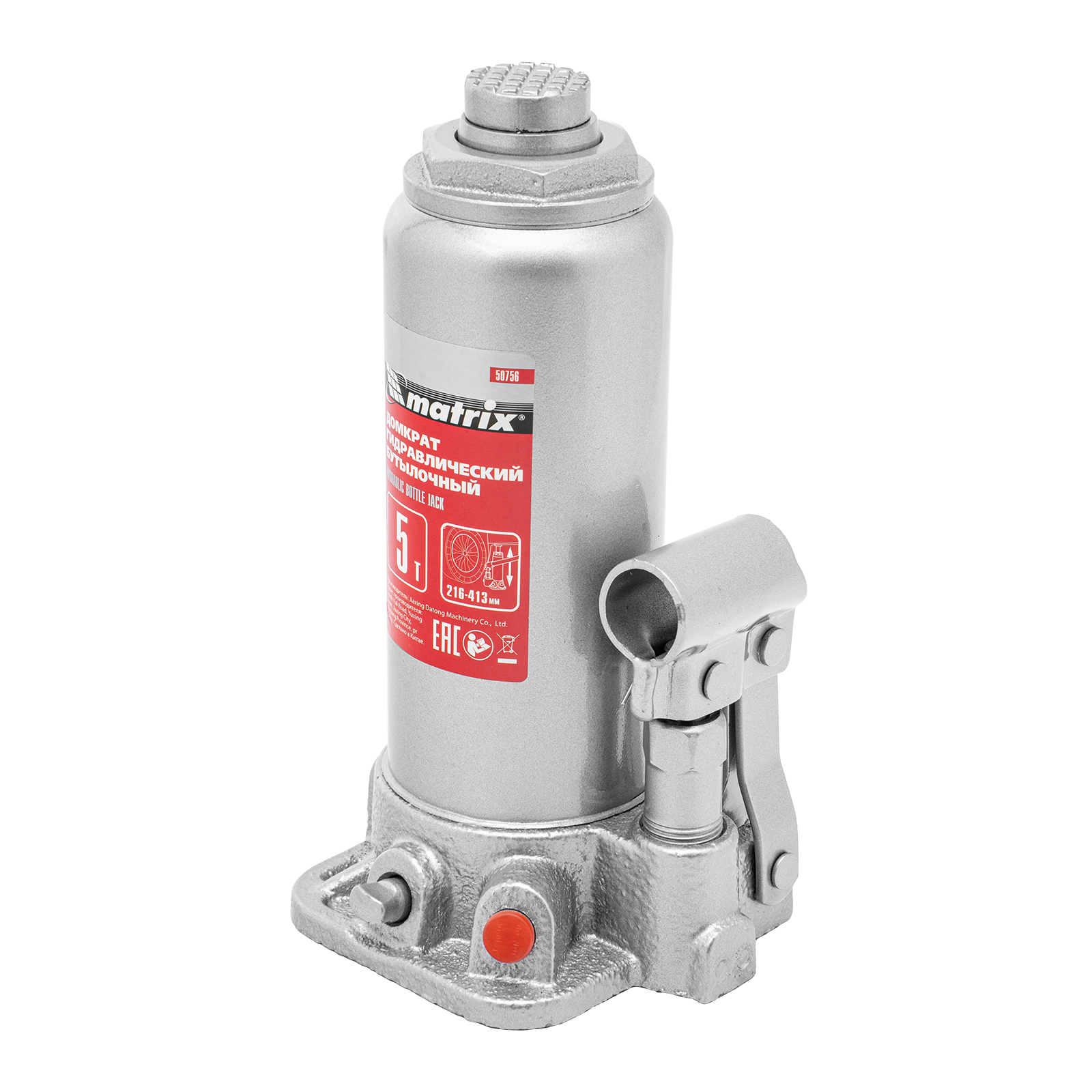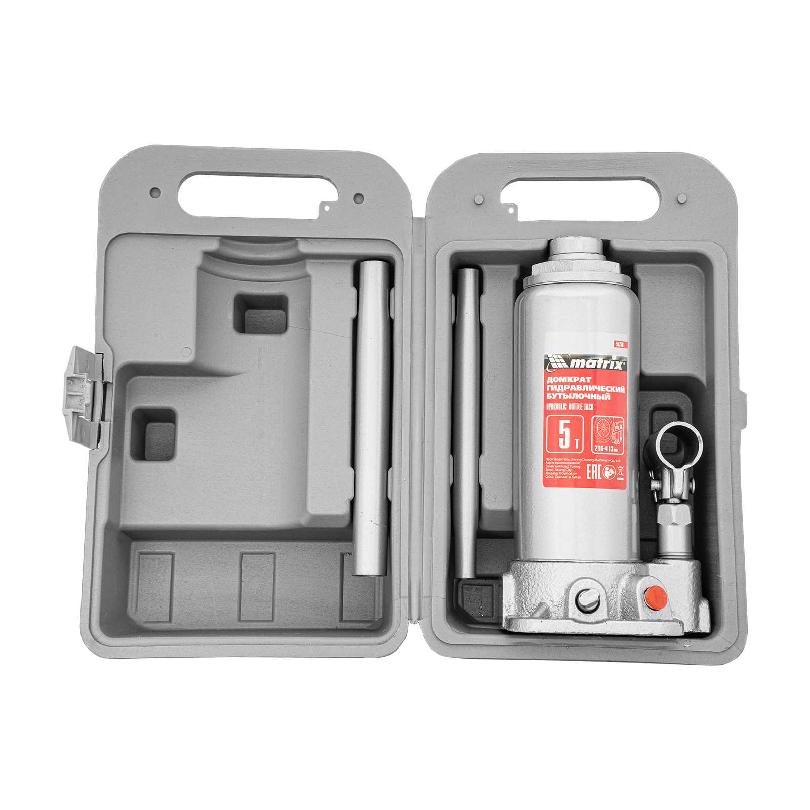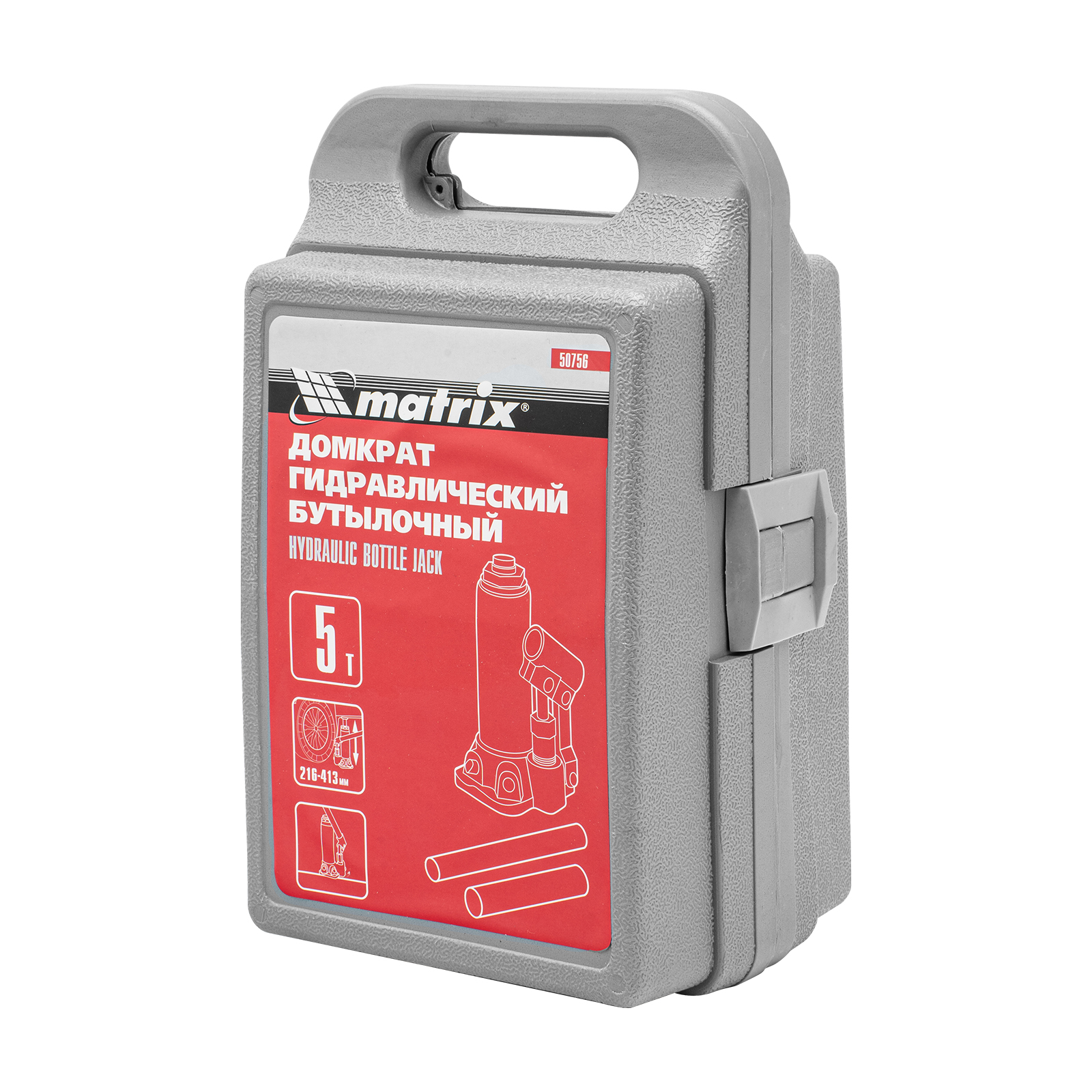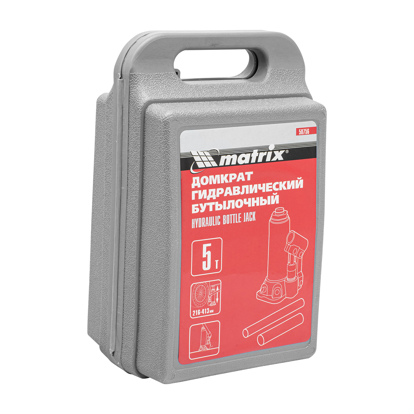 Домкрат гидравлический бутылочный, 5 т, высота подъема 216-413 мм, в пластиковый кейсе Matrix в Краснодаре