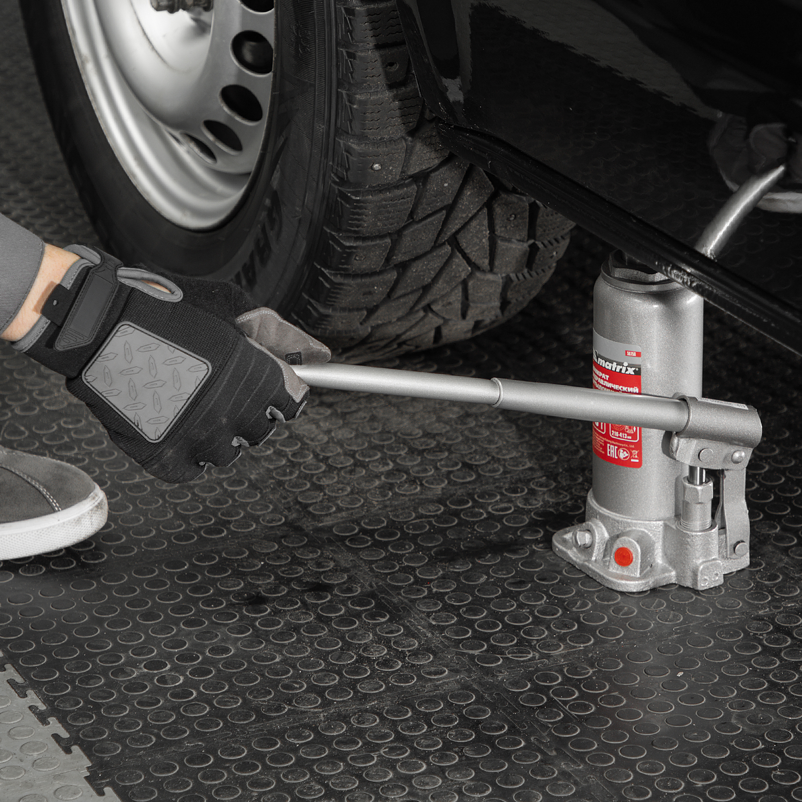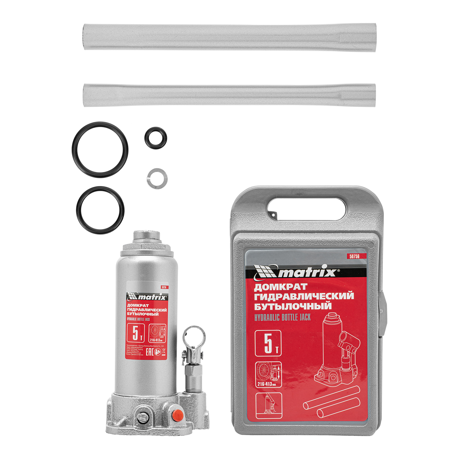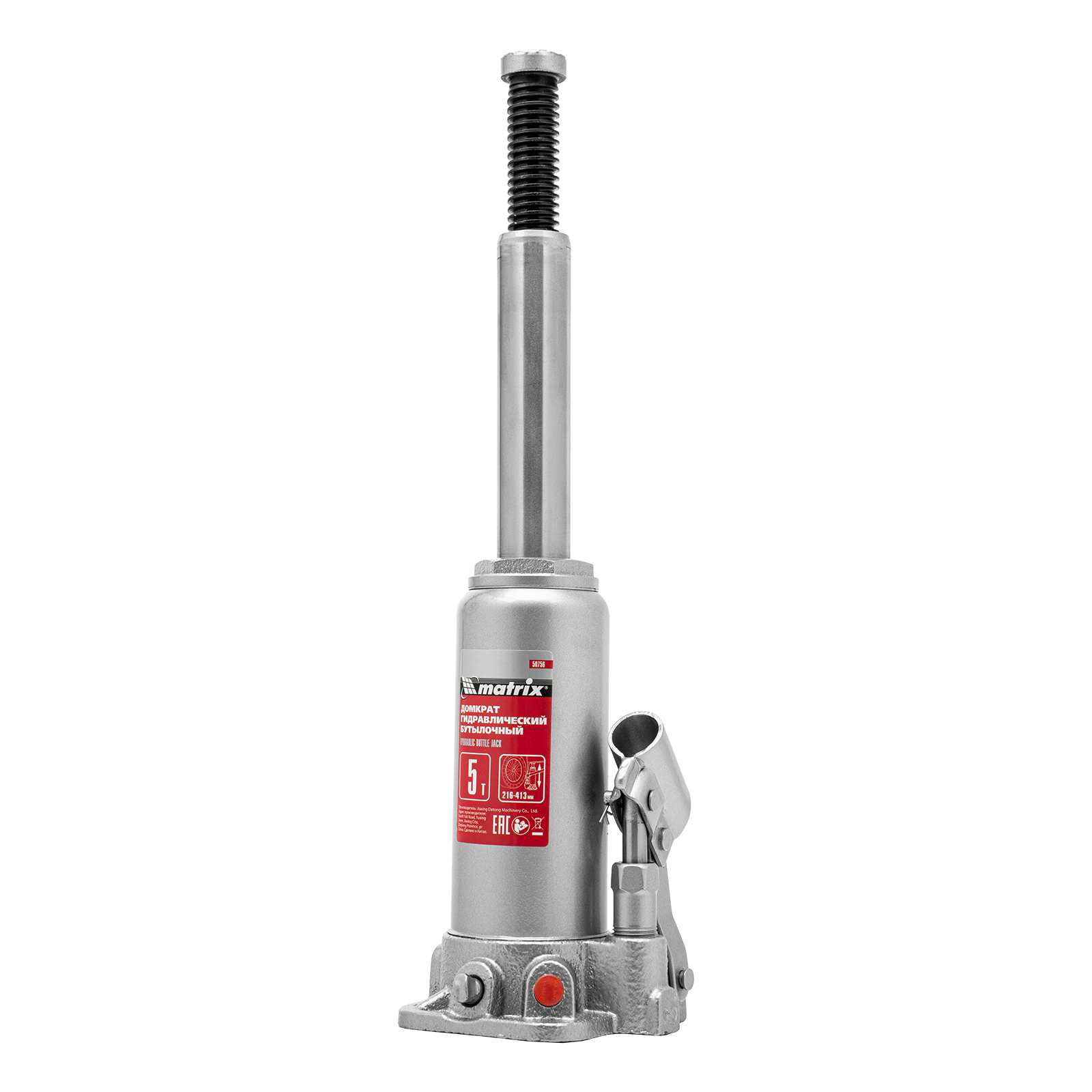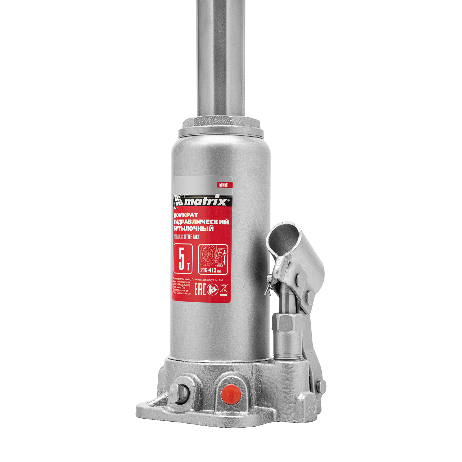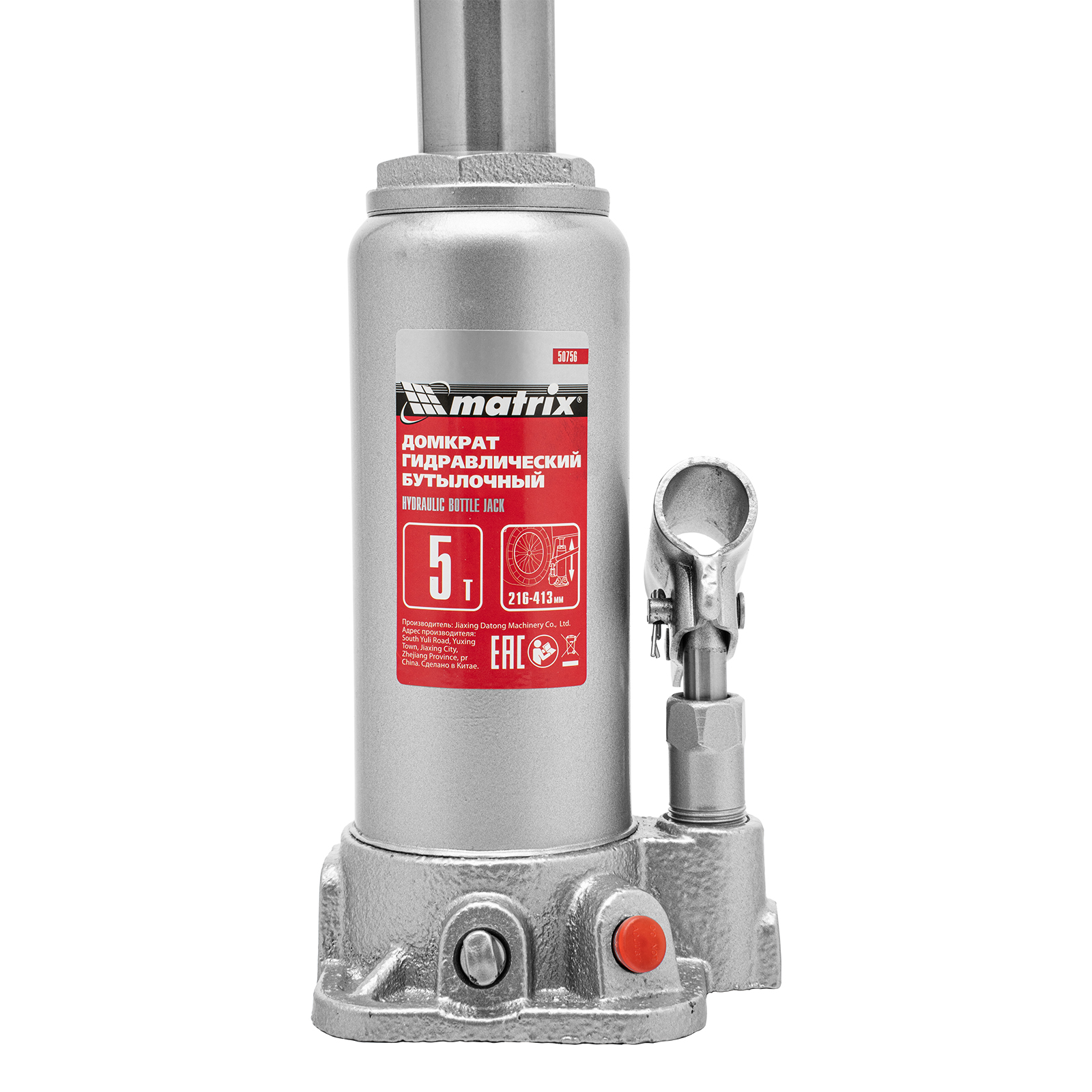 Домкрат гидравлический бутылочный, 5 т, высота подъема 216-413 мм, в пластиковый кейсе Matrix в Краснодаре