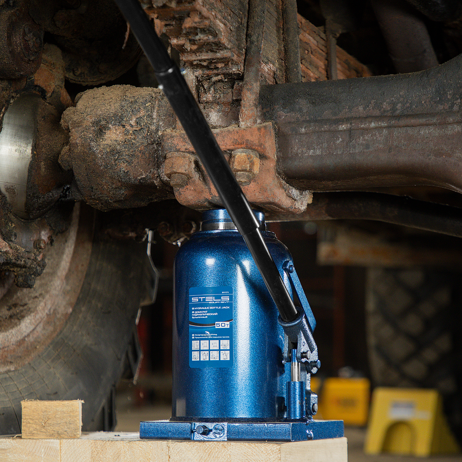 - Безопасная эксплуатация — благодаря предохранительному клапану домкрат не поднимает грузы тяжелее 50 т.