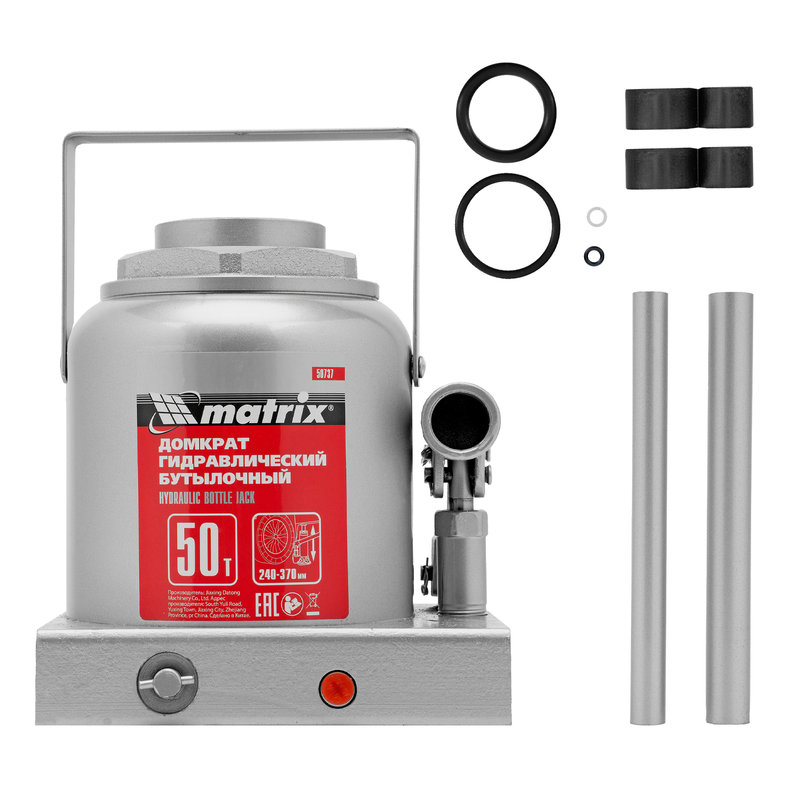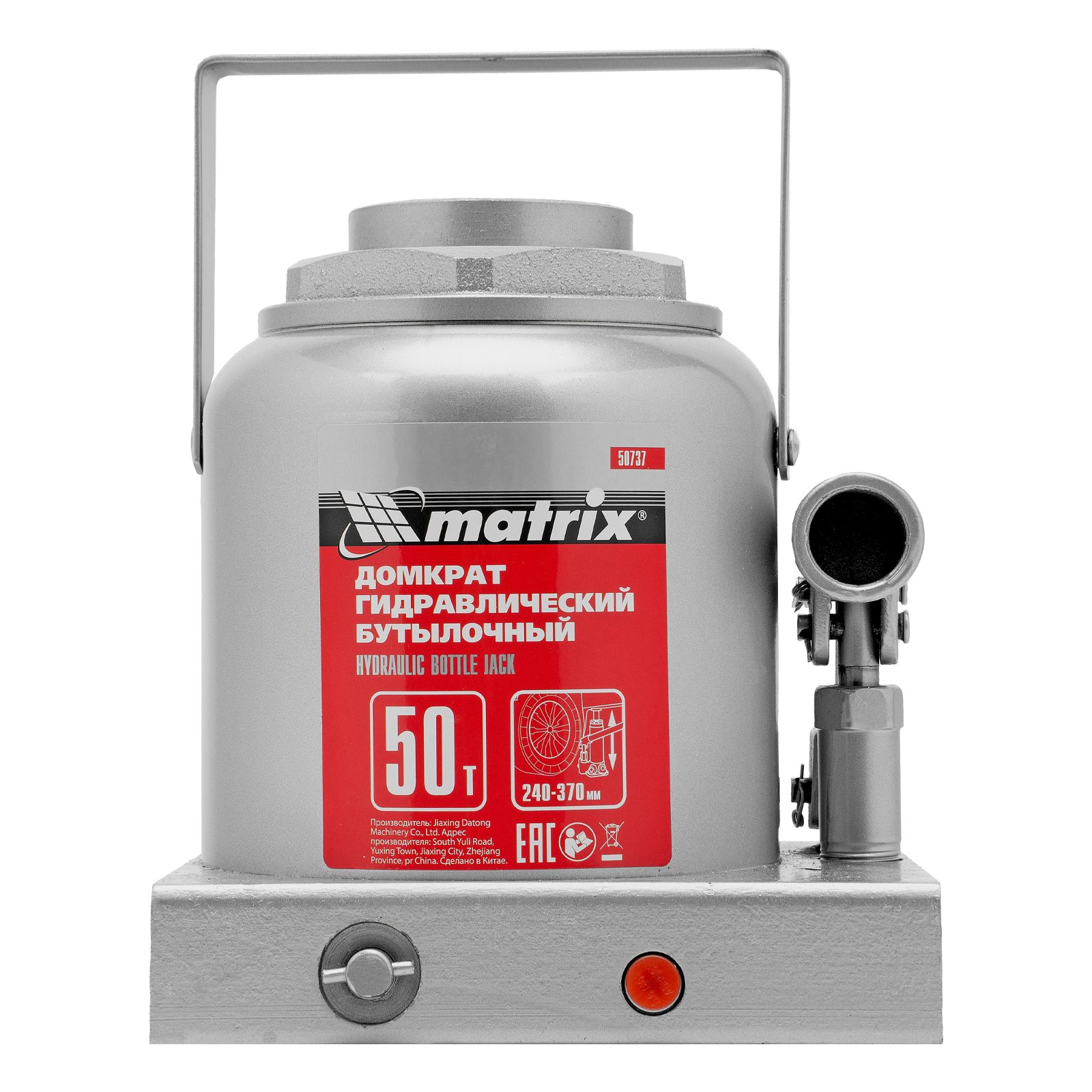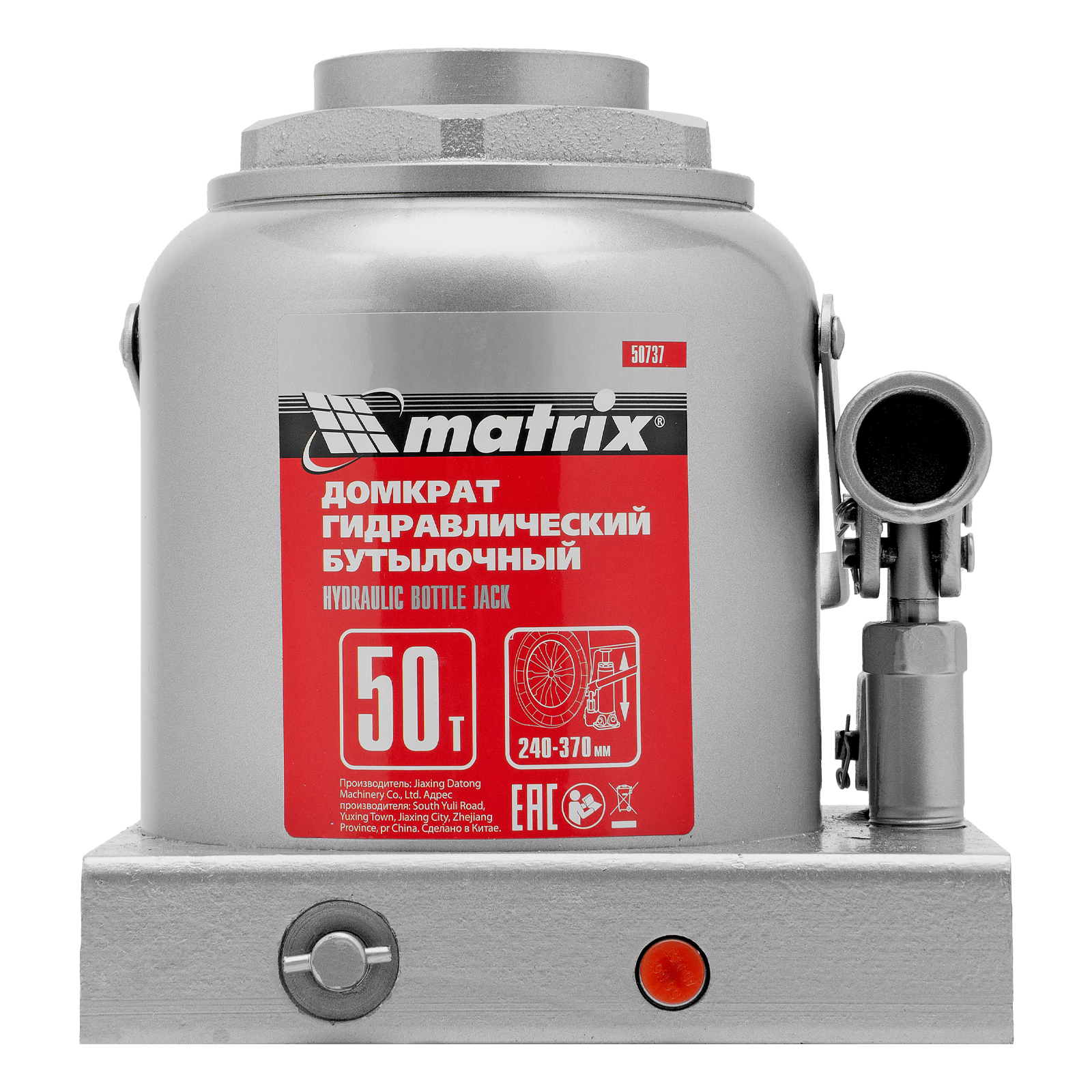 Домкрат гидравлический бутылочный, 50 т, высота подъема 240-370 мм Matrix в Краснодаре