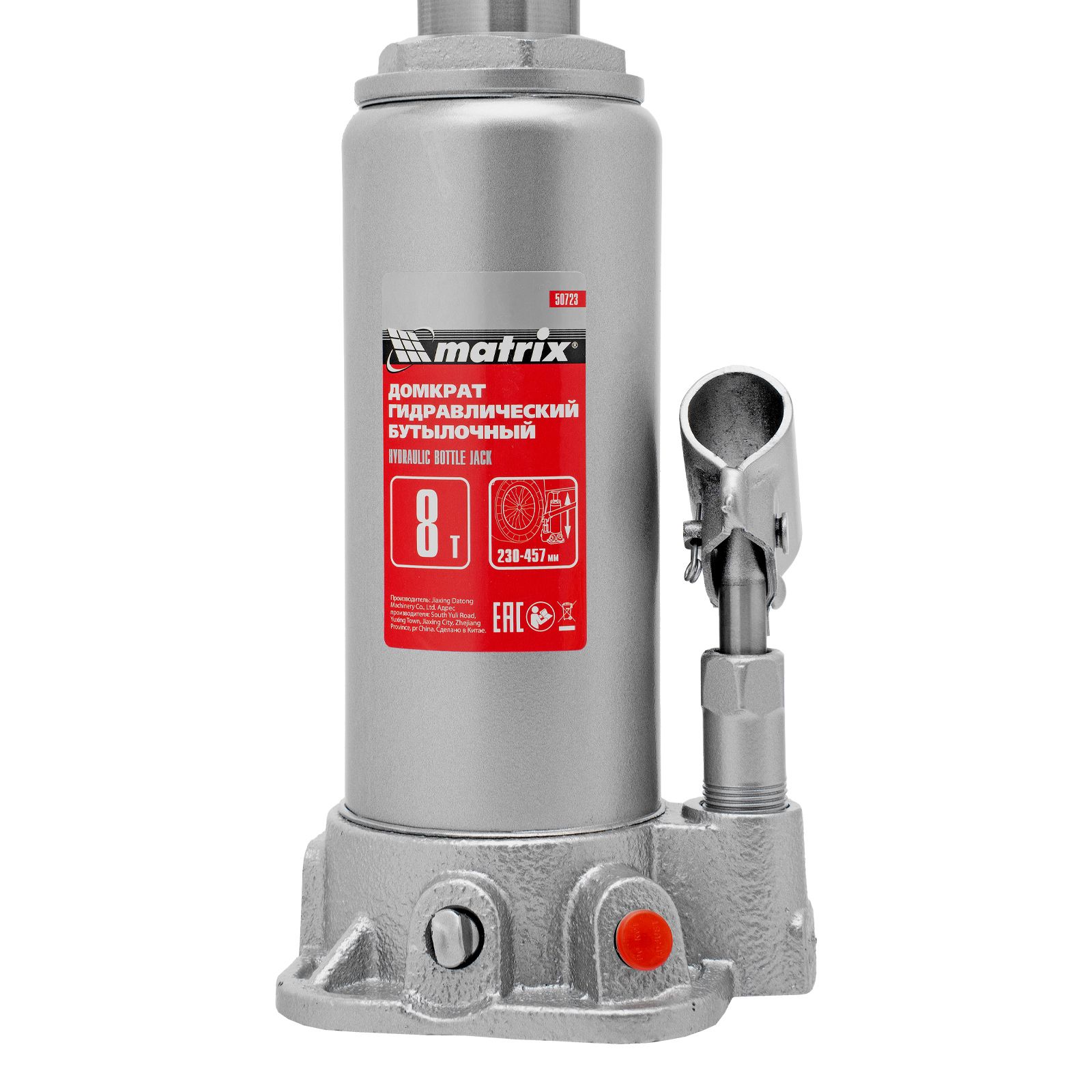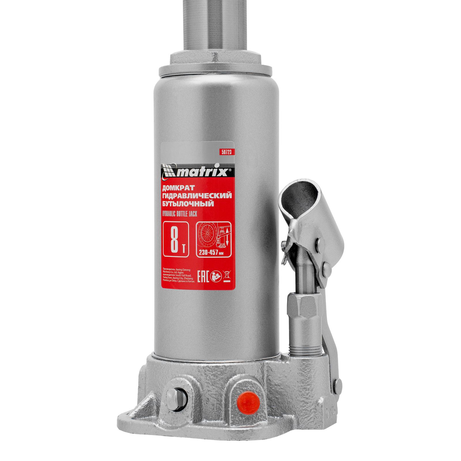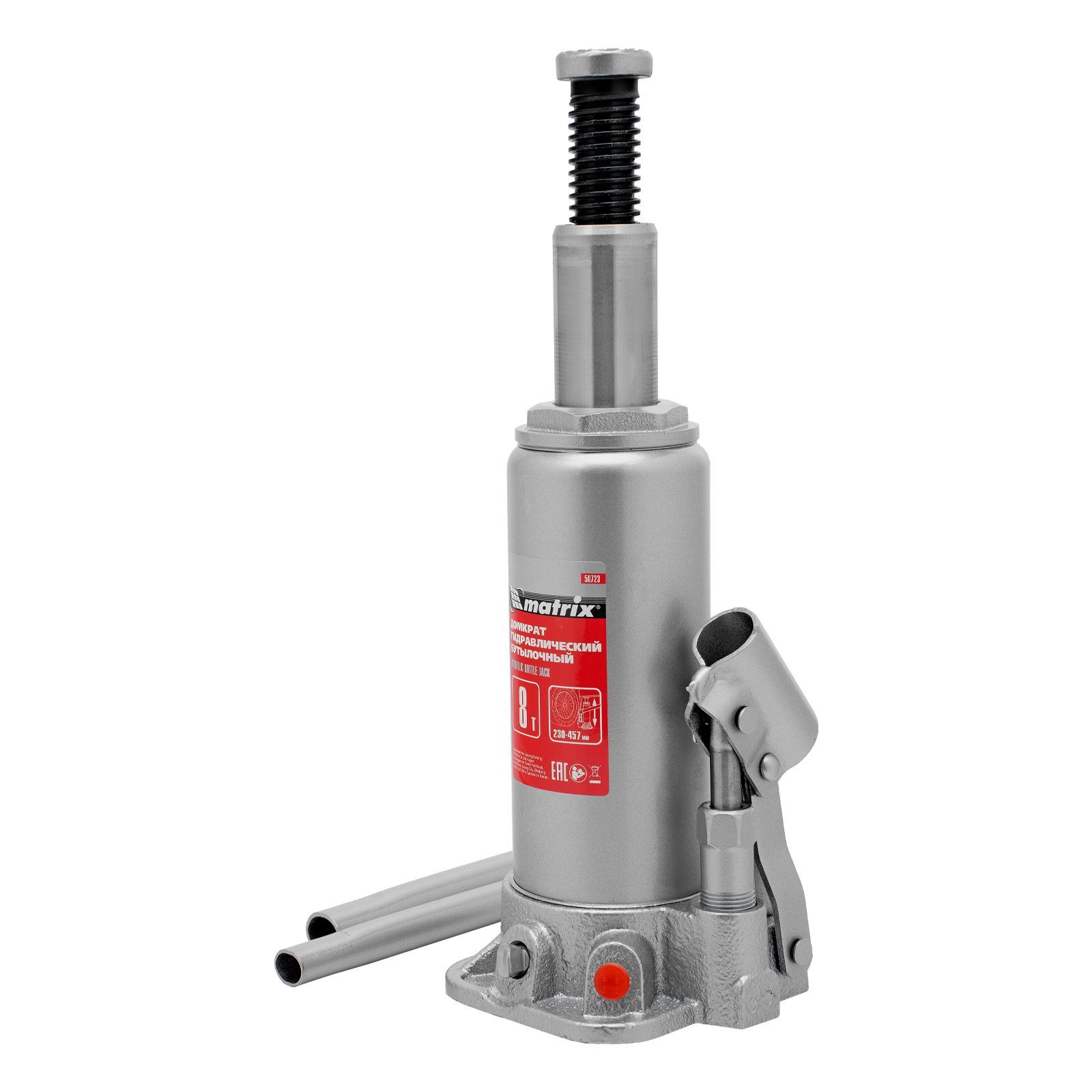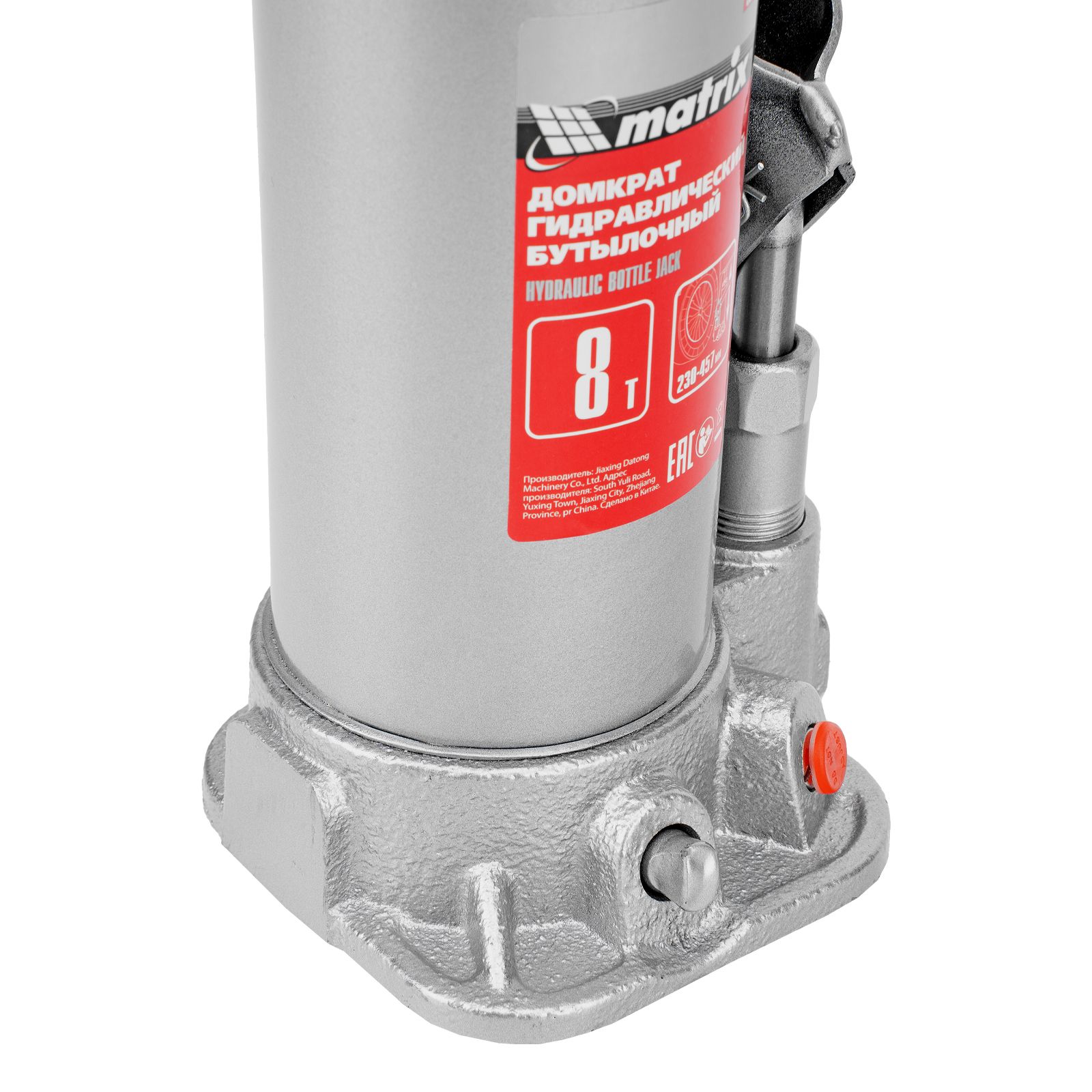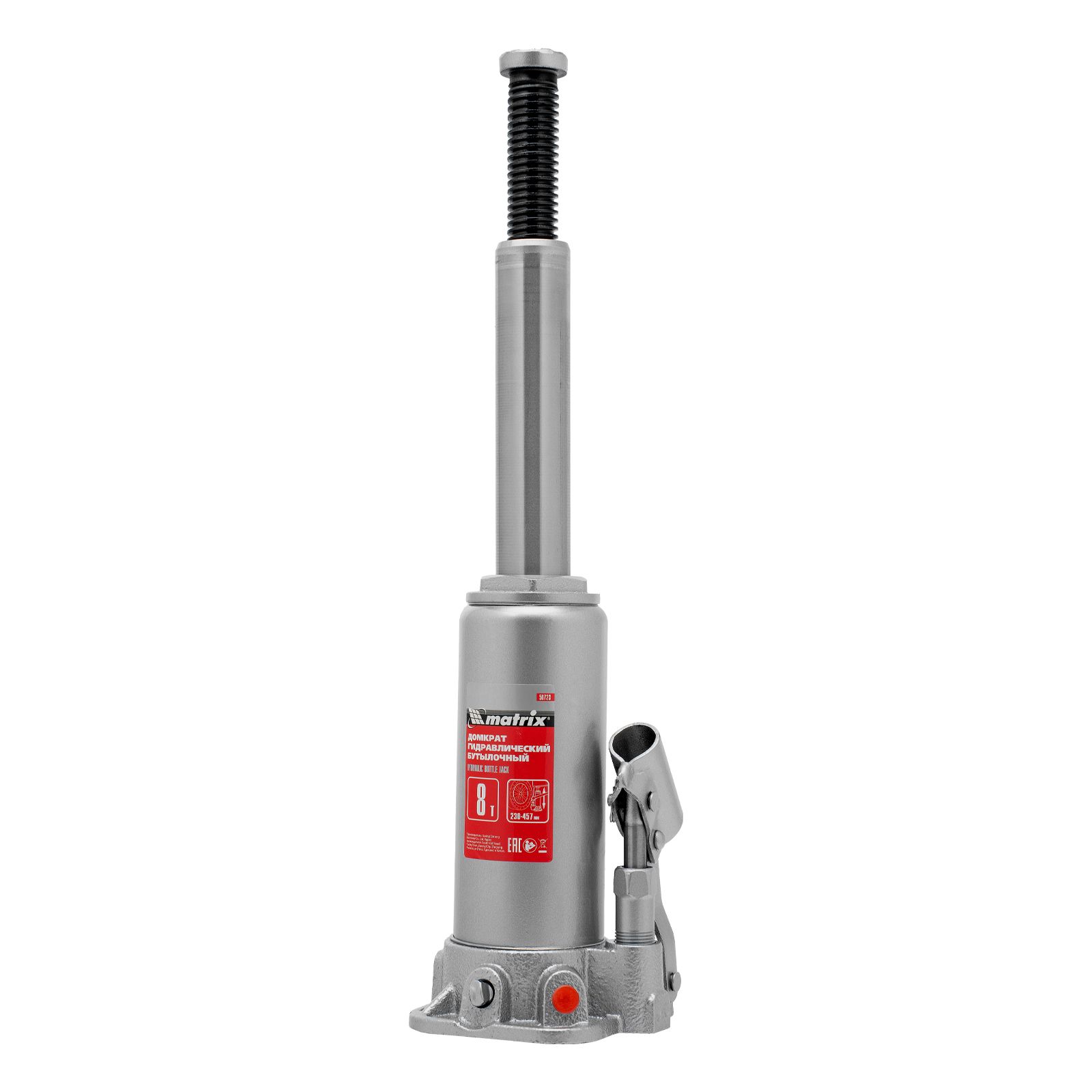 Домкрат гидравлический бутылочный, 8 т, высота подъема 230-457 мм Matrix