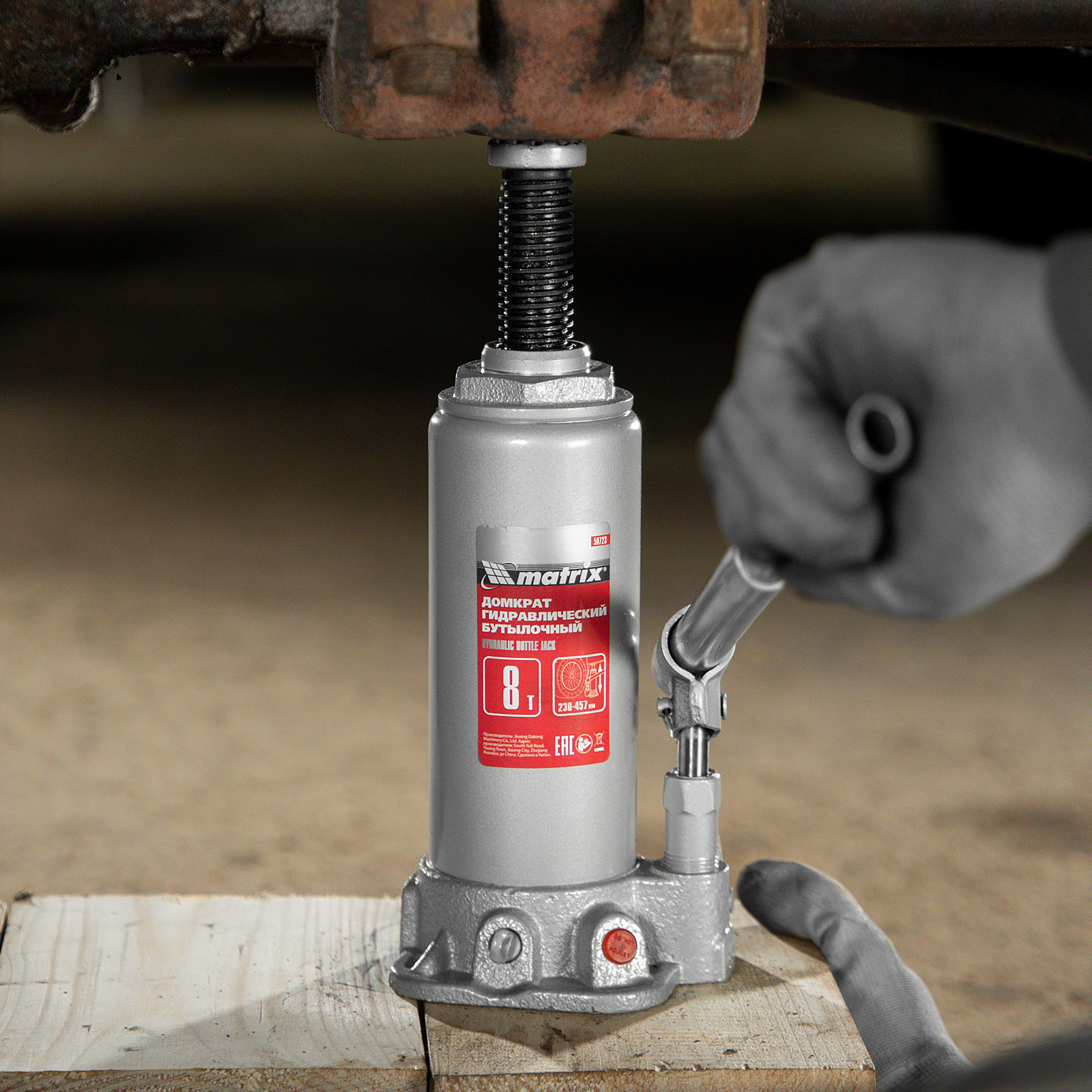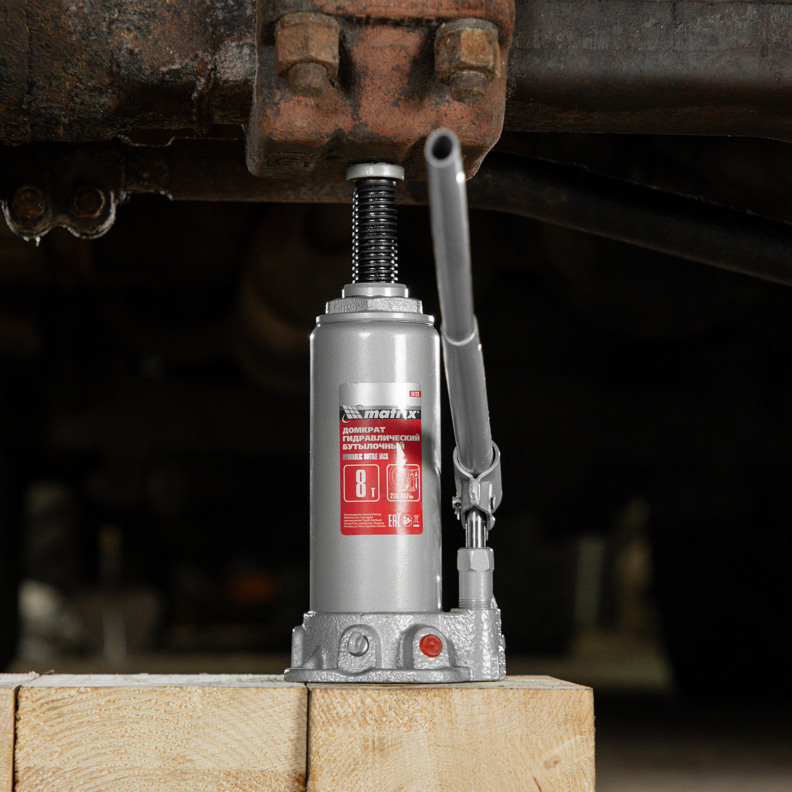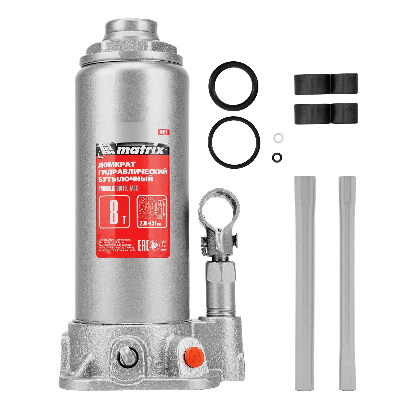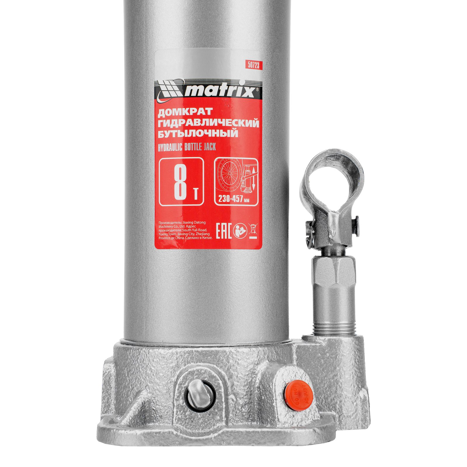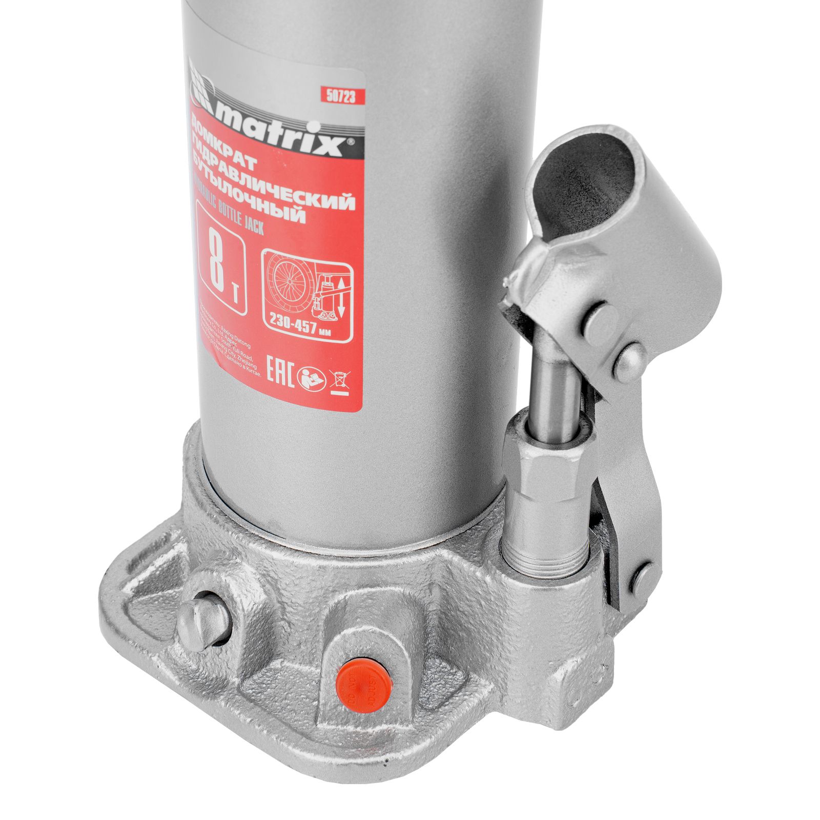 Домкрат гидравлический бутылочный, 8 т, высота подъема 230-457 мм Matrix