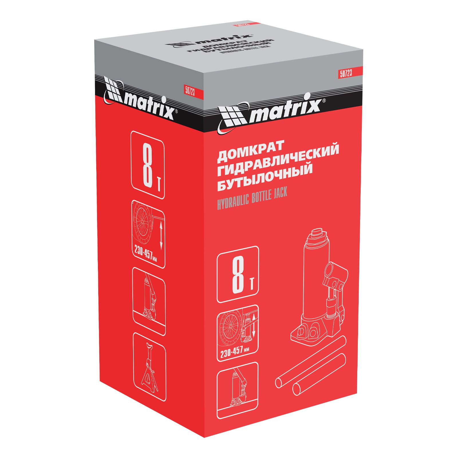 Домкрат гидравлический бутылочный Matrix 50723 используется для поднятия грузов массой до 8 т на высоту 230-457 мм. Подходит для автомобилей с высоким клиренсом. Домкрат будет полезен автолюбителям в гараже и дороге, а также сотрудникам СТО.