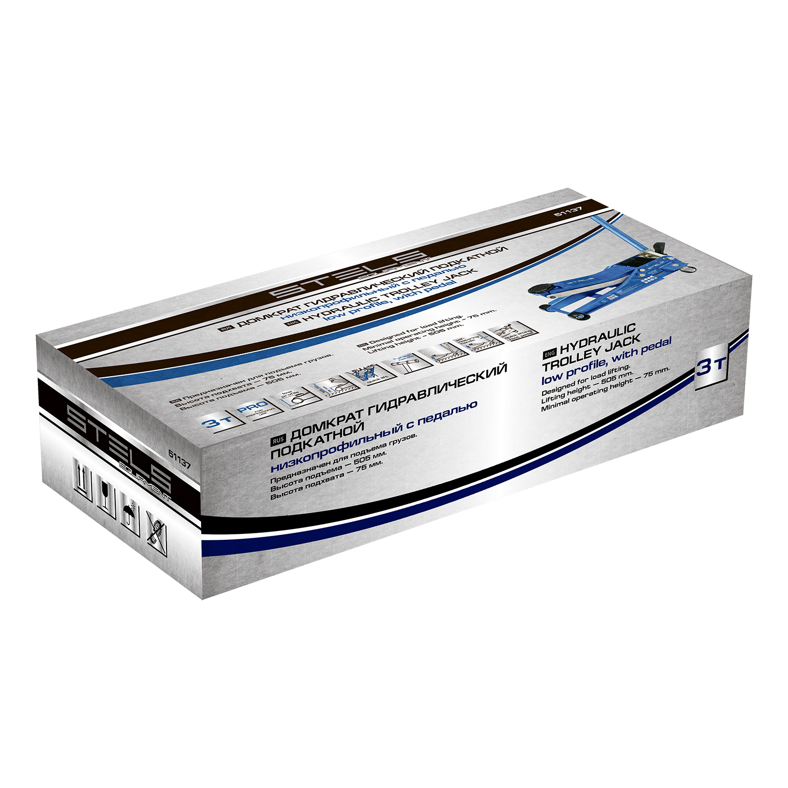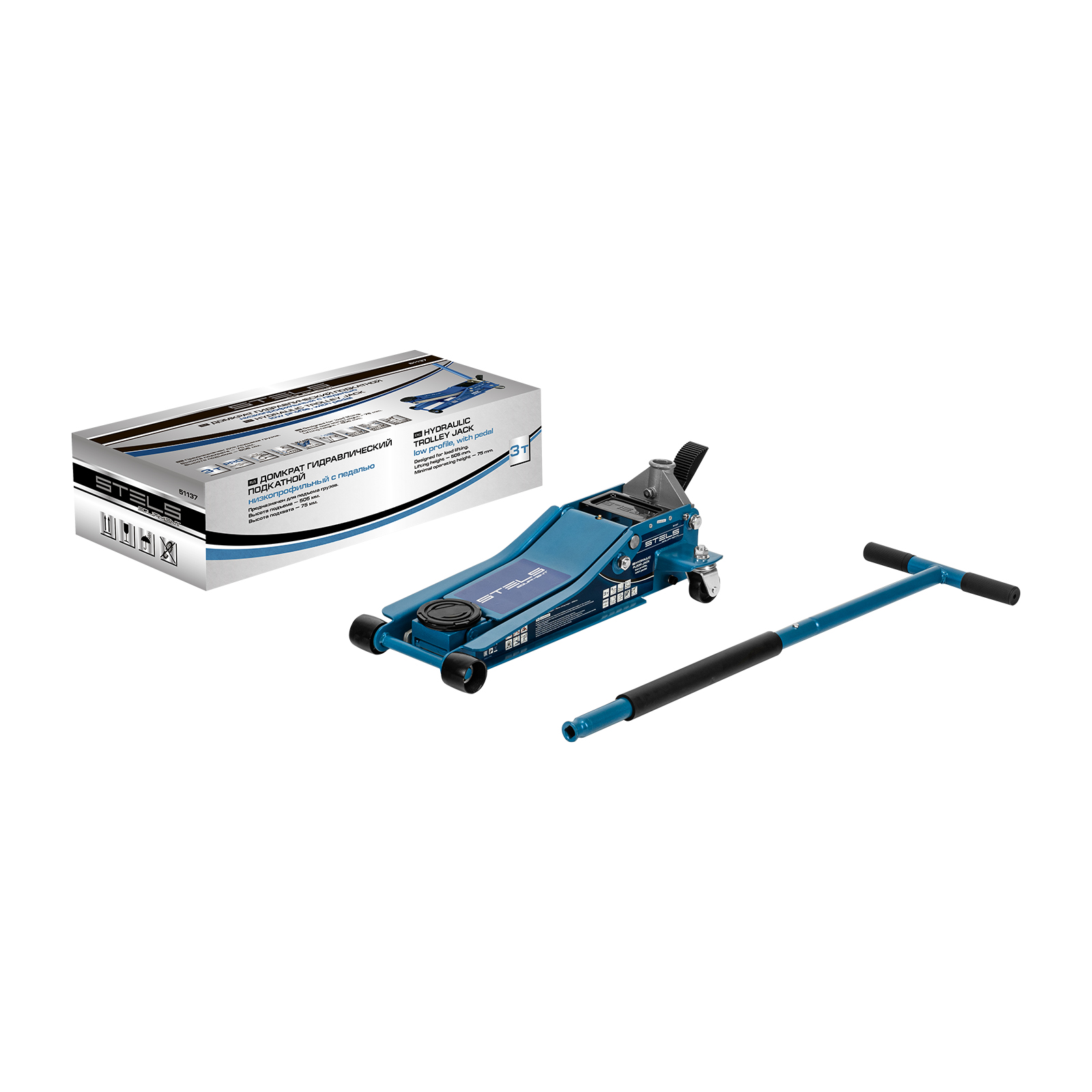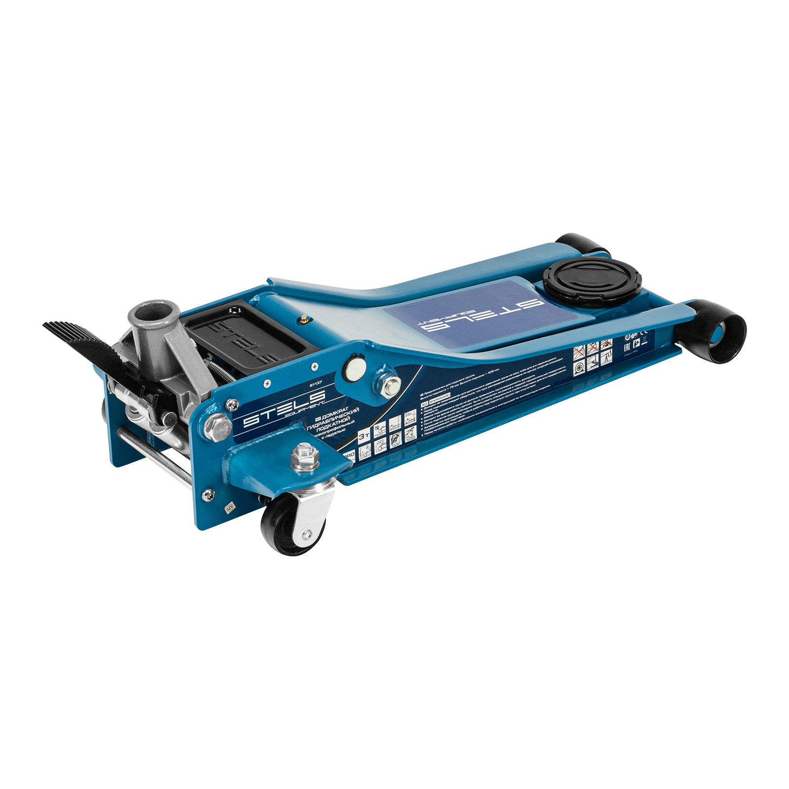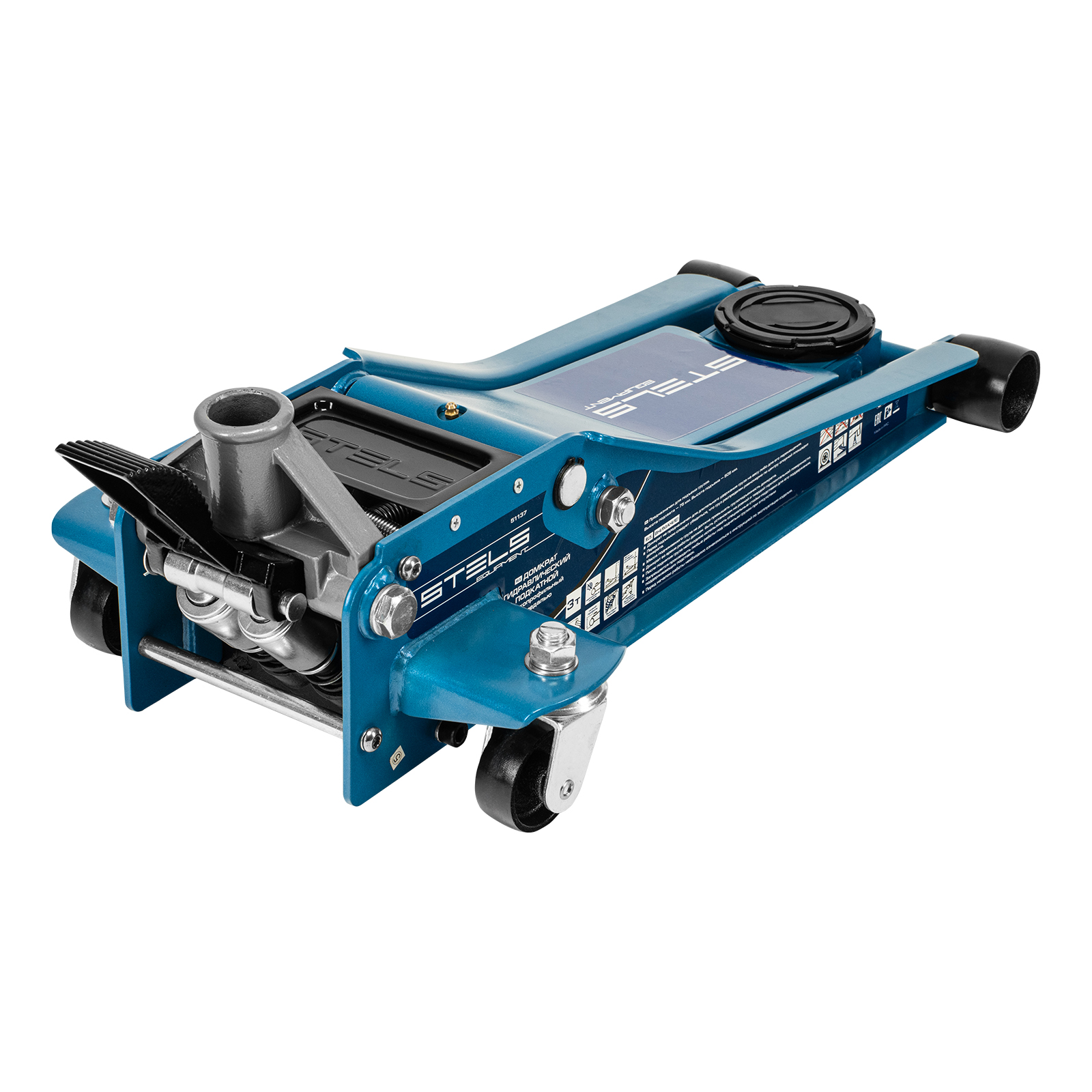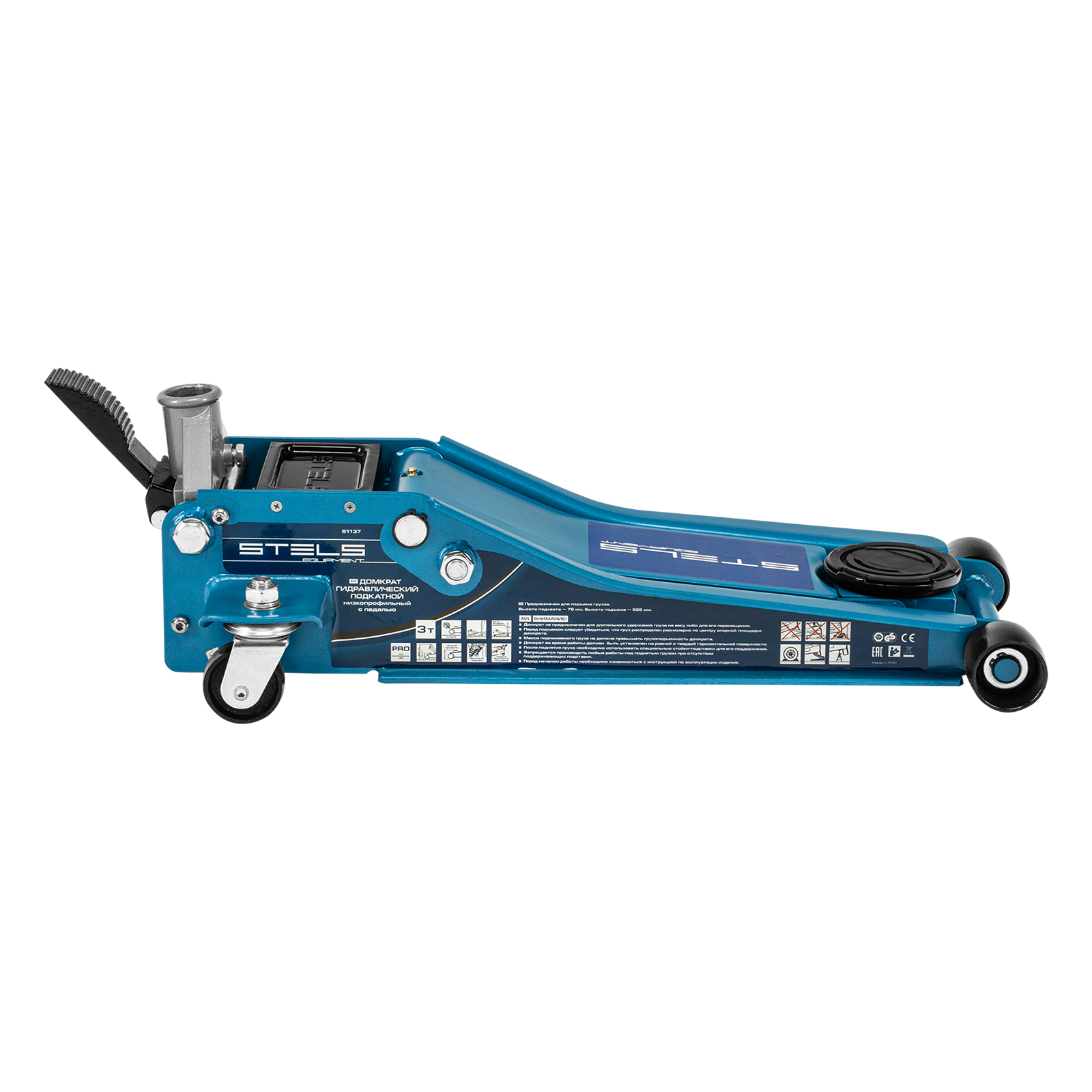 Гидравлический подкатной домкрат Stels QUICK LIFT 51137 с педалью и функцией быстрого подъема на высоту с 75 до 505 мм — эксклюзивная модель, разработанная для профессионального применения. Обладает сверхнизким подхватом 75 мм и поднимает груз до 3 тонн на высоту до 505 мм. Домкрат оснащен педалью, позволяющей быстро подвести опорную площадку к кузову автомашины. Система QUICK LIFT ускоряет поднятие автомобиля, а усиленная конструкция и инновационная система закрытия клапана в несколько раз повышают ресурс домкрата.