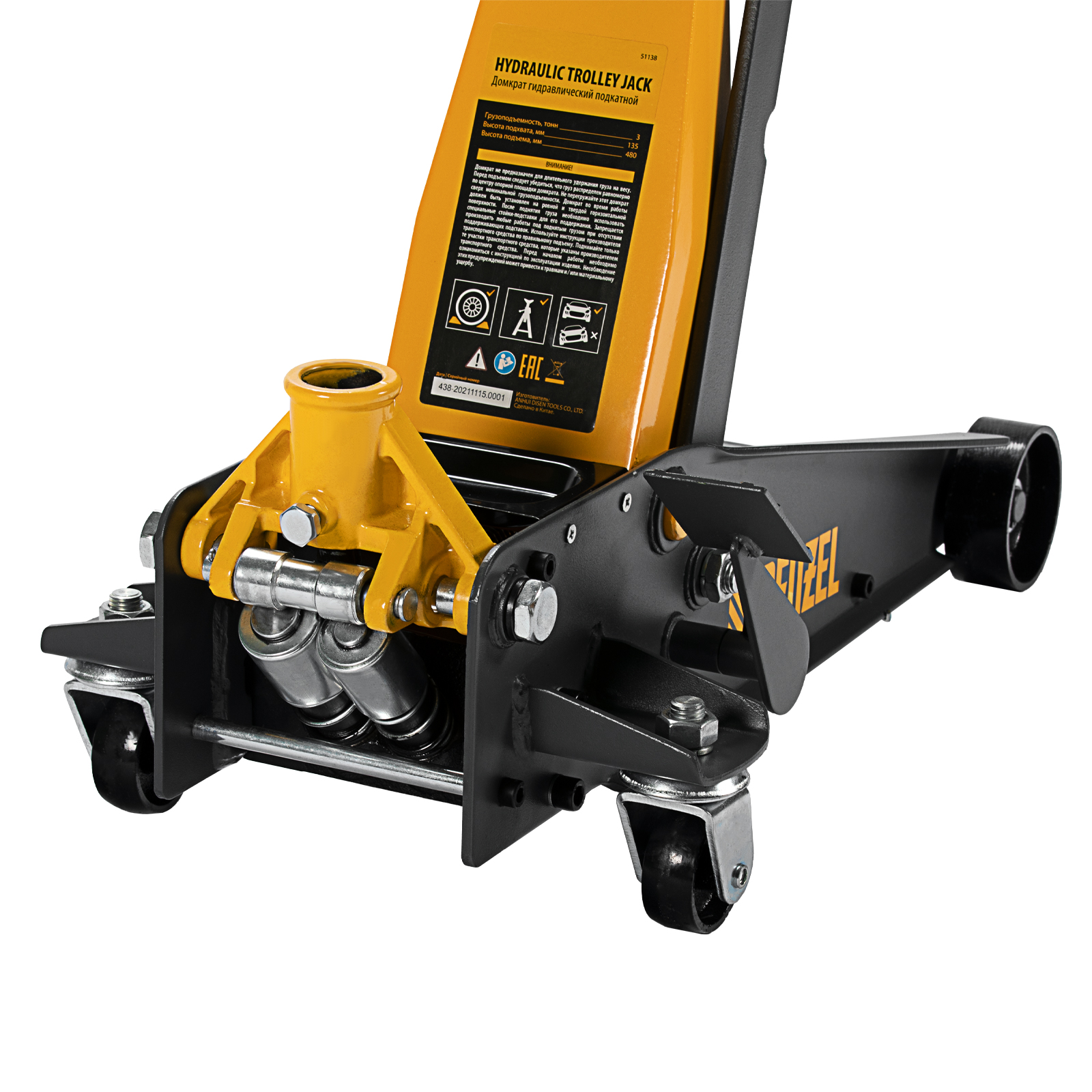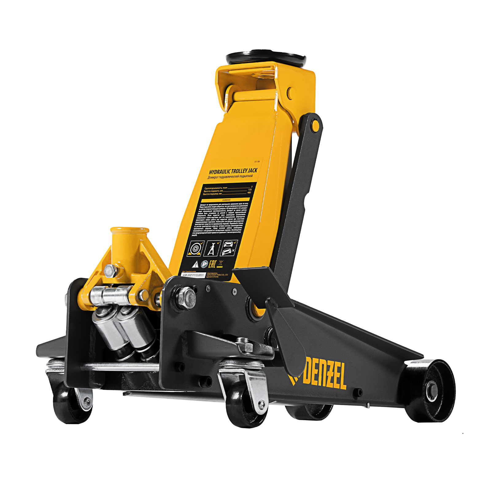 Домкрат гидравлический подкатной 3 т, с фиксатором, быстрый подъем, 135-480 мм, профессиональный Denzel в Краснодаре