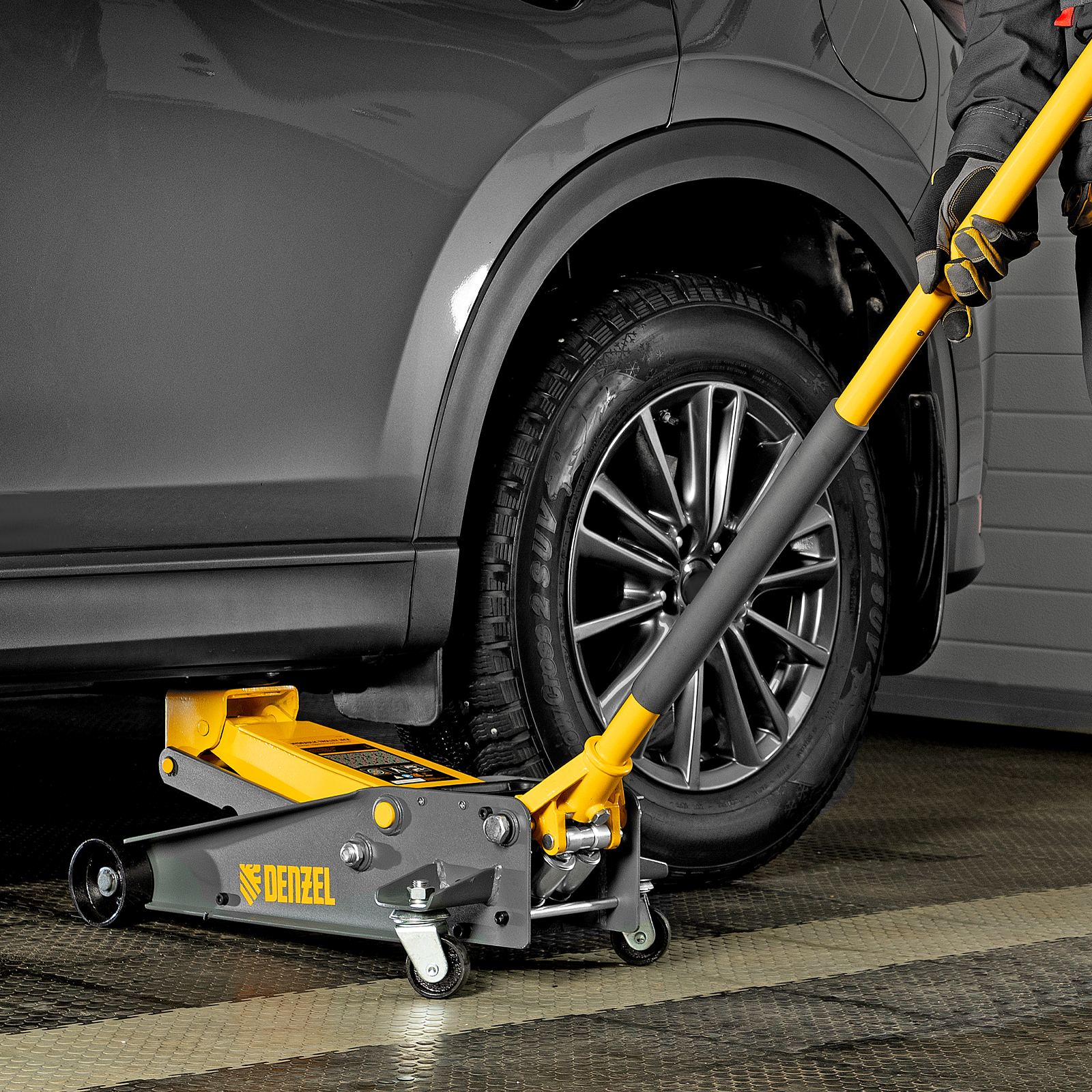 Профессиональный подкатной гидравлический домкрат Denzel 51138 с фиксатором позволяет быстро и плавно поднимать грузы массой до 3 т на высоту 135-480 мм. Подходит всех типов автомобилей со стандартным клиренсом. Предназначен для использования на станциях техобслуживания и шиномонтажа.