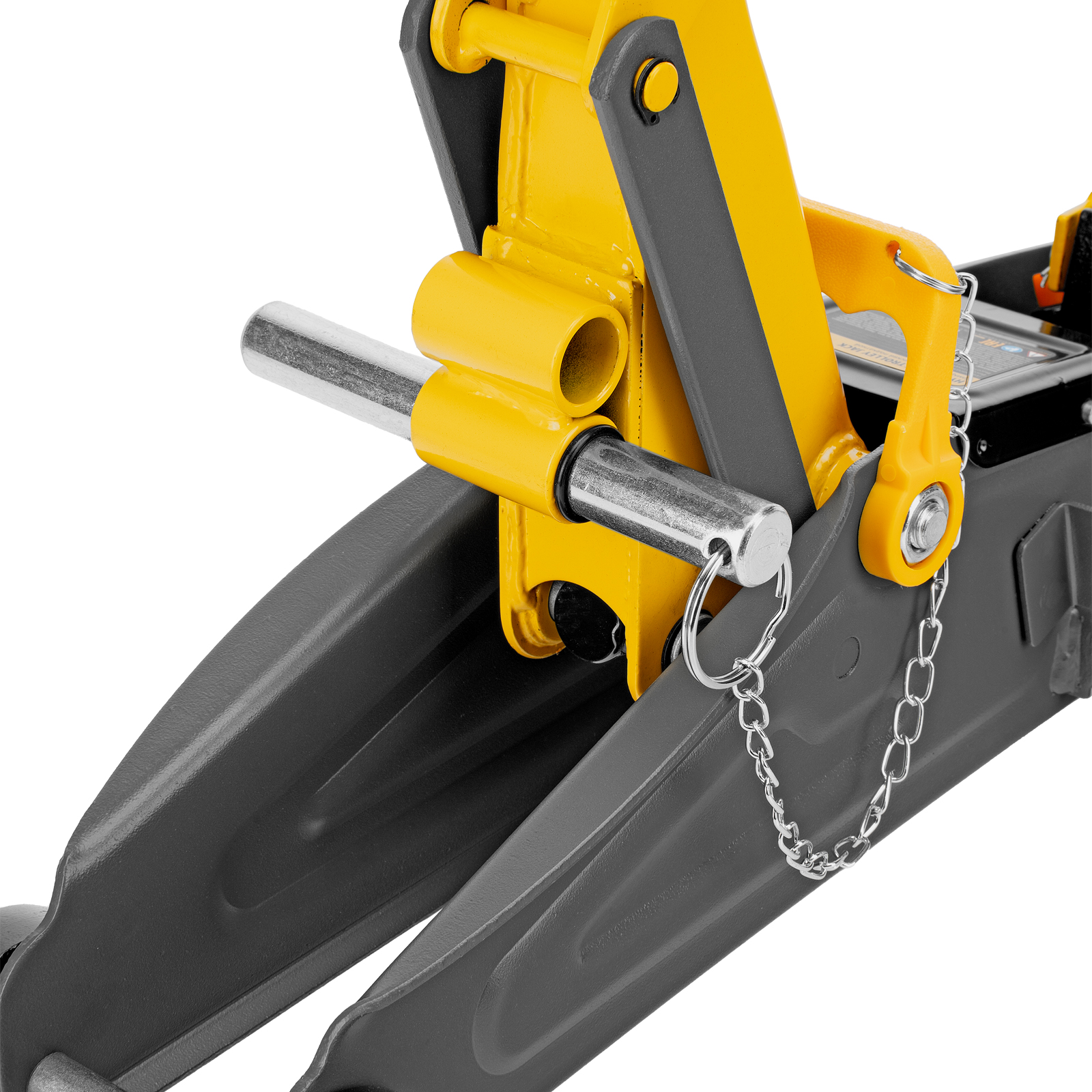 Гидравлический подкатной домкрат с фиксатором Denzel 51153, с высотой подхвата 130 мм, предназначен для плавного подъема грузов массой до 2 т на высоту до 330 мм. Страховочный штифт позволяет фиксировать подъемный рычаг на высоте 260 и 300 мм для безопасной работы. Домкрат пригодится владельцам легковых автомобилей со стандартным клиренсом.