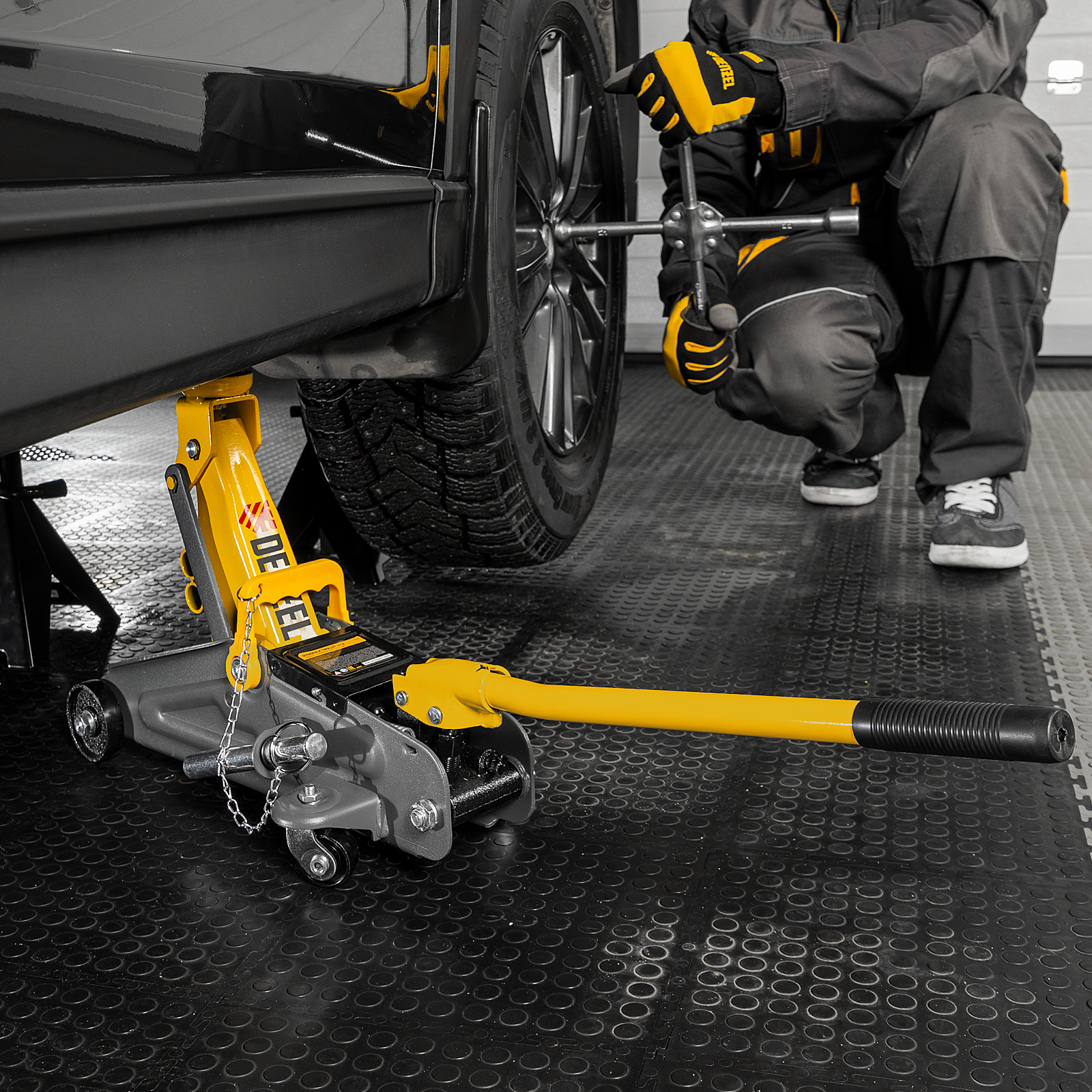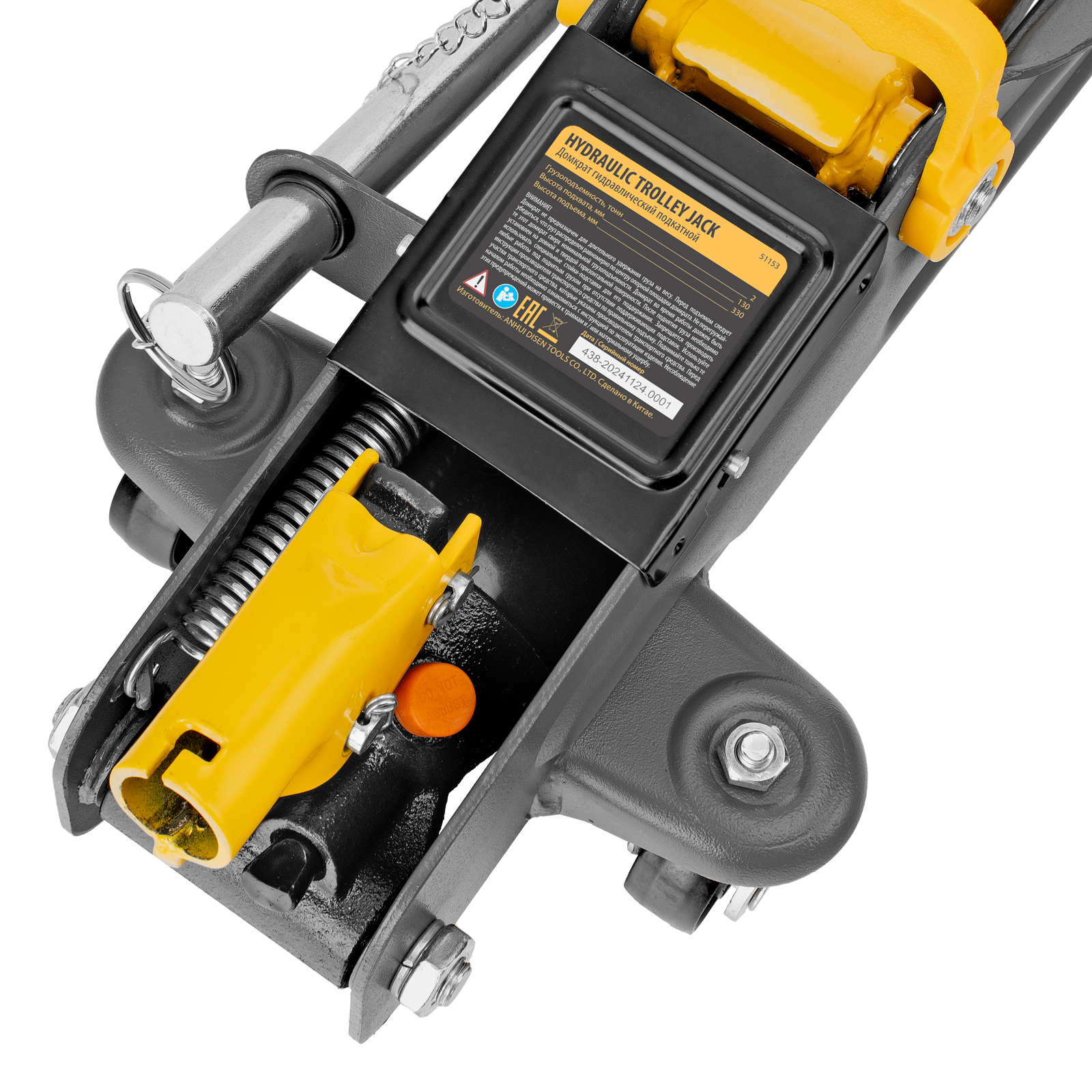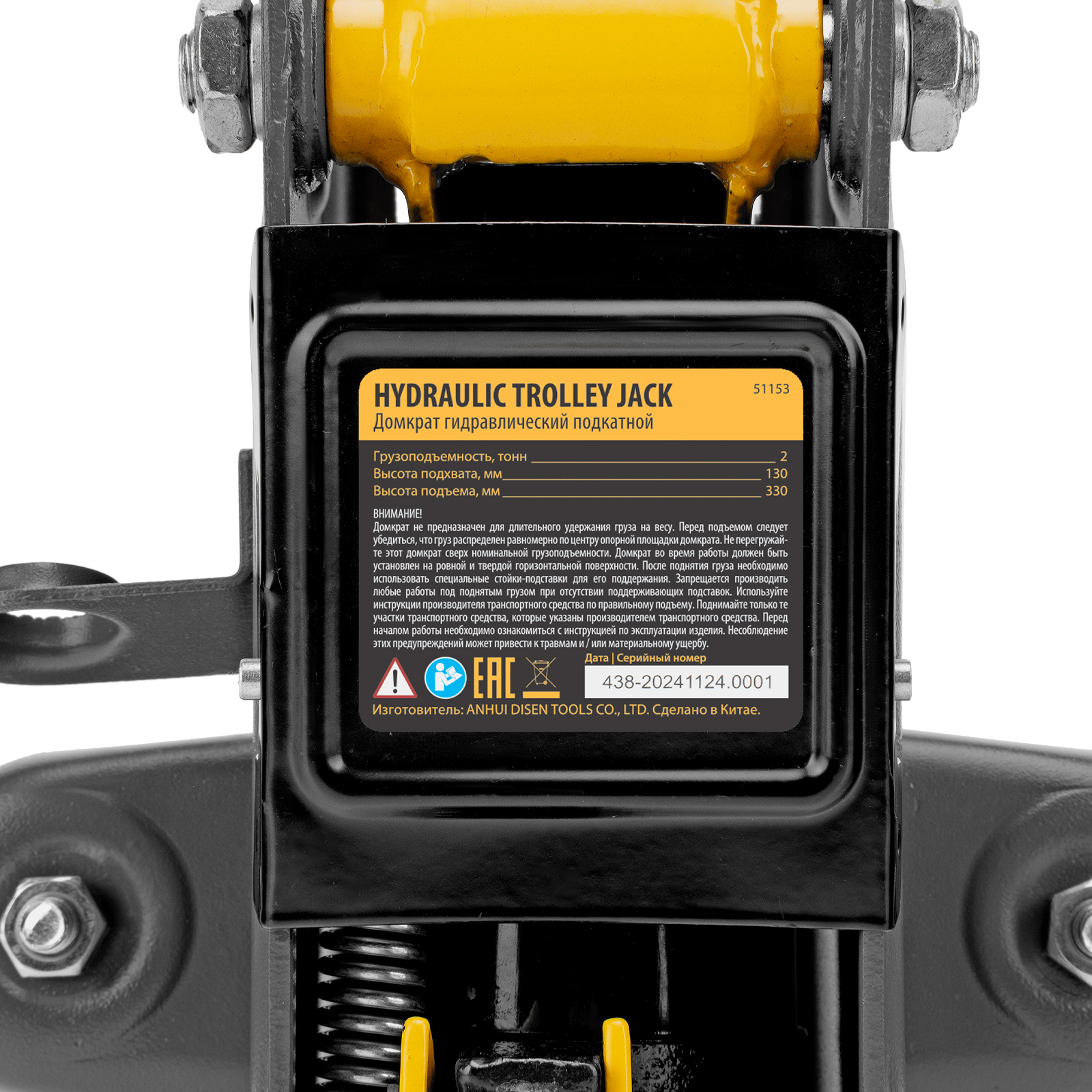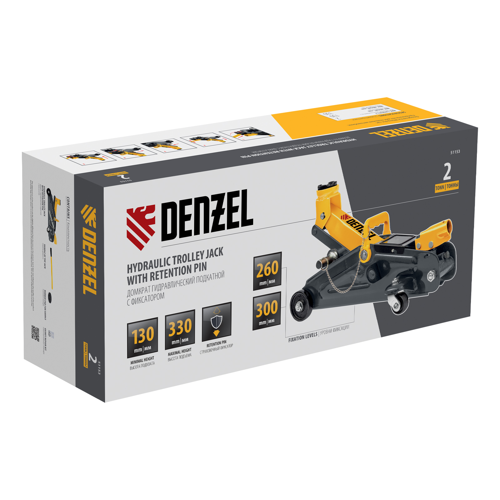 Домкрат гидравлический подкатной с фиксатором, 2 т, 130-330 мм Denzel в Краснодаре