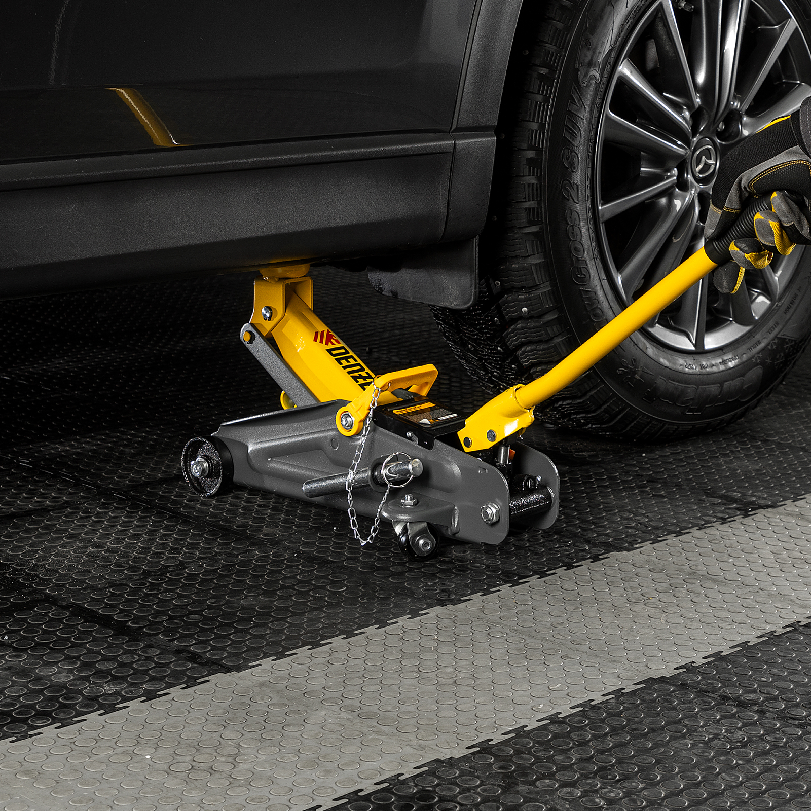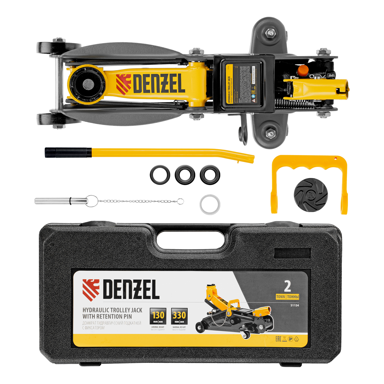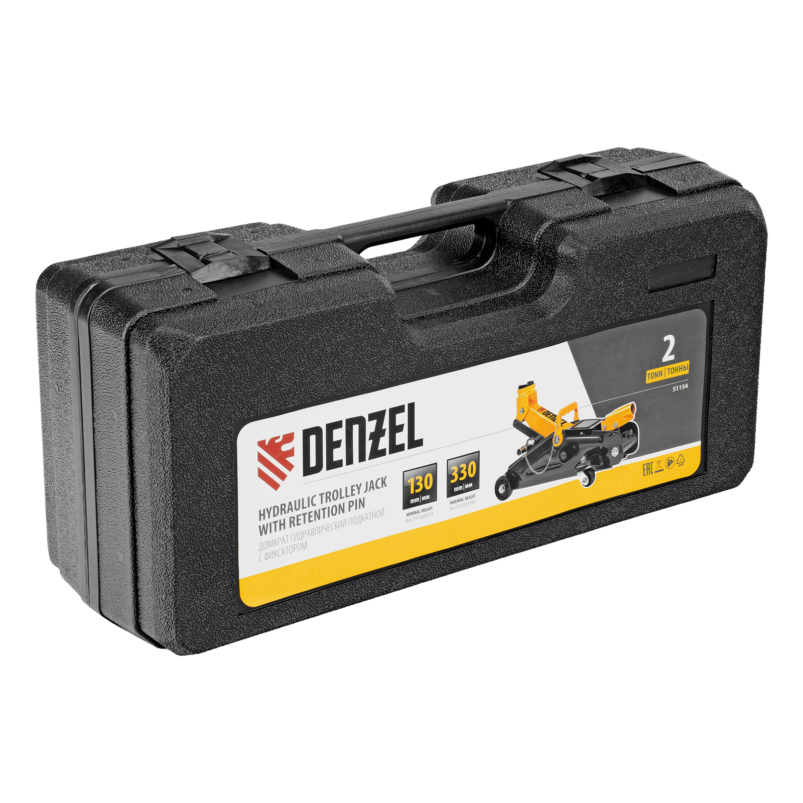 Домкрат гидравлический подкатной с фиксатором, 2 т, 130-330 мм, в кейсе Denzel в Краснодаре