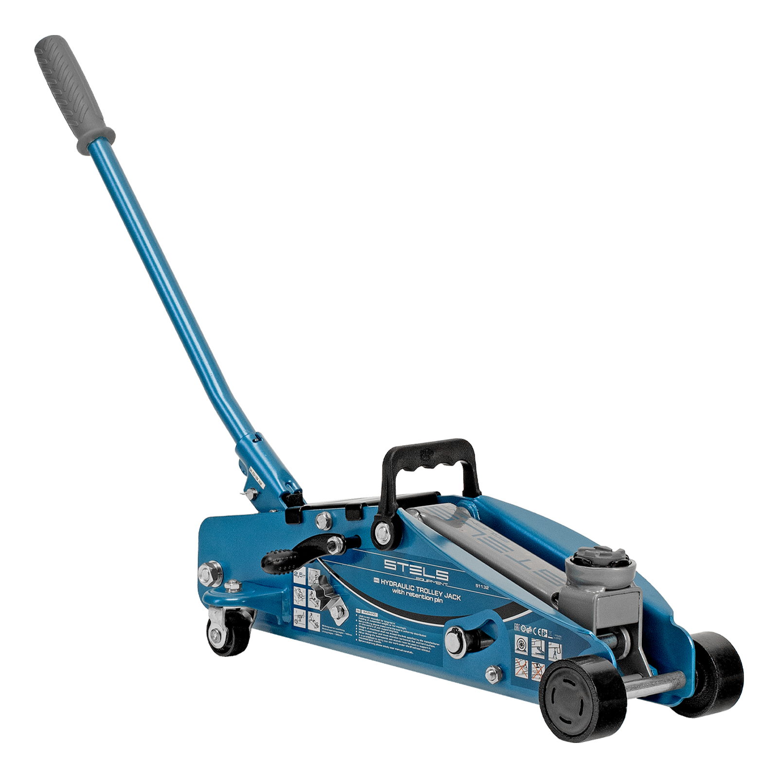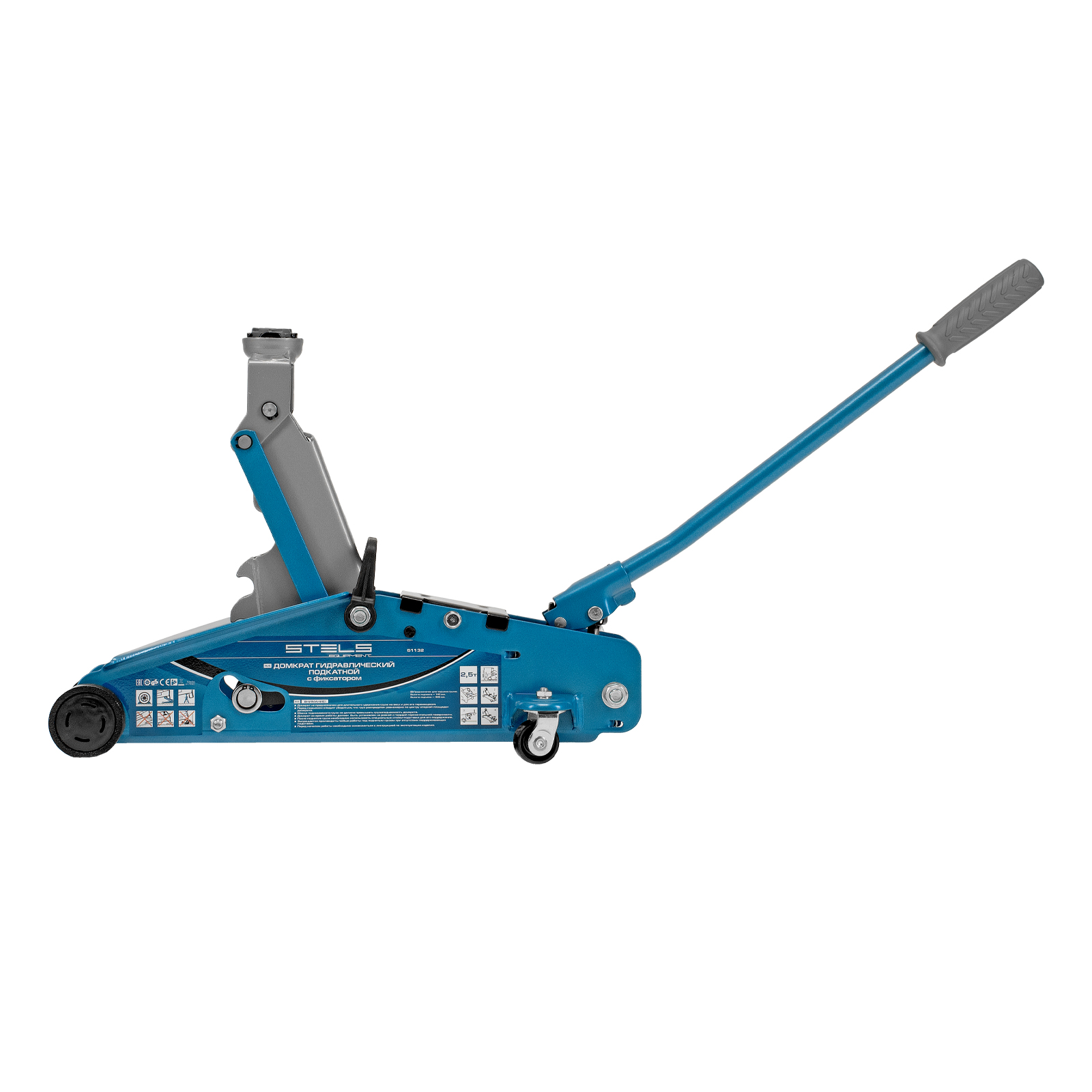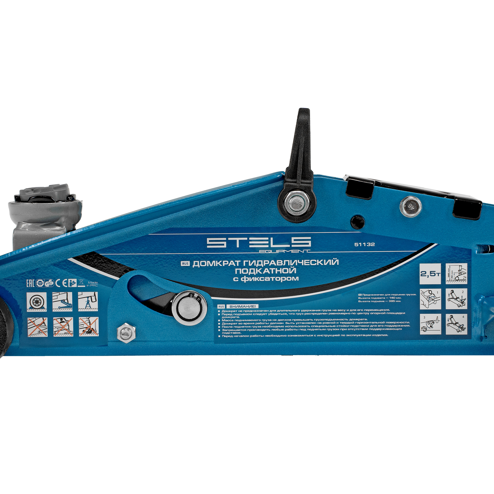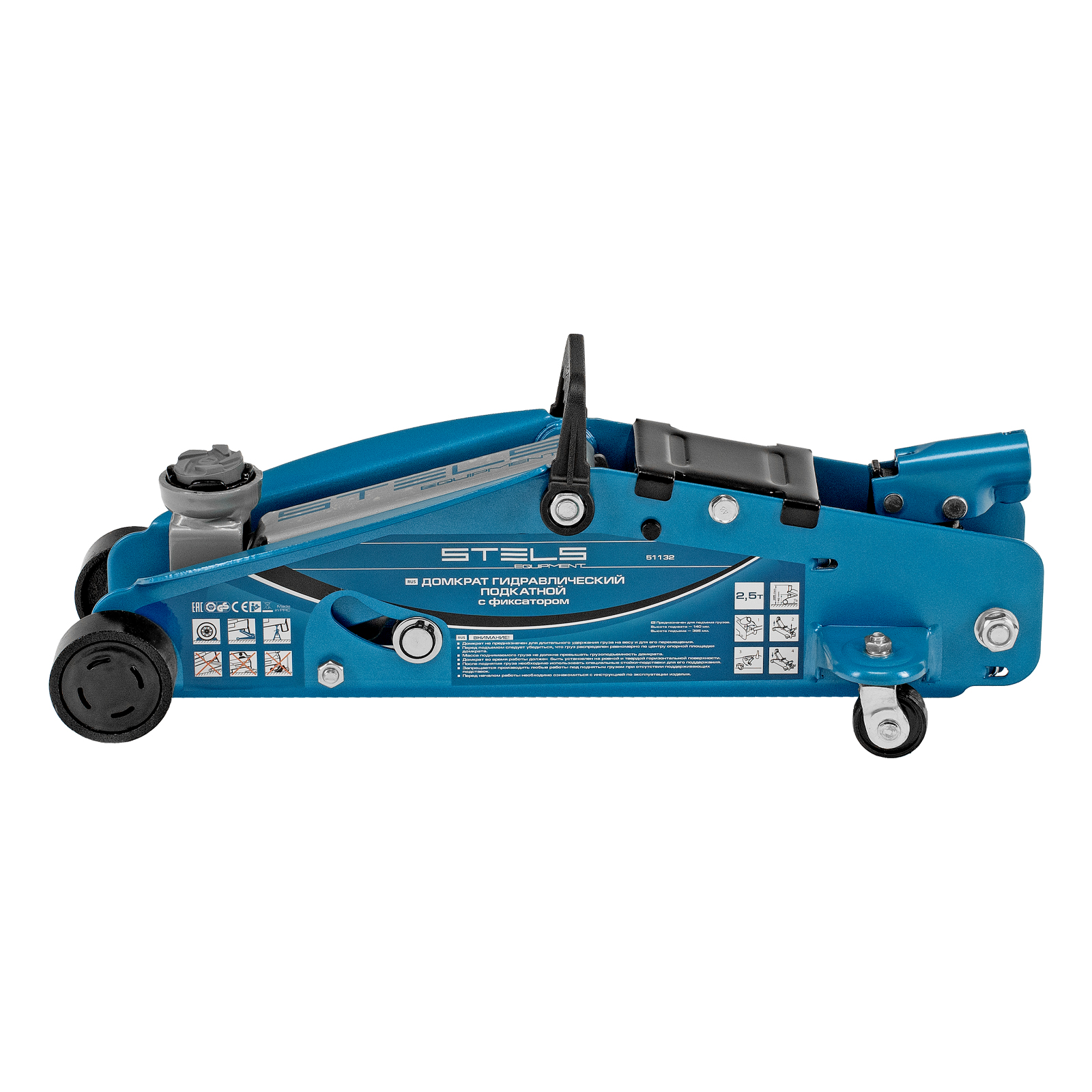 Подкатной гидравлический домкрат Stels Safety Pin 51132 с фиксатором, с высотой подхвата 140 мм, поставляющийся в кейсе, позволяет поднимать грузы весом до 2,5 т на высоту 385 мм. Используется для обслуживания автомобилей со стандартным дорожным просветом. Домкрат подходит для самостоятельного обслуживания авто.