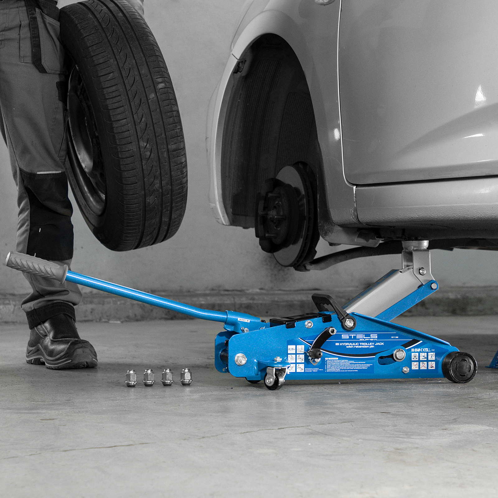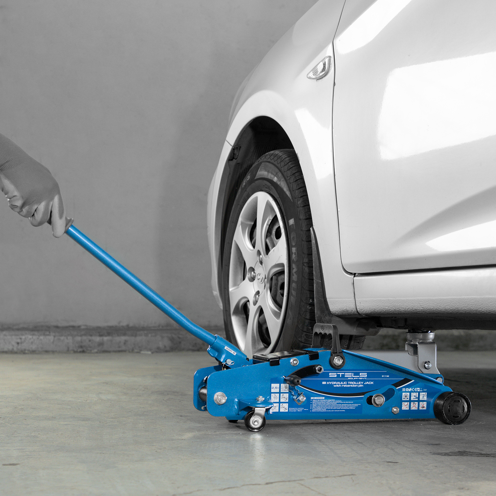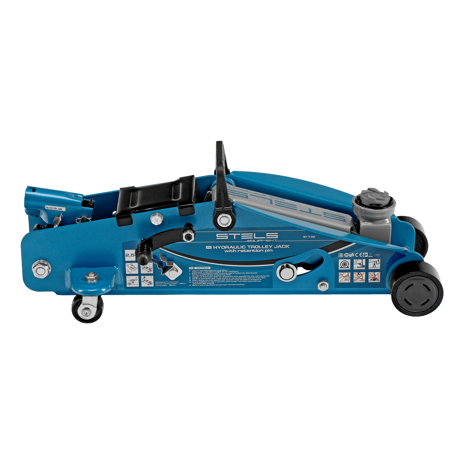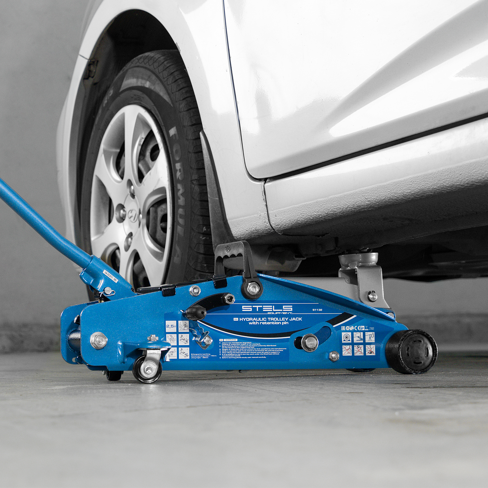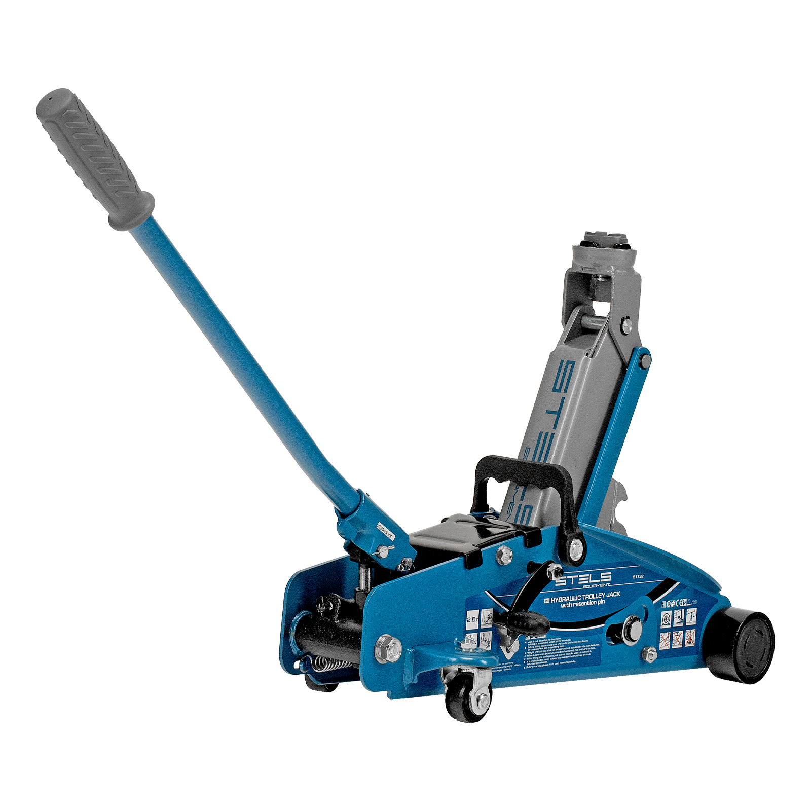 Подкатной гидравлический домкрат Stels Safety Pin 51132 с фиксатором, с высотой подхвата 140 мм, поставляющийся в кейсе, позволяет поднимать грузы весом до 2,5 т на высоту 385 мм. Используется для обслуживания автомобилей со стандартным дорожным просветом. Домкрат подходит для самостоятельного обслуживания авто.