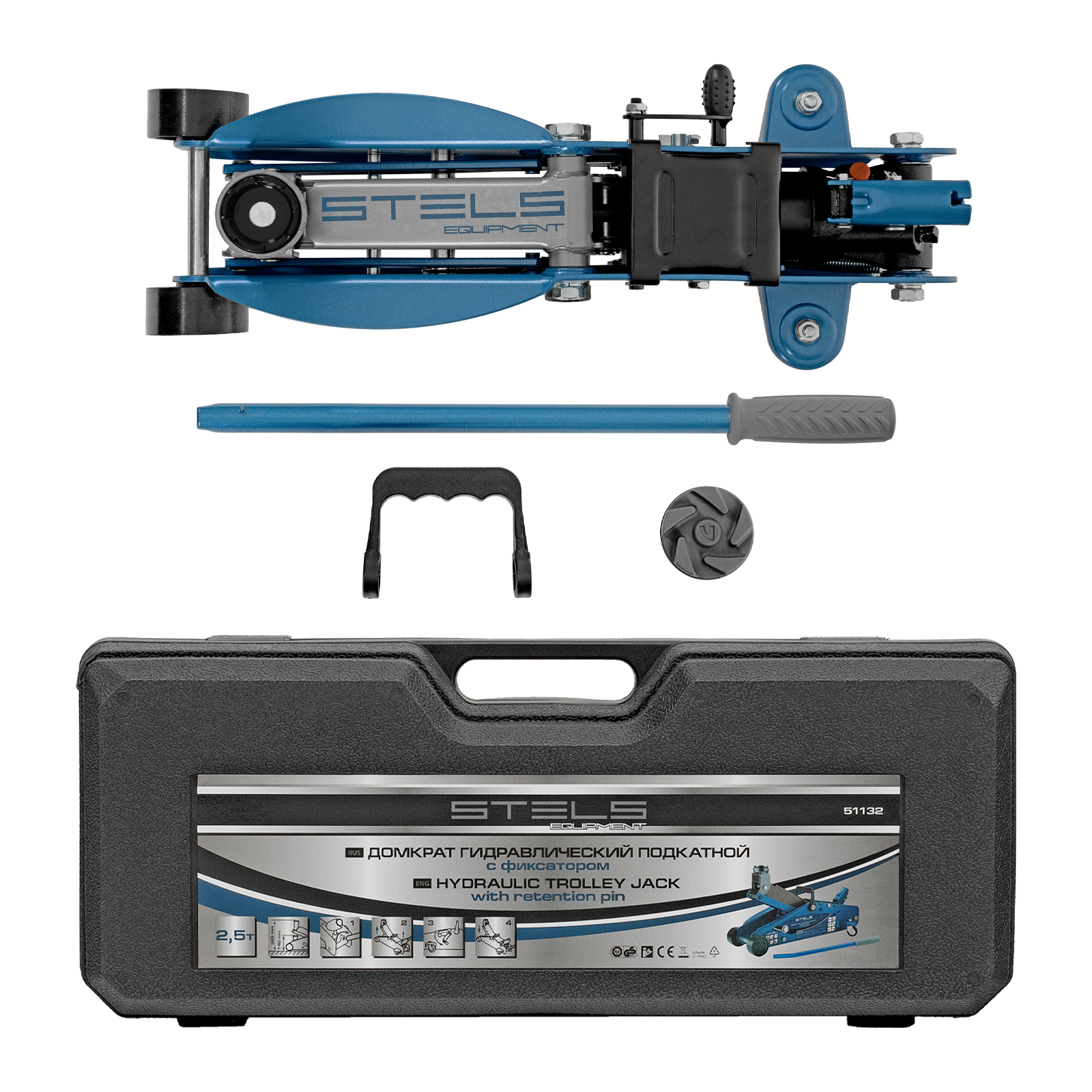 Домкрат - 1 штРукоятка - 1 штРезиновая опора - 1 штРуководство по эксплуатации - 1 штПластиковый кейс - 1 шт |