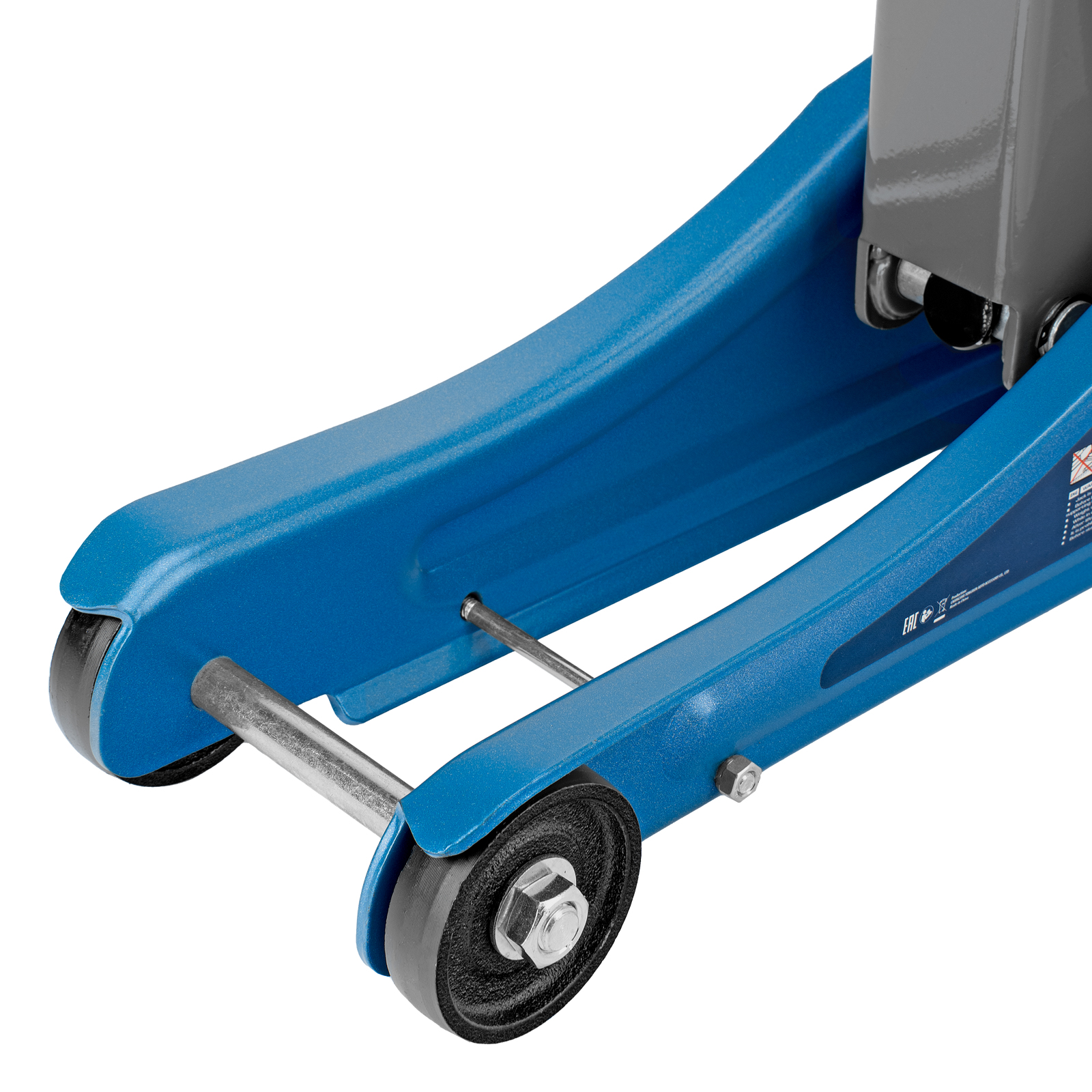 - Маневренность — благодаря поворотным колесам домкрат можно быстро подвести под груз.