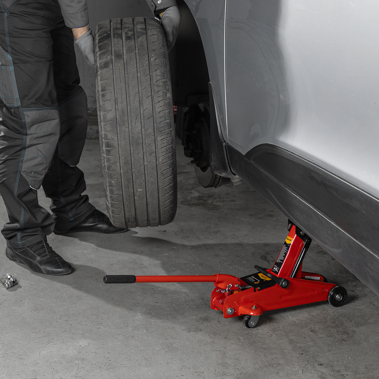 - Вес 7,5 кг — домкрат выдерживает максимальную нагрузку без риска поломки и легко помещается в багажнике автомобиля.
