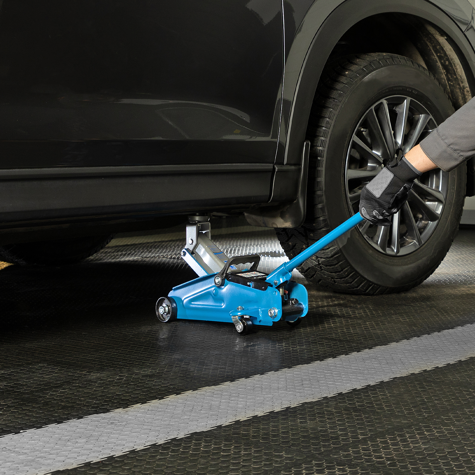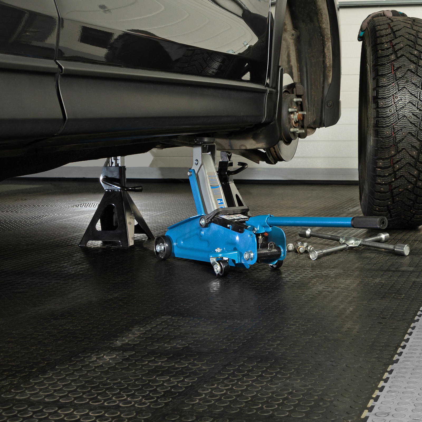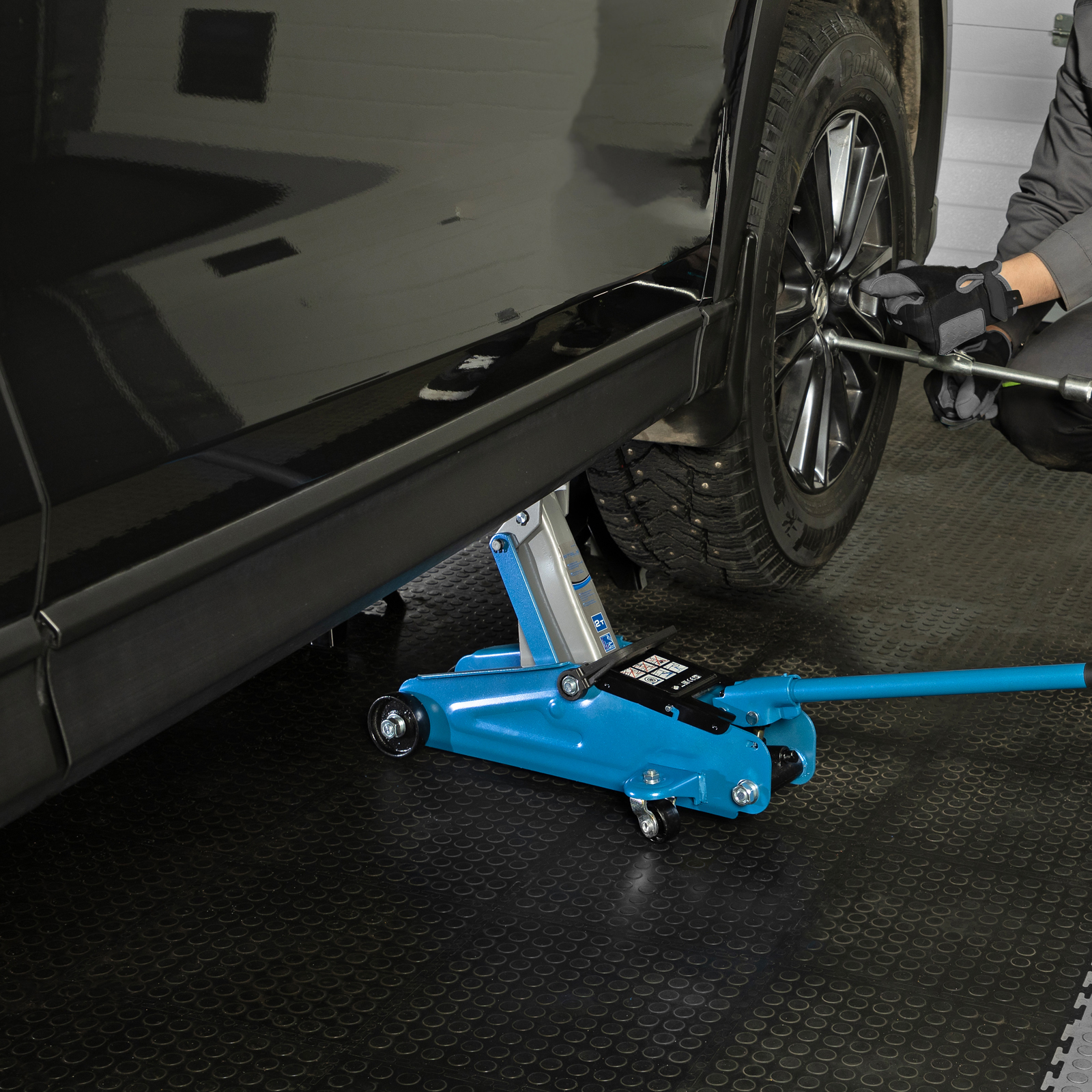 - Маневренность — благодаря поворотным колесам домкрат можно быстро подвести под груз.