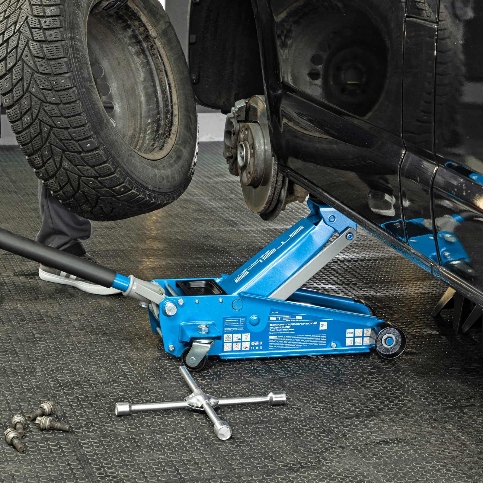 - Аккуратная работа — резиновая опора и прорезиненная рукоятка защищают кузов и днище автомобиля от повреждений.