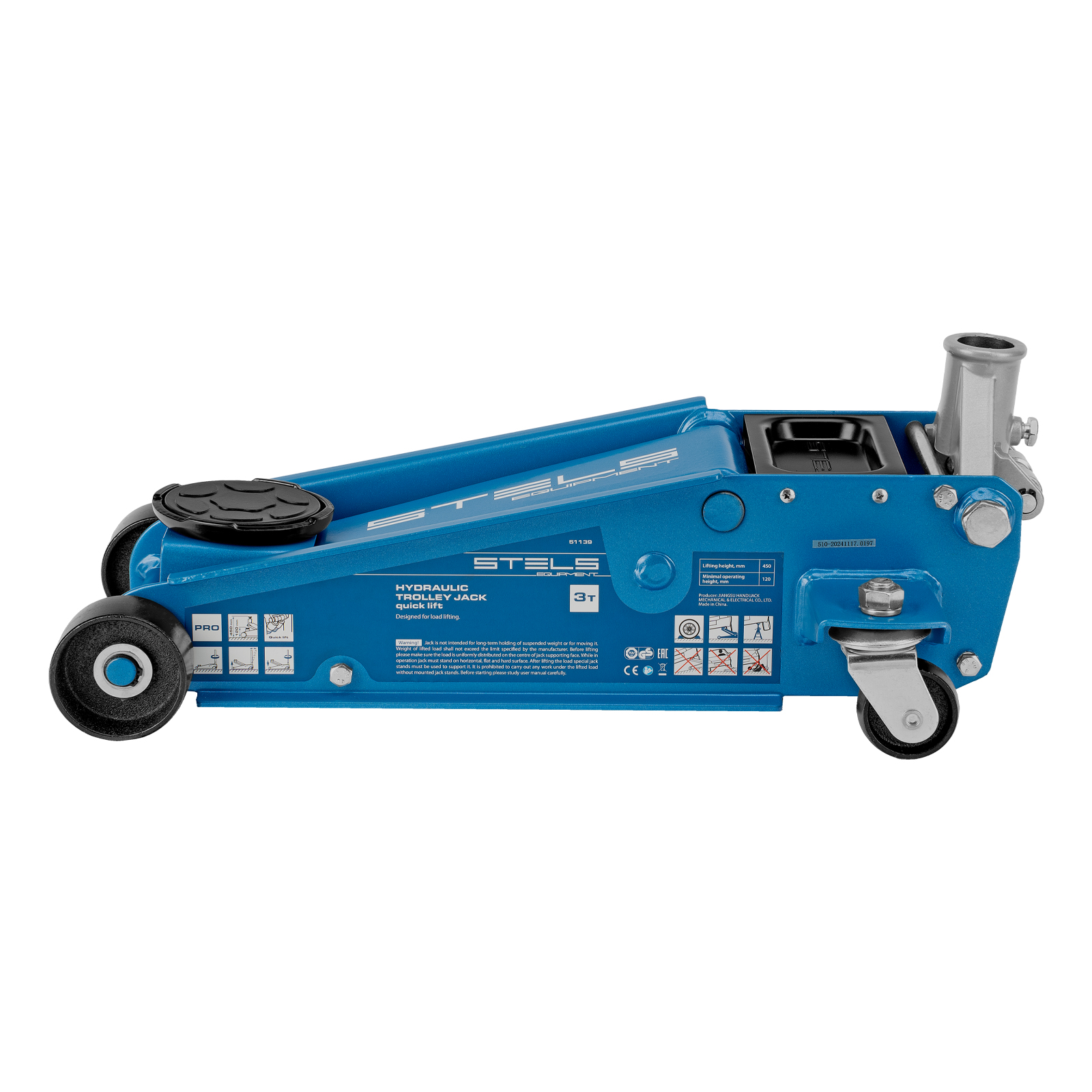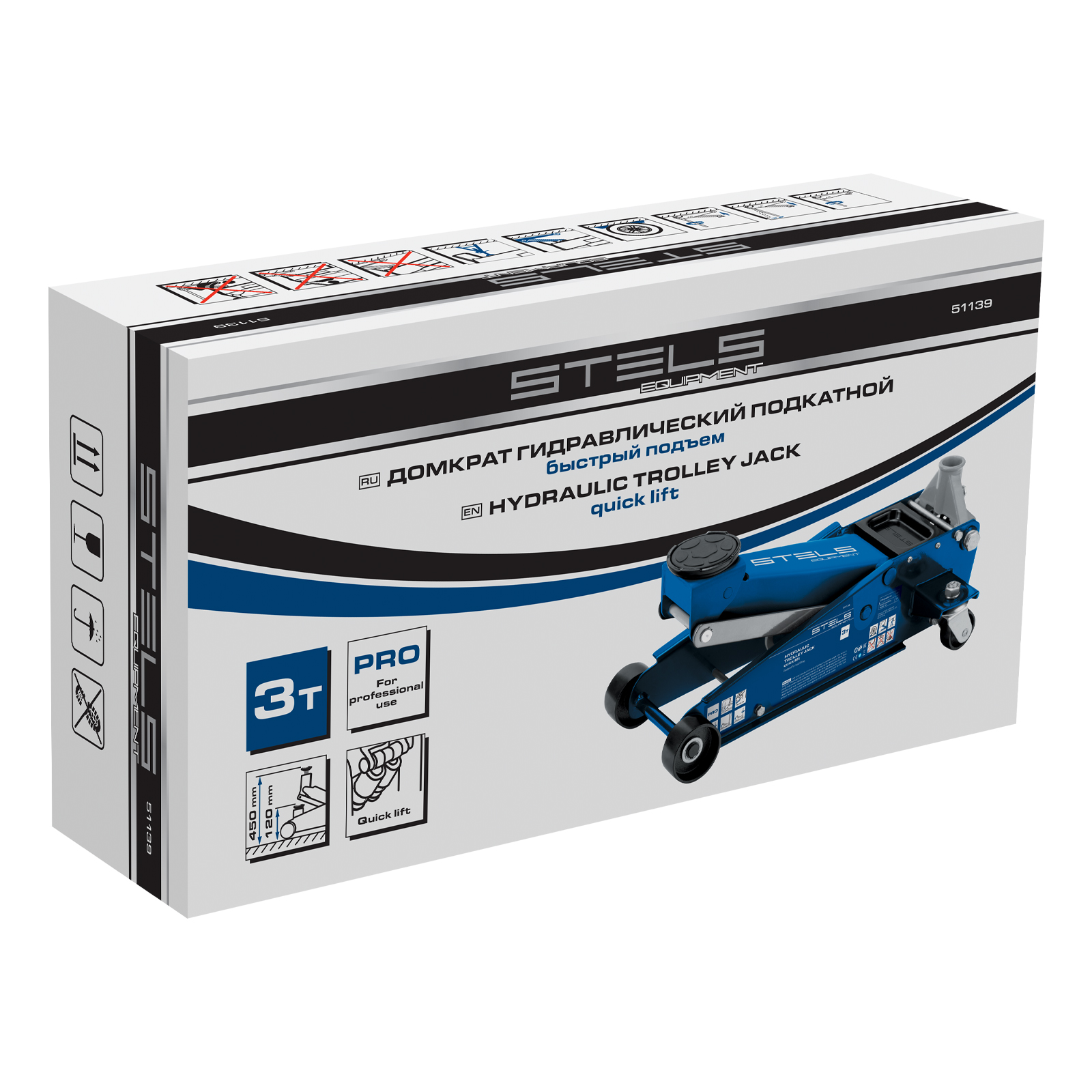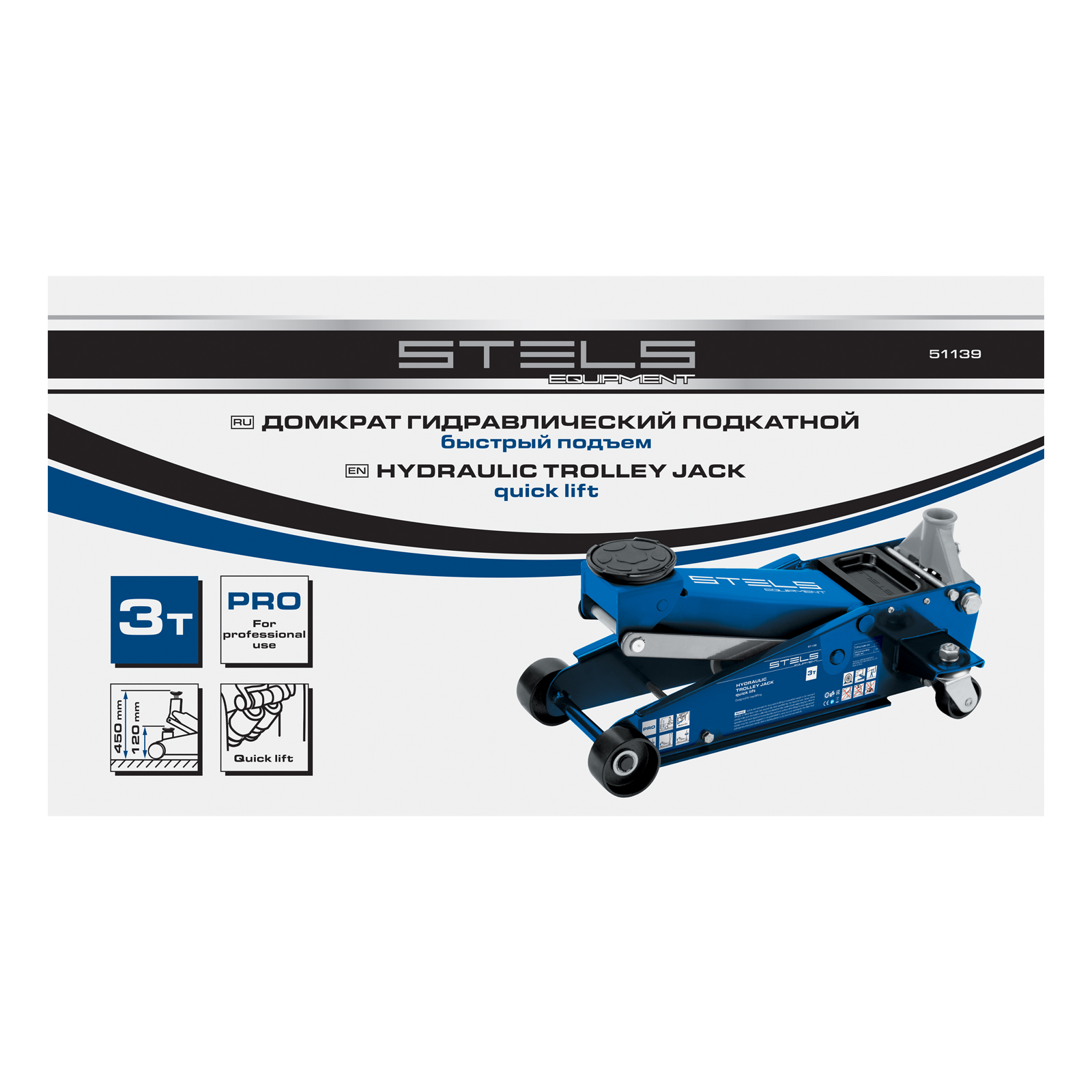 Профессиональный подкатной гидравлический домкрат Stels 51139 используется для быстрого подъема на высоту 120-450 мм всех типов автомобилей со стандартным клиренсом и массой до 3 тонн. Благодаря системе быстрого подъема QUICK LIFT для достижения предельной высоты достаточно 6 качков рукоятки. Домкрат подходит для использования на станциях техобслуживания и шиномонтажа.