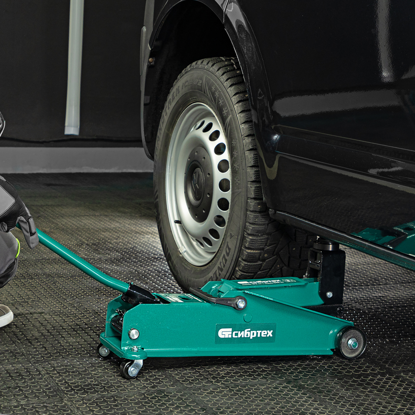 Гидравлический подкатной домкрат Сибртех 50841 с высотой подхвата 192 мм, предназначен для подъема грузов массой до 3 т на высоту до 532 мм, подходит для автомобилей со стандартным клиренсом и SUV. Компактный домкрат подходит для самостоятельного использования автовладельцами.