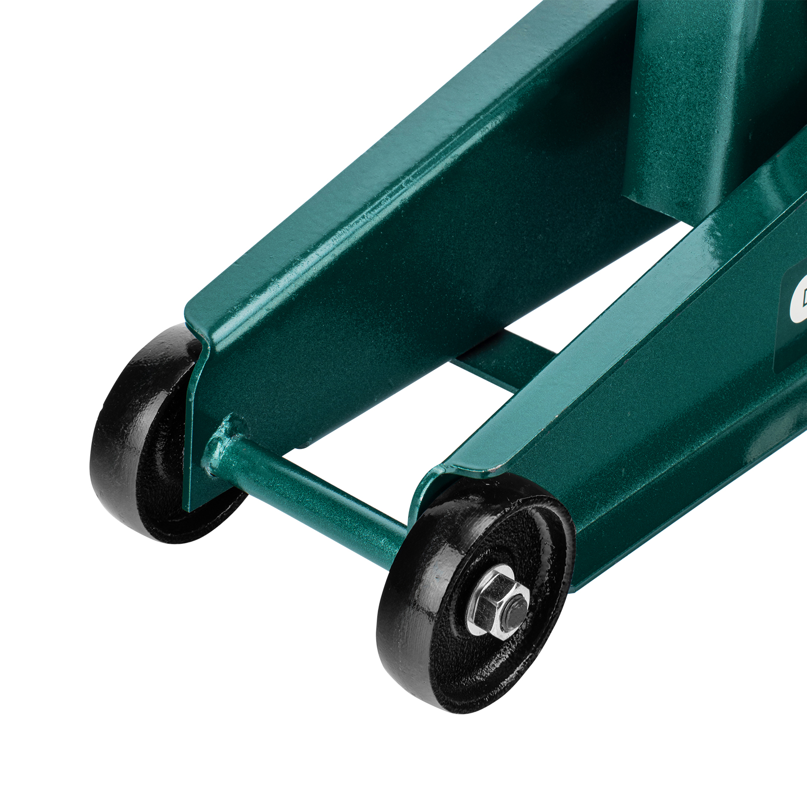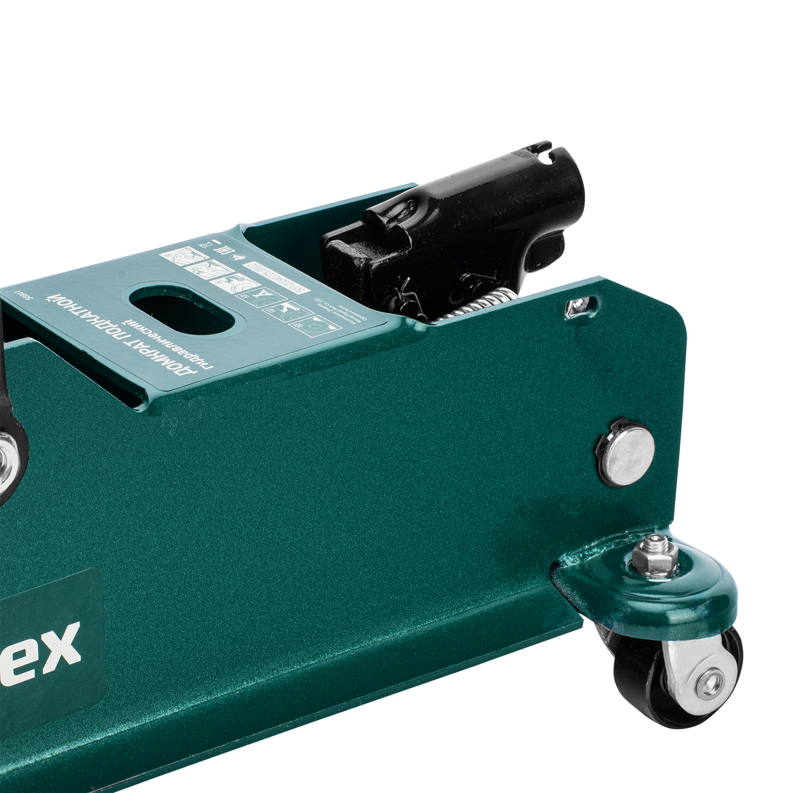 - Маневренность — благодаря поворотным колесам домкрат можно быстро подвести под груз.