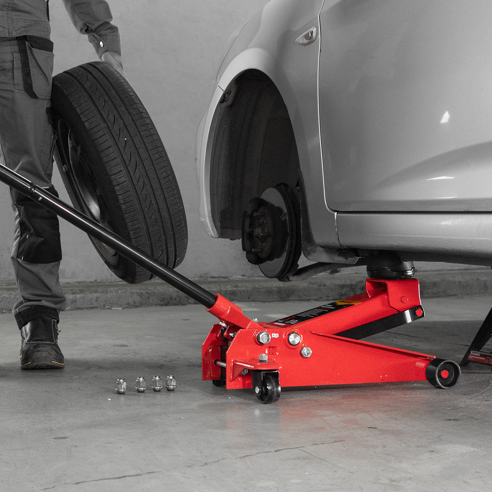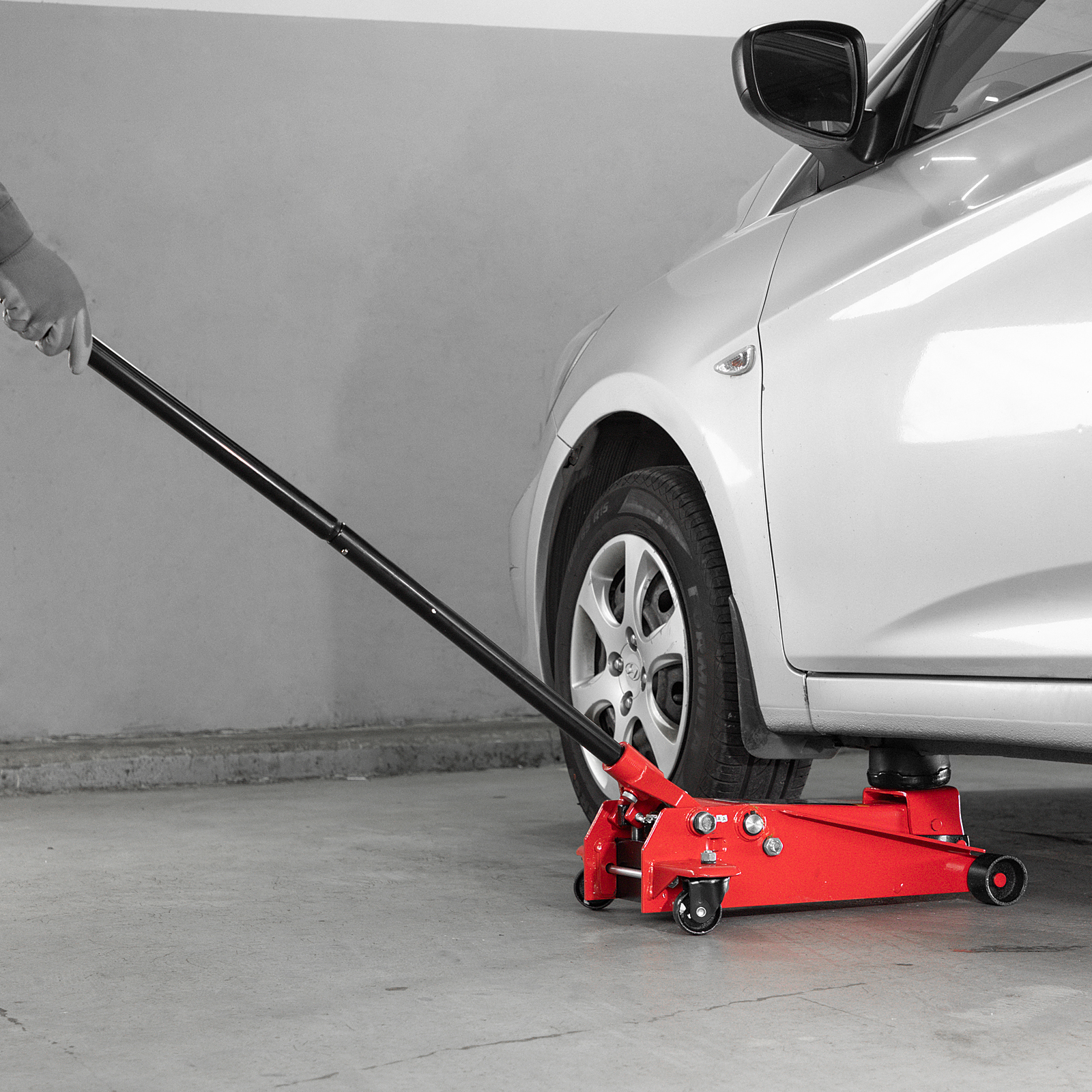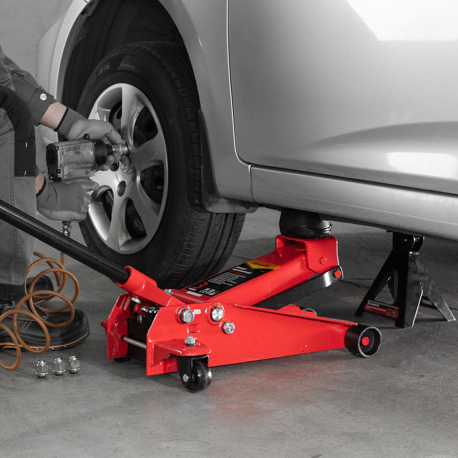 Гидравлический подкатной домкрат Sparta 510105 с высотой подъема 130 мм используется для подъема автомобилей массой до 3 тонн на высоту до 465 мм для их ремонта и обслуживания. Подходит для автомашин со стандартным клиренсом. Домкрат входит в оснащение гаражей и автосервисов.