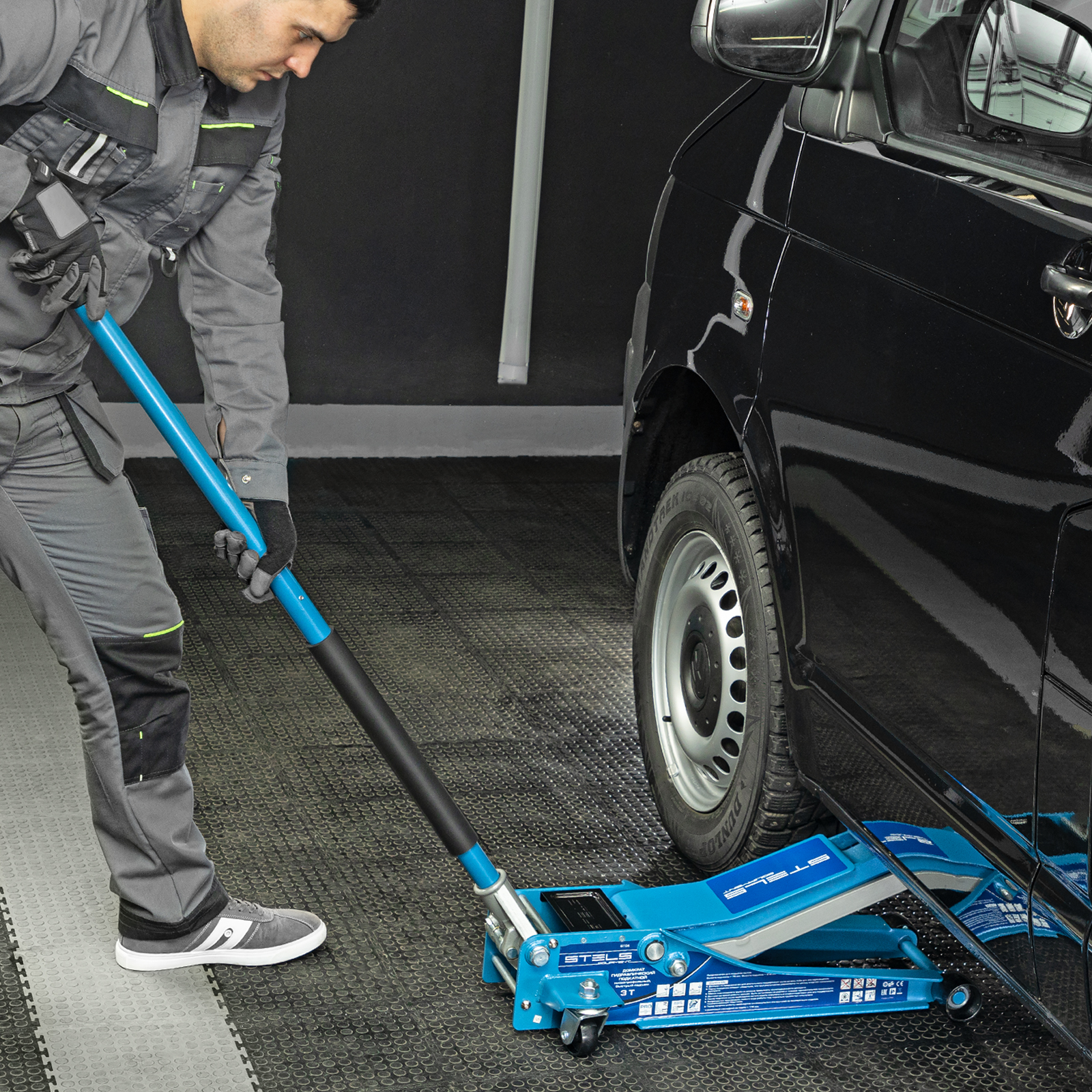 - Аккуратная работа — резиновая опора и прорезиненная ручка защищают кузов автомобиля и корпус домкрата от повреждений.