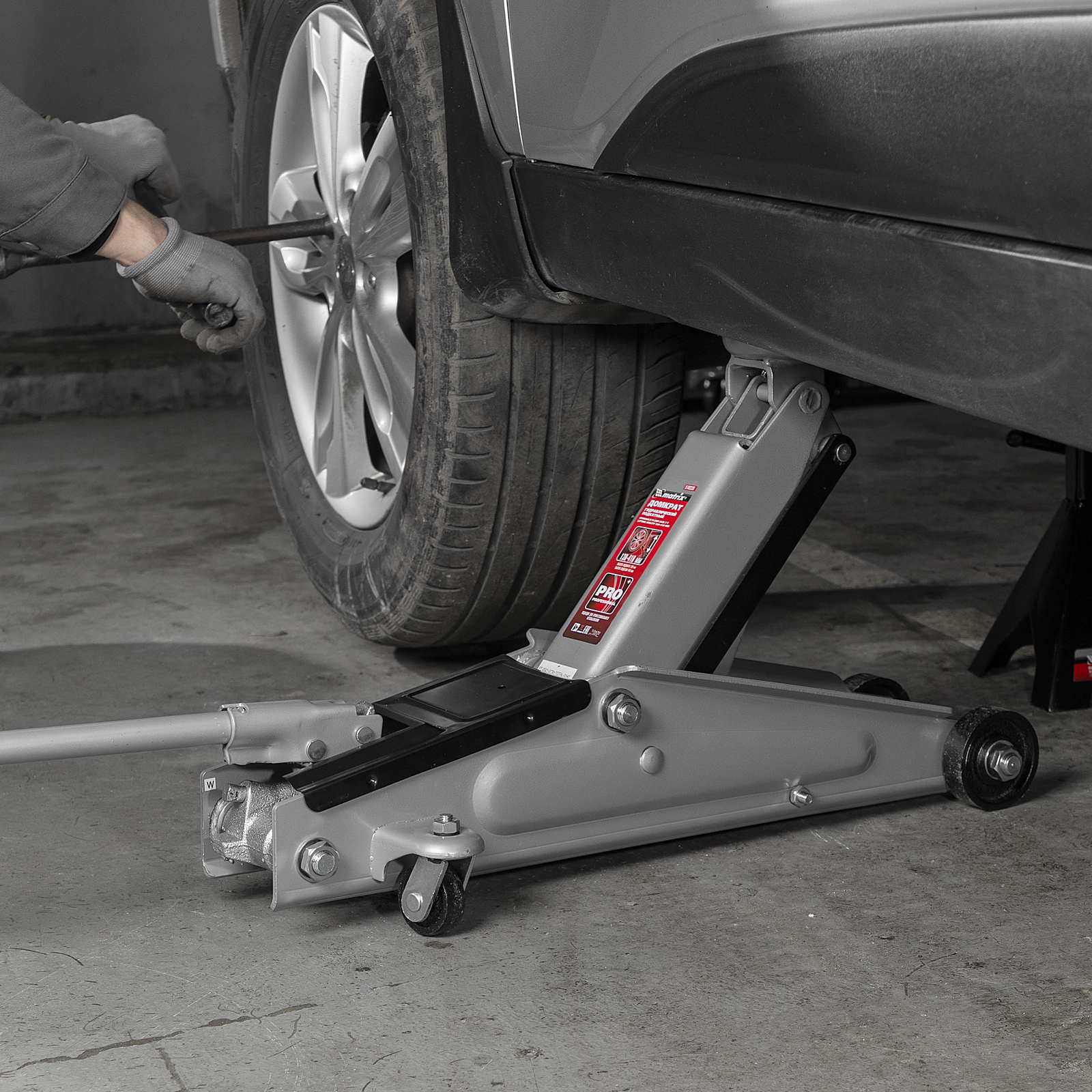 - Безопасная эксплуатация — предохранительный клапан препятствует подъему груза массой более 3 т, предотвращая поломку домкрата.