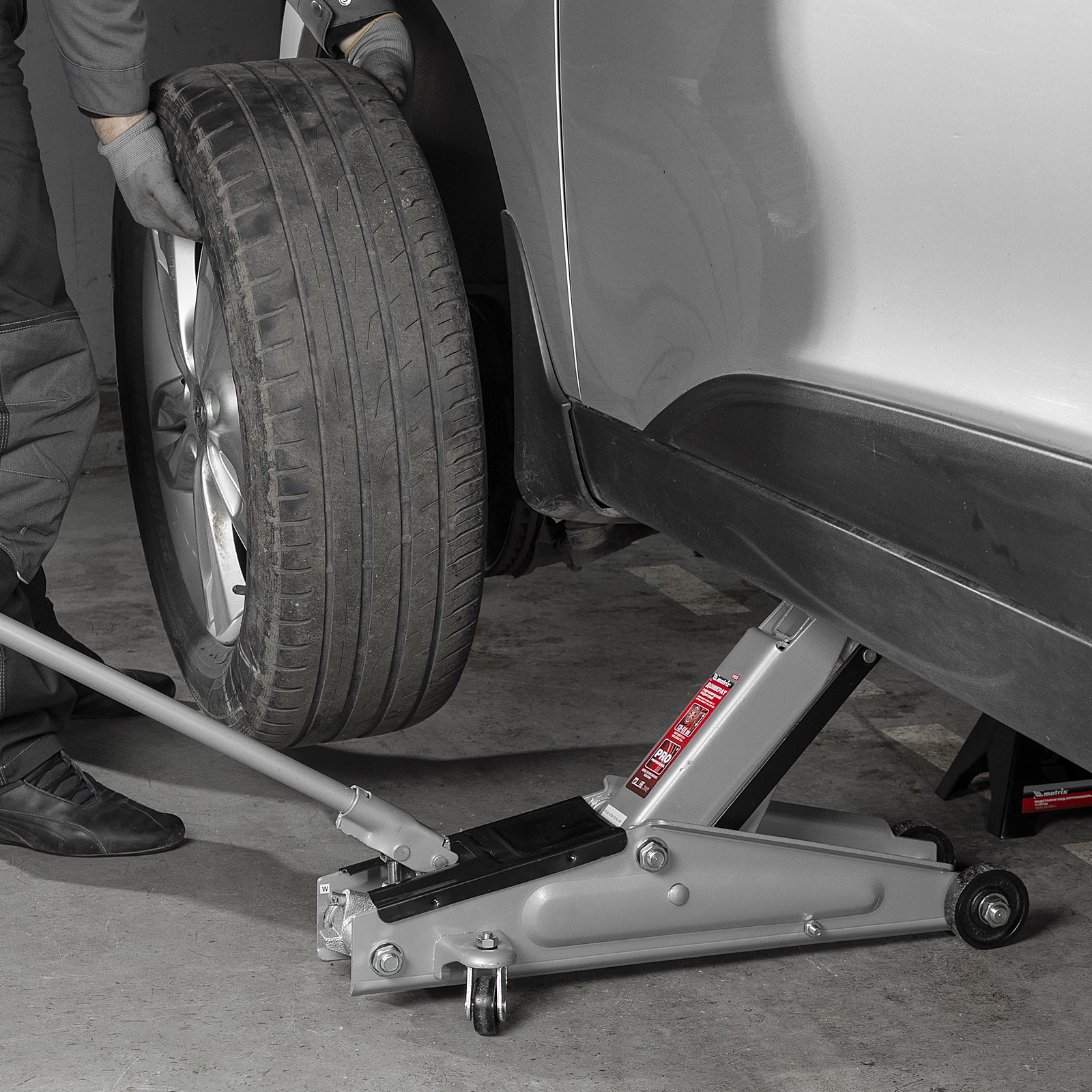 Домкрат гидравлический подкатный, 3 т, высота подъема 130-410 мм Matrix в Краснодаре