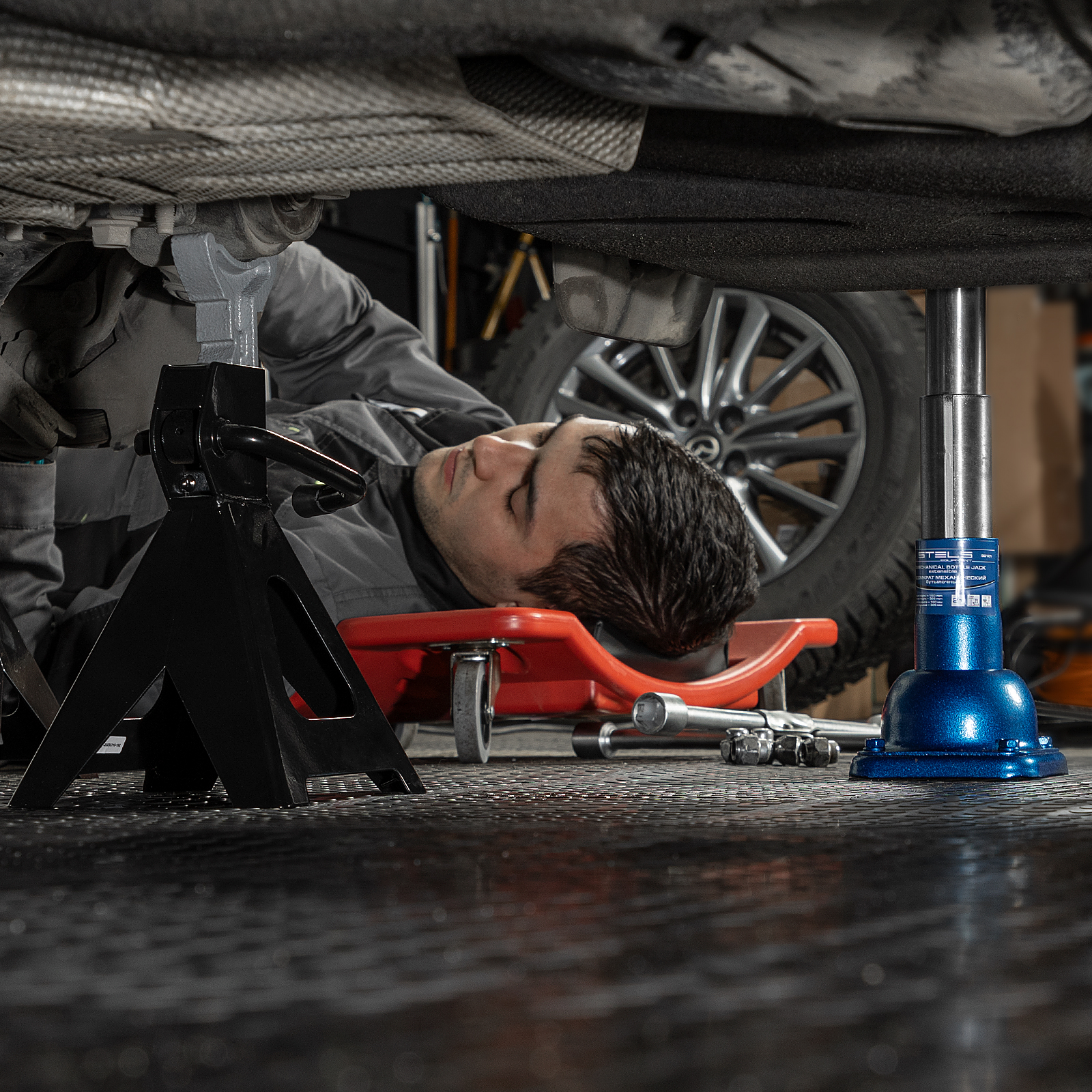 - Удобная транспортировка — компактный домкрат весом 3,76 кг легко помещается в багажник автомобиля.