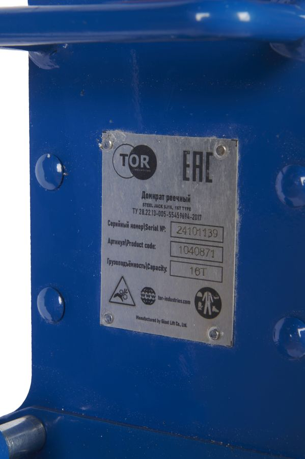 Домкрат реечный TOR ДР 16000 16 т с обрезиненной ручкой