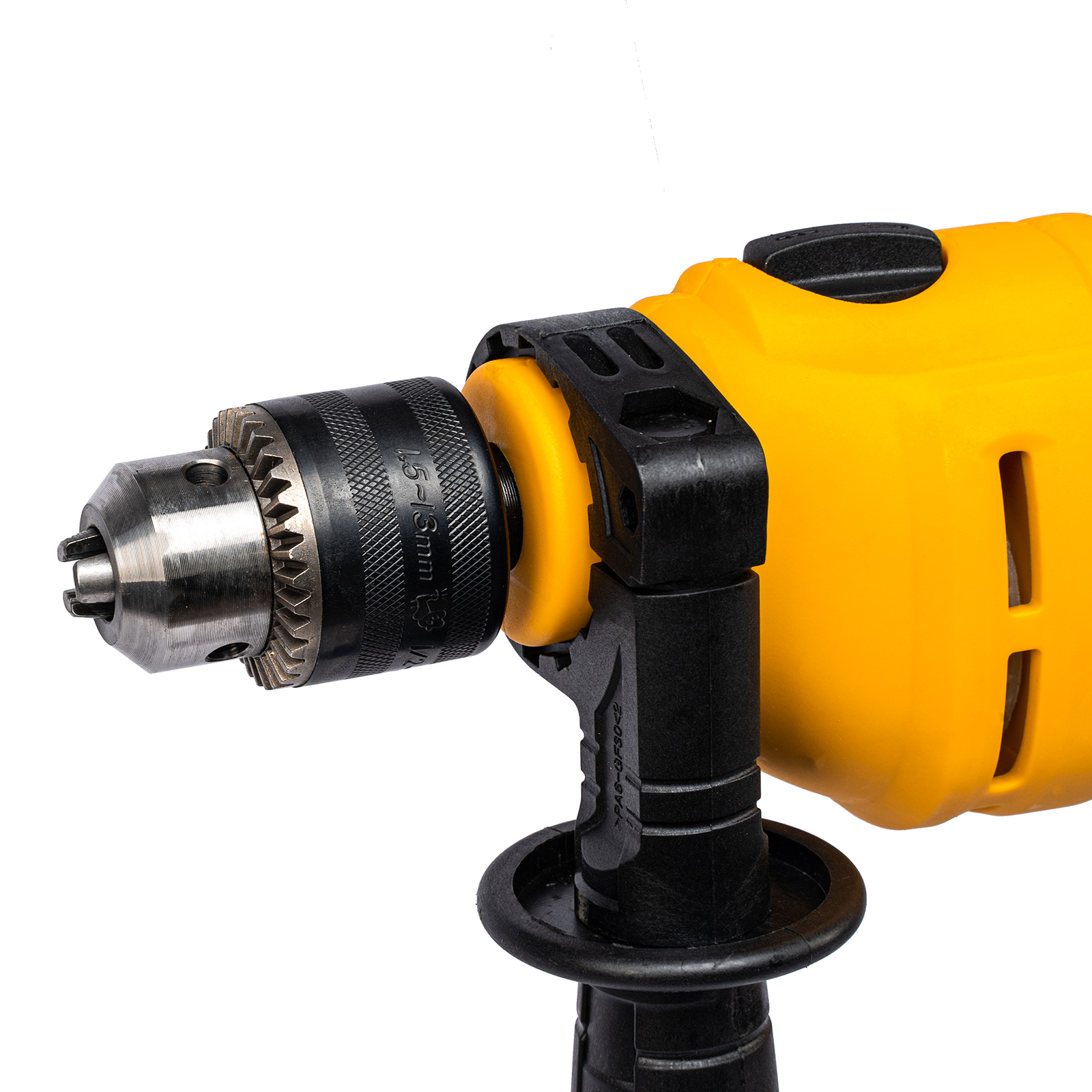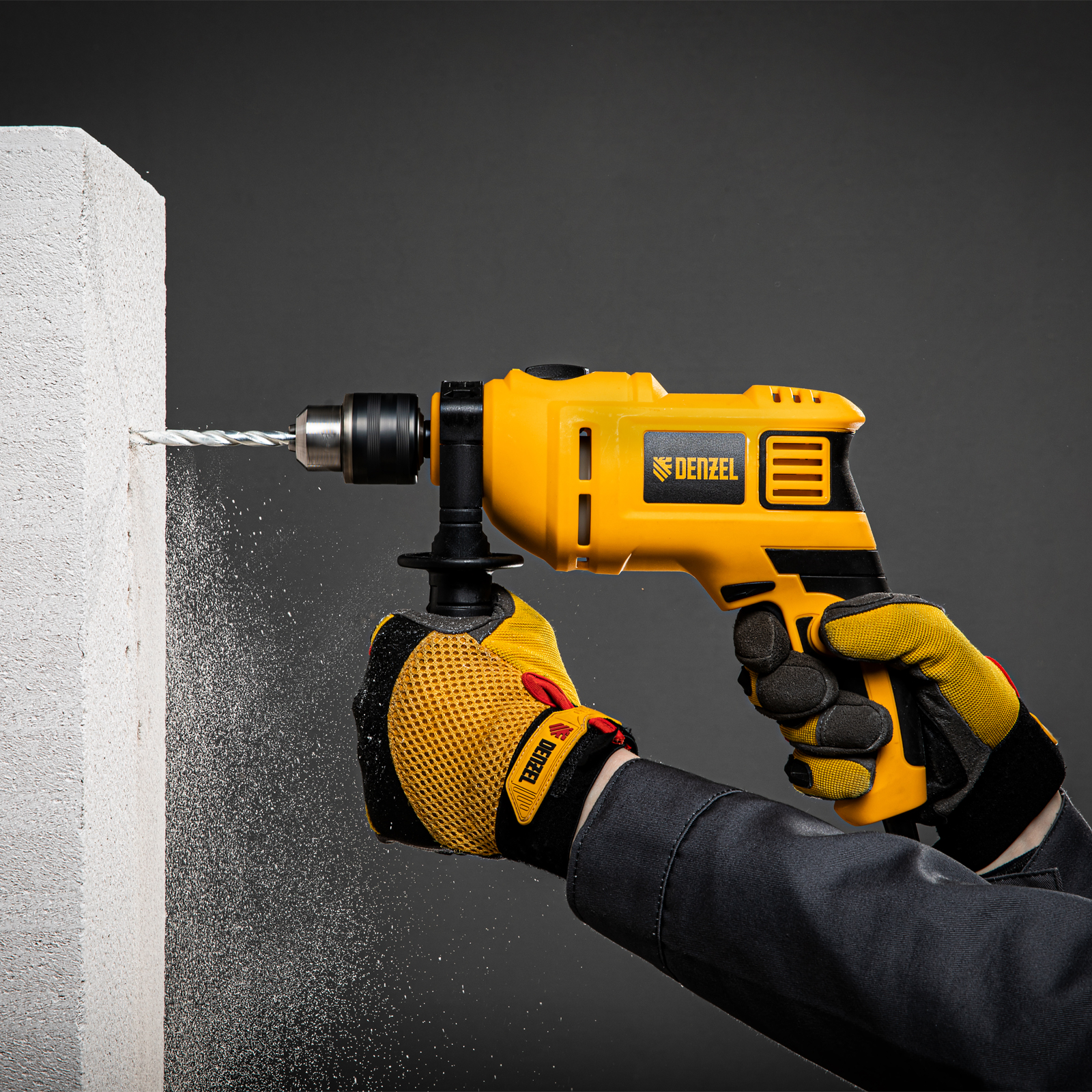 Ударная дрель Denzel ID-650 26304 мощностью 650 Вт поддерживает скорость вращения оснастки 0-3000 об/мин и частоту ударов 48000 уд/мин. Используется для ручного или ударного сверления металла, древесины, легкого бетона, кирпича, плитки или пластика. Сверлит отверстия диаметром до 25 мм в древесине, до 13 мм в бетоне и до 13 мм в металле. Эффективное сверление твердых материалов обеспечивает массивный промщит ударного механизма. Дрель работает со сверлами с диаметром хвостовика 1,5-13 мм, что позволяет эффективно решать различные задачи.