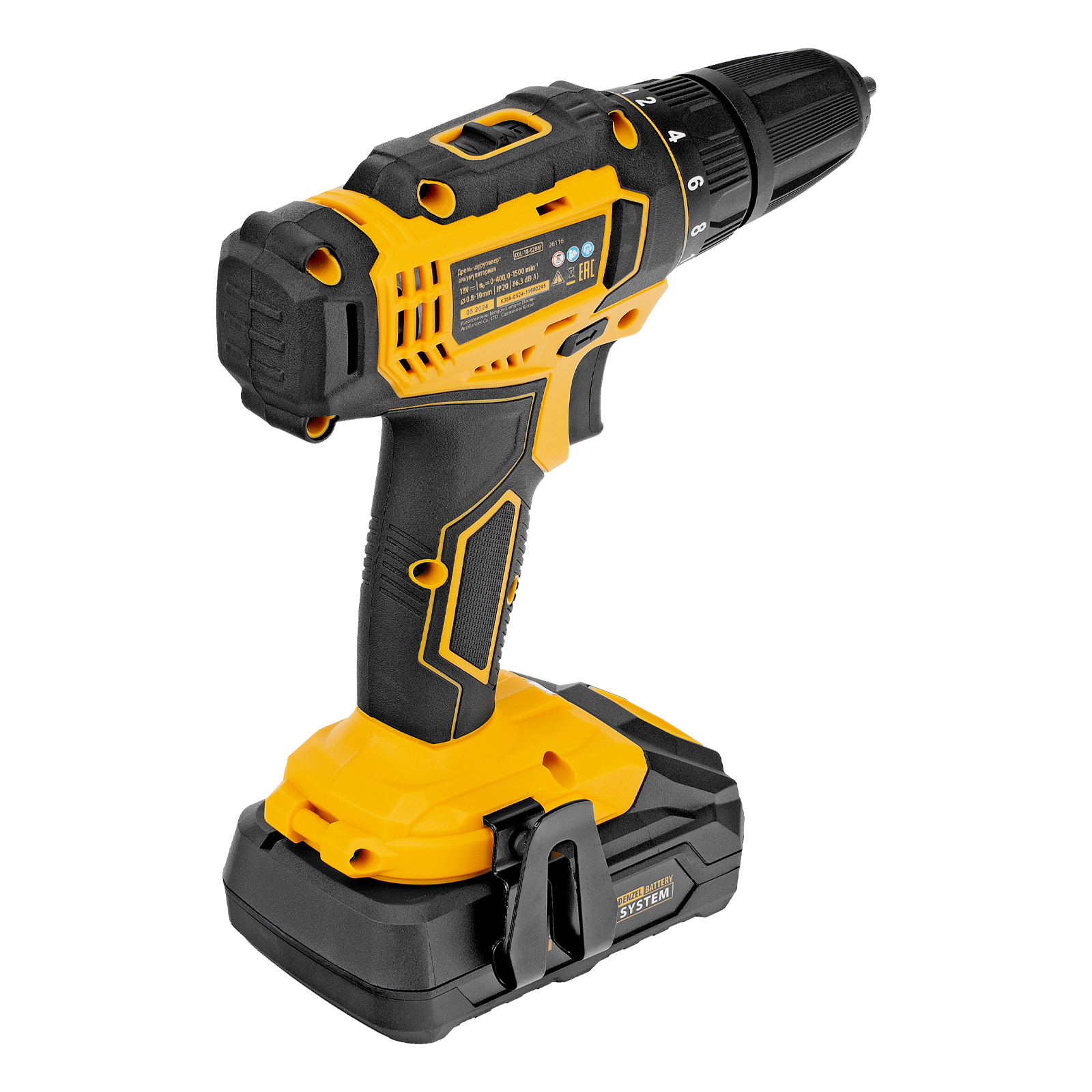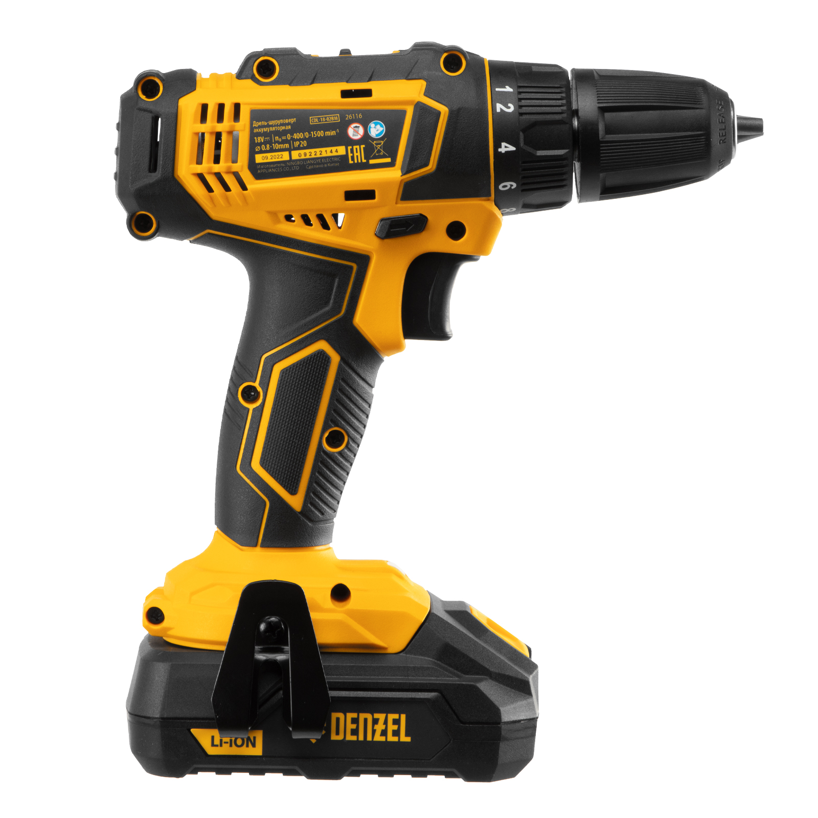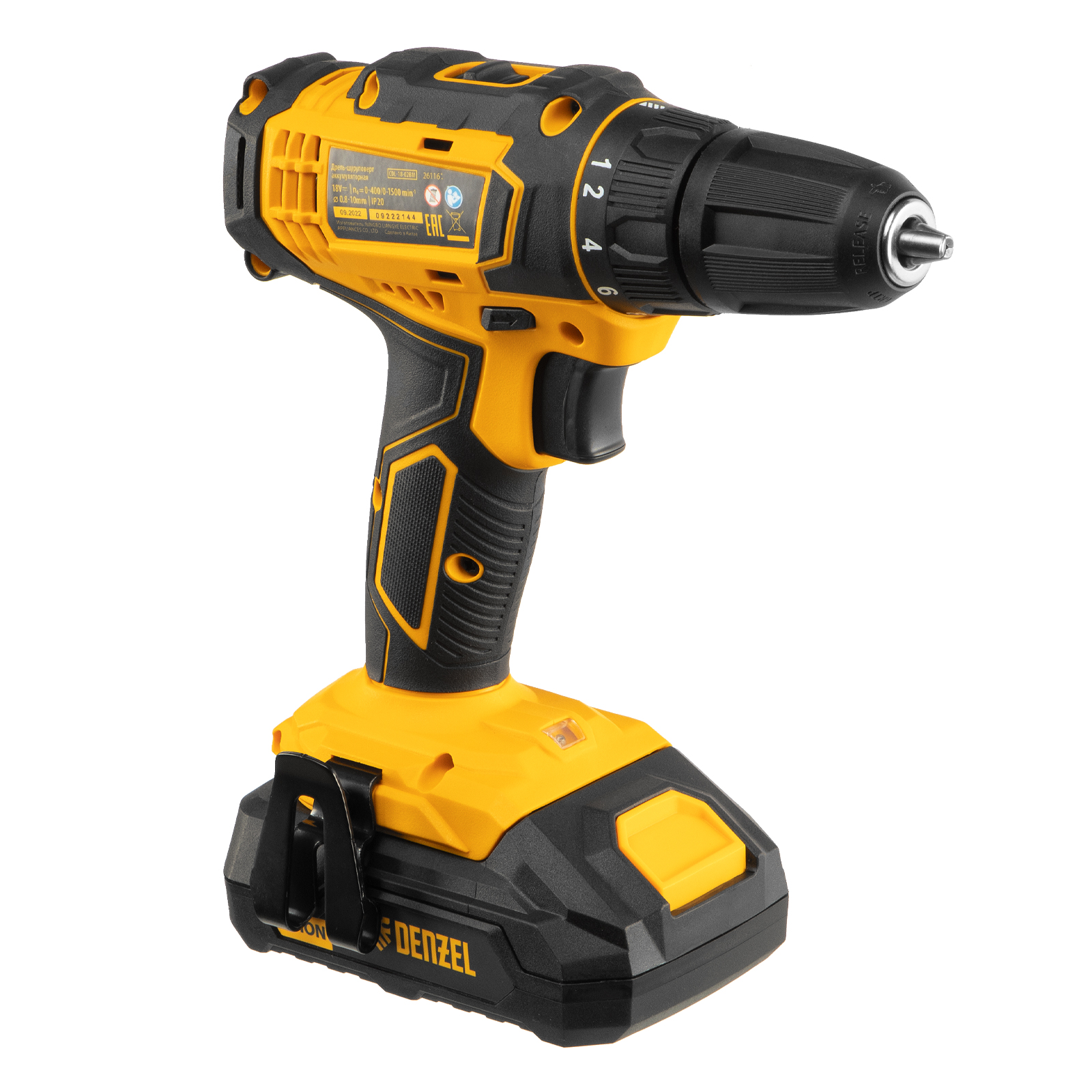 Дрель-шуруповерт аккумуляторная CDL-18-02BM, Li-Ion, 18 В, 2 аккумулятор Denzel в Краснодаре