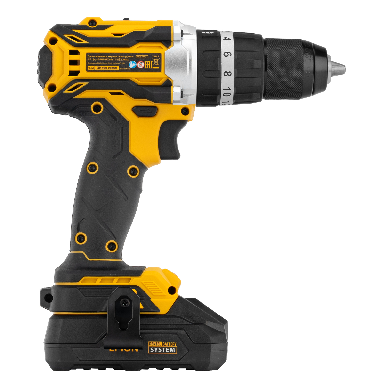 Дрель-шуруповерт аккумуляторная ударная бесщет CIDB-18-02, Li-Ion, 18 В Denzel в Краснодаре